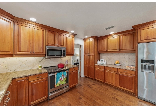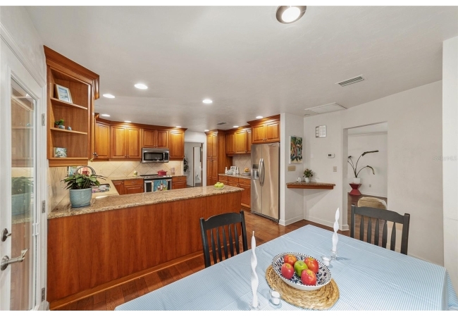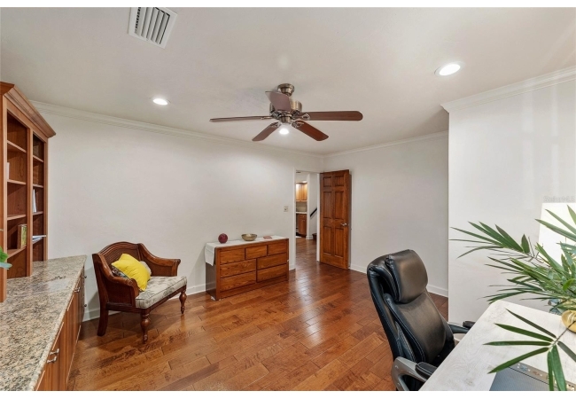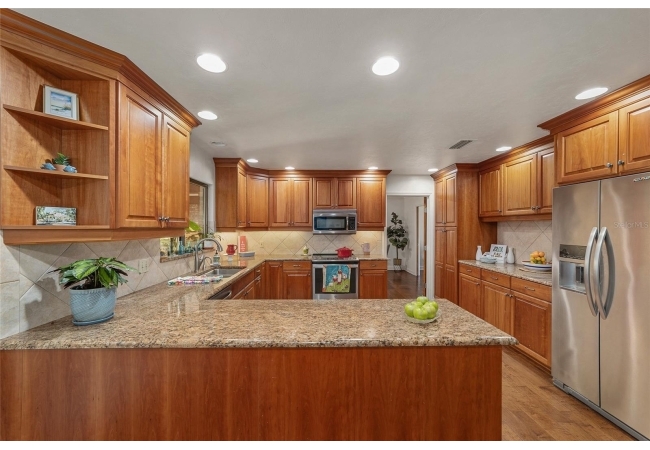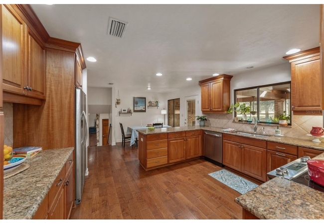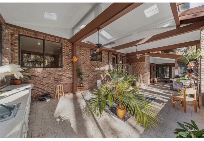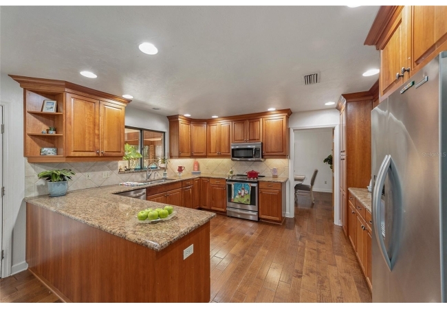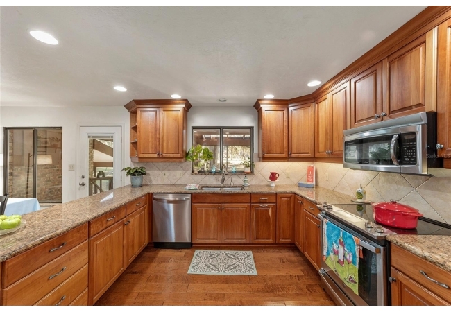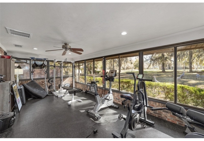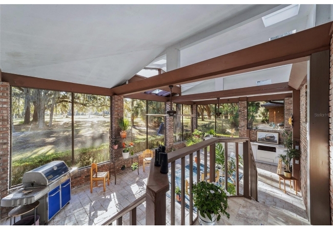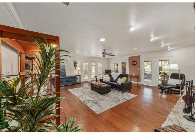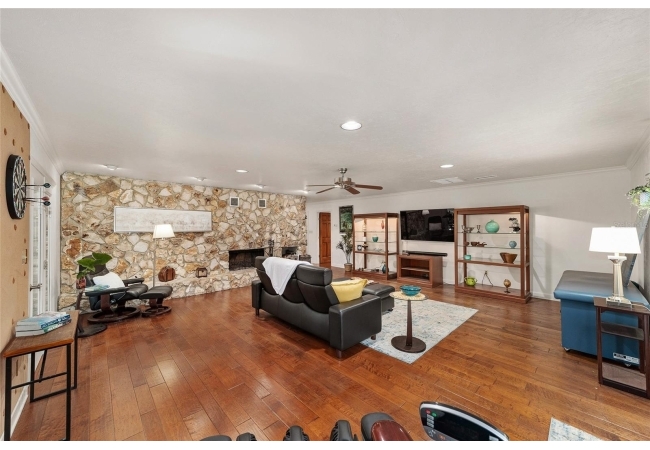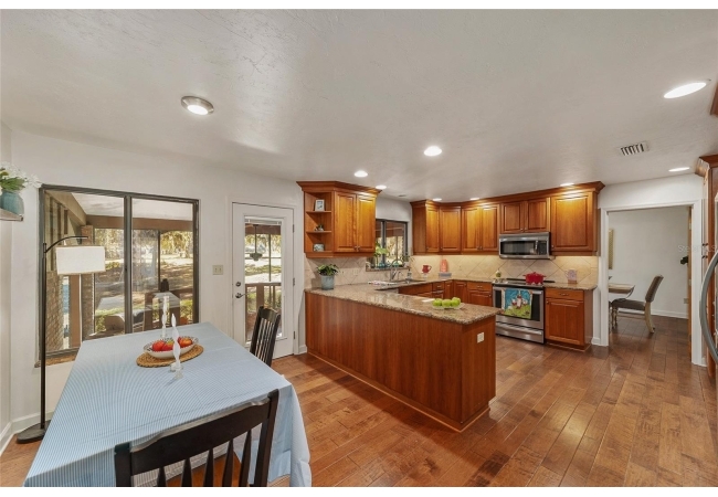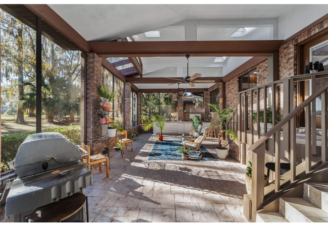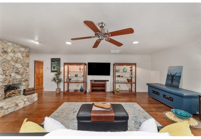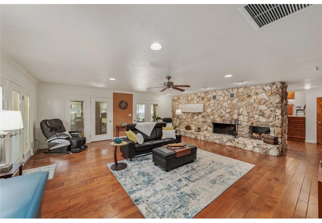 Magnificent, fully remodeled home in a quiet cul-de-sac on nearly half an acre, featuring 3 bedrooms, 3 full bathrooms, a study with private entrance (ideal as a fourth bedroom), and a Florida/gym room off the first-floor flex room. The spacious kitchen boasts abundant cabinetry, granite countertops, and a breakfast nook, with a separate dining room just steps away. The family room includes a bay window overlooking the front yard, while the flex room showcases a stunning full-wall wood-burning stone fireplace. Wood flooring throughout, no carpet. Enjoy outdoor living on the expansive screened-in back porch, plus a private courtyard and covered front porch. The primary suite offers his-and-hers sinks and walk-in closets, a makeup vanity, spa tub, walk-in shower, and water closet with bidet. Additional features include a two-car garage and golf cart garage. Conveniently located 4 miles from UF & Shands, 2 minutes to I-75 and Publix.