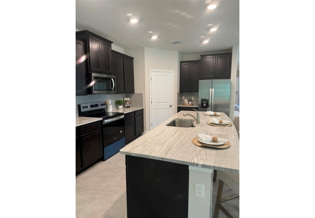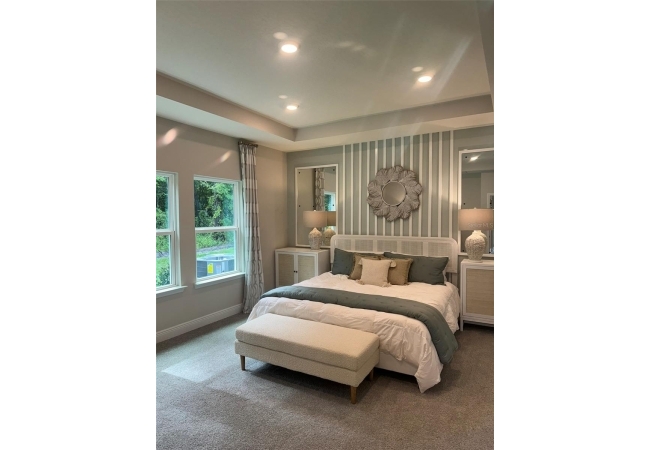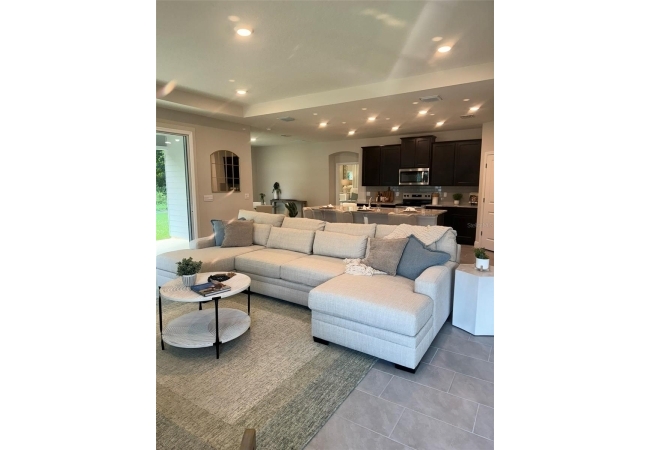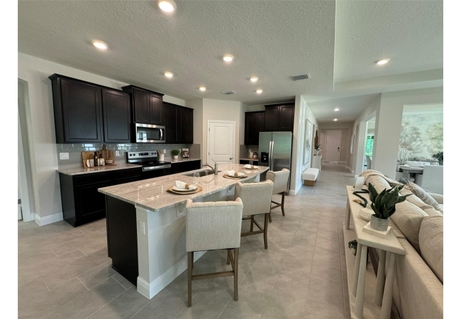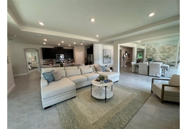 One or more photo(s) has been virtually staged. Former Model Home! This one-story home features a large great room with a formal dining room and a well-appointed kitchen with a dinette, all of which overlook a spacious covered lanai that is perfect for extending entertaining space outdoors. This single-story plan features two bedrooms that share a jack-and-jill full bathroom and which are located at the front of the home. The multi-gen living space is located beyond the powder bath and laundry room. Bedroom 1 with an ensuite bath, is located on the back of the home for privacy, offering beautiful views of the backyard. This home includes a stainless-steel range, microwave, and dishwasher. Pictures, photographs, colors, features, and sizes are for illustration purposes only and will vary from the homes as built. Home and community information including pricing, included features, terms, availability and amenities are subject to change and prior sale at any time without notice or obligation. CRC057592.