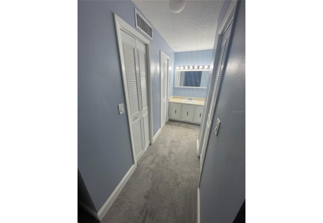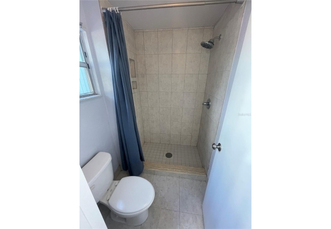 Both the primary and guest bedrooms are generously sized, each offering ample closet space. The primary bathroom features custom tile work with recessed shower niches, adding a clean and modern touch.
