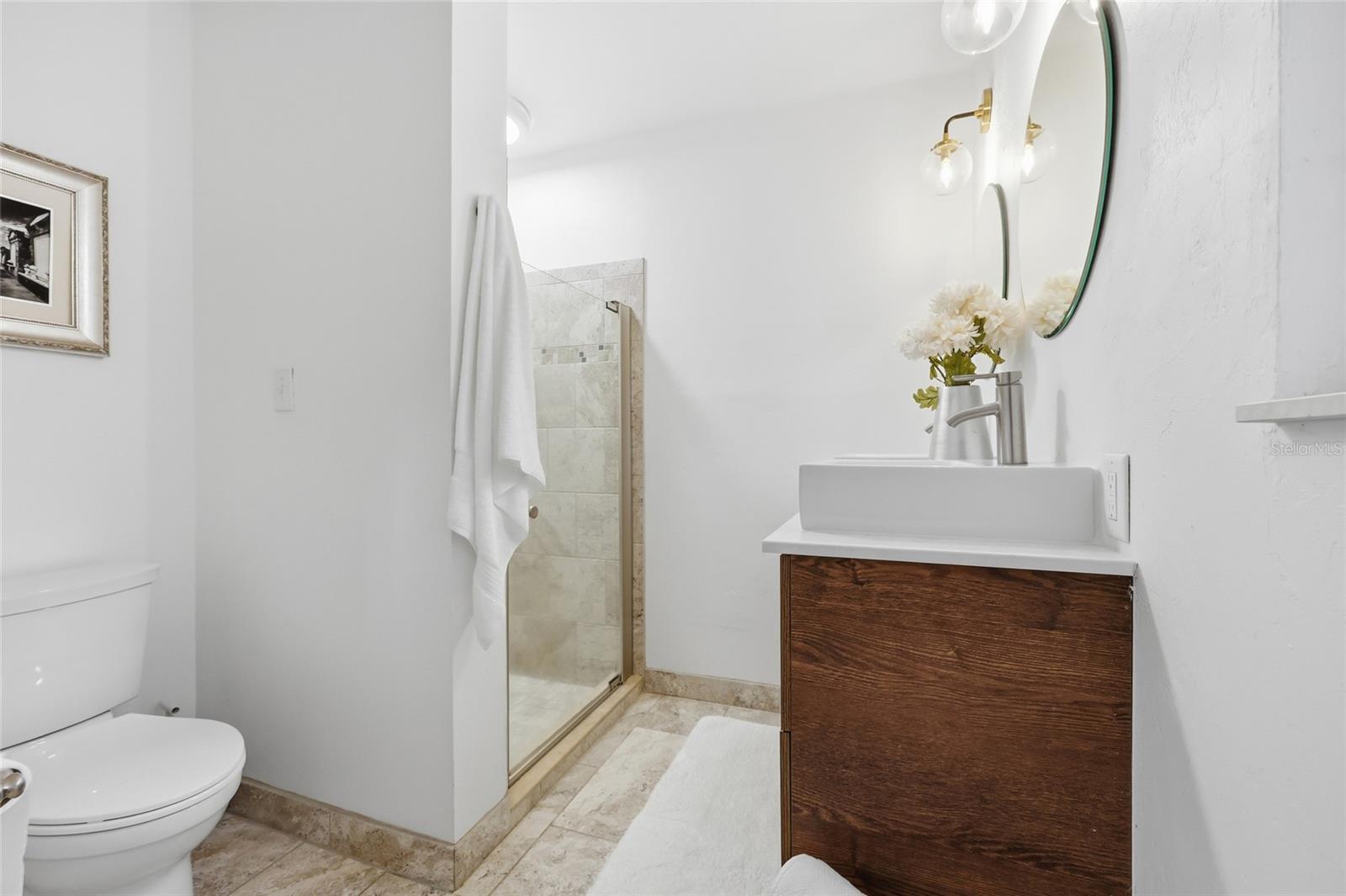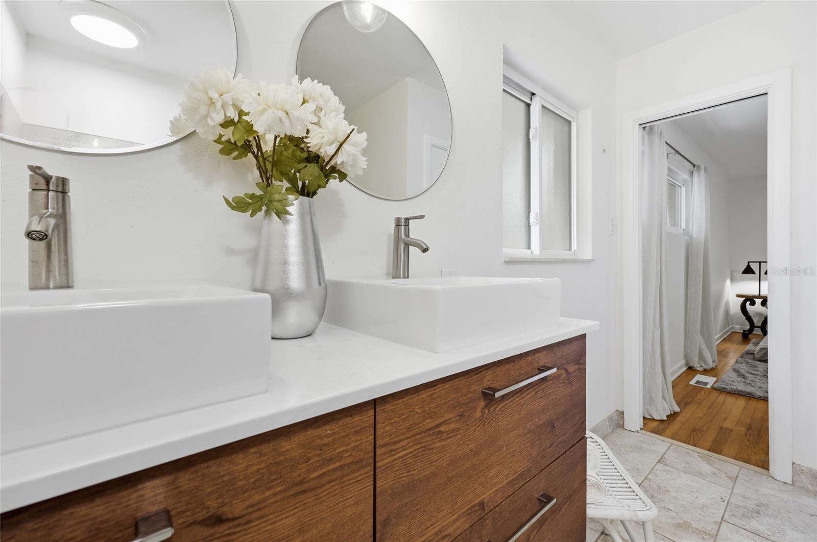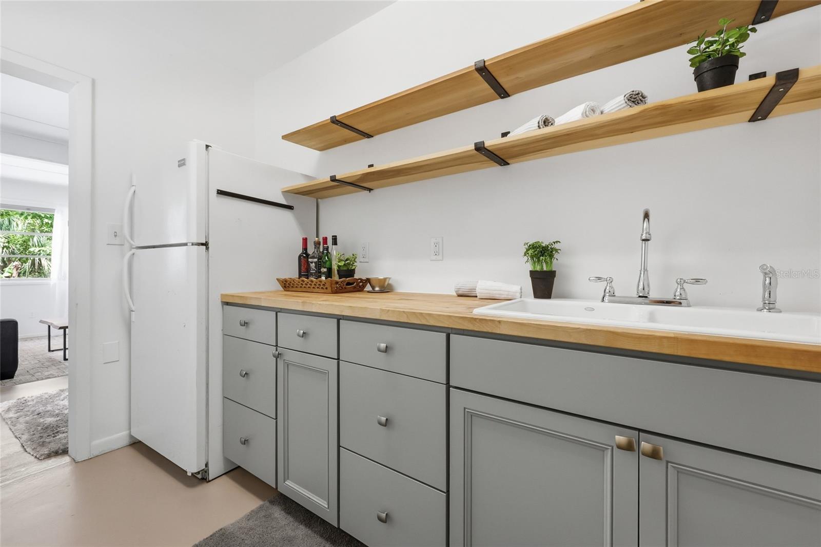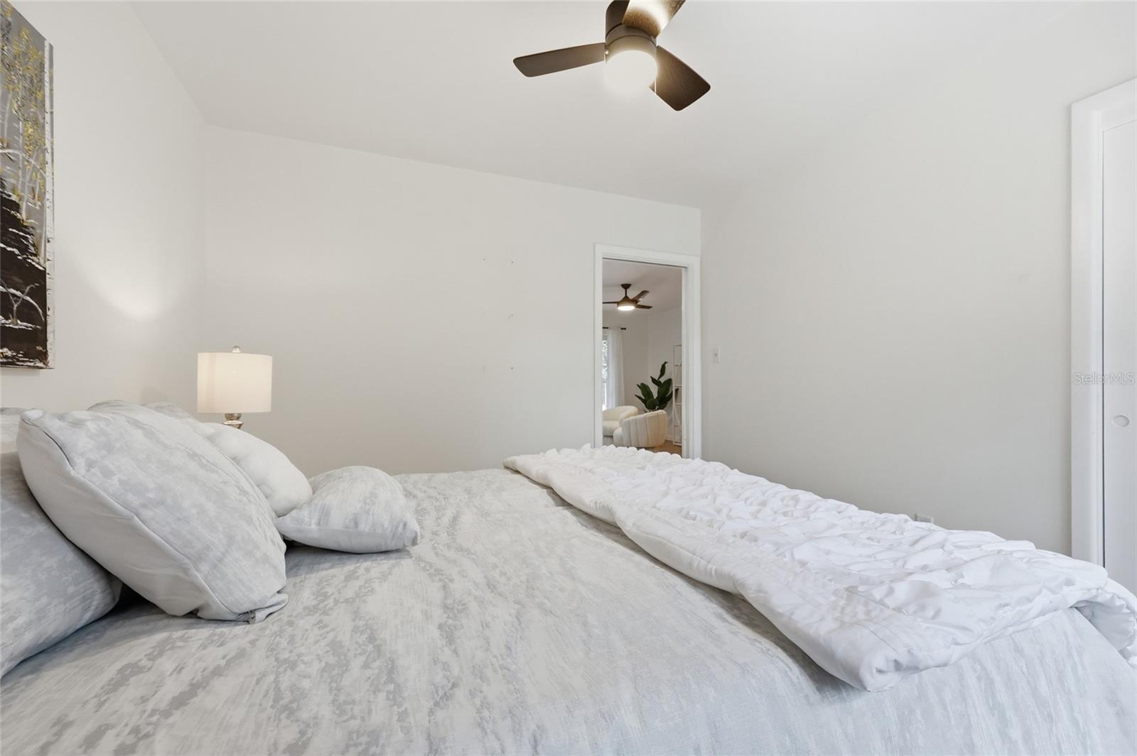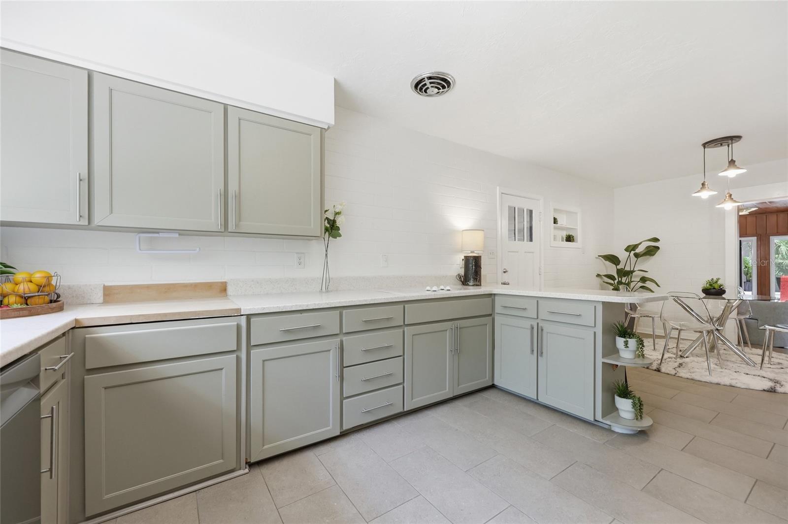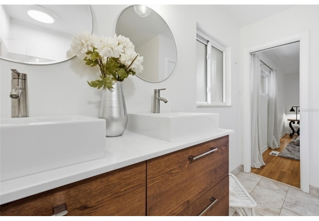 Mid-century character, a screened-in pool, and a detached efficiency apartment define this rare 1.25-acre Gainesville find, located just 2 miles from the University of Florida! This 4-bed, 3-bath home ensures peace of mind with a 2021 roof featuring a 20-year warranty, dual AC units, and a newer water heater. The home’s striking profile is enhanced by double-paned windows throughout, ensuring modern efficiency, while inviting abundant natural light and gorgeous views of the mature trees and lush greenery that frame the property. Stepping through the signature blue front door, the home opens to an epicurean kitchen distinguished by clean lines and high-end finishes. This culinary hub features a suite of stainless-steel appliances, a breakfast bar, and an inviting casual dining area. The floor plan unfolds into a warm, wood-paneled family room, a space connected to the outdoors by glass sliders that lead directly to the poolside terrace. This easy movement continues into the formal living room, which opens to one of the large guest bedrooms. The primary suite offers quiet luxury complemented by a refreshed ensuite with a glass-enclosed shower and dual-vessel vanity. A versatile bonus room adds to the home's flexible layout. From the main living areas, the transition to the screened lanai is effortless, with privacy-fenced grounds that offer a perfect blend of open lawn and mature shade trees. Unique to this property is the 512 sq ft detached efficiency or in-law suite, joined by a breezeway and featuring its own kitchenette, bath, and entrance—ideal for multi-generational living, a private home office, or income potential. This iconic Gainesville location in the quiet Kirkwood area is free from HOA restrictions and sits mere minutes from downtown. Enjoy proximity to Ward’s Supermarket, Thornebrook Village, and the scenic trails of Alfred A. Ring Park. Schedule your tour today to see how this mid-century gem redefines in-town acreage!
