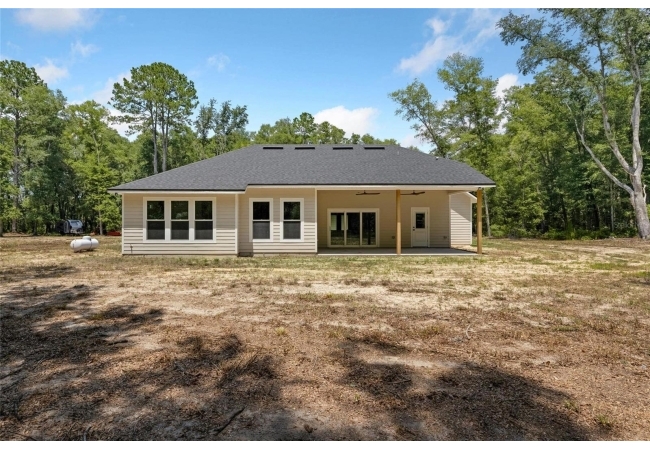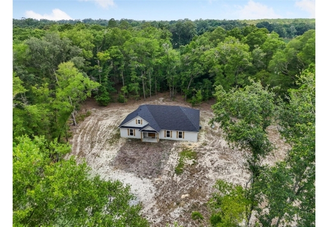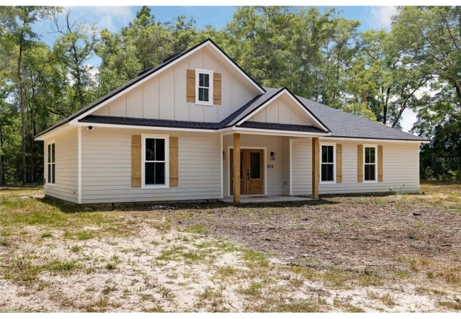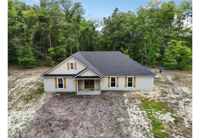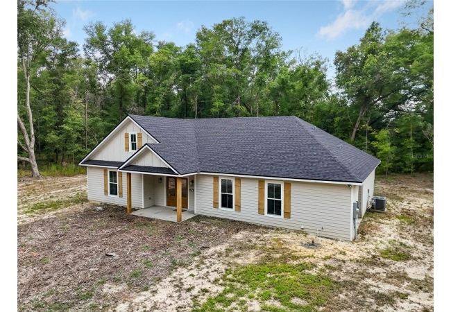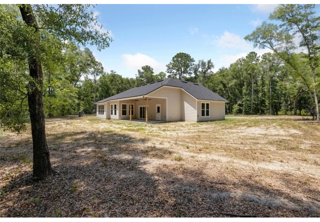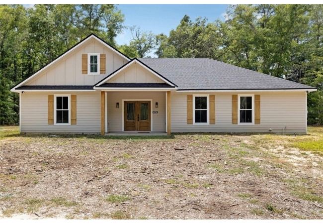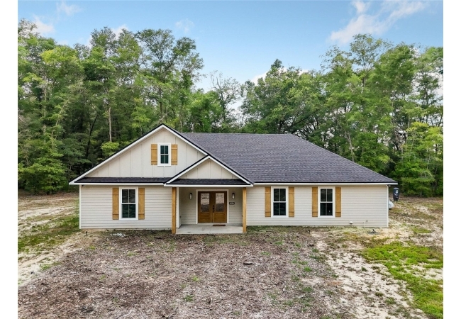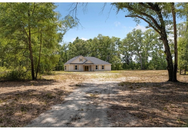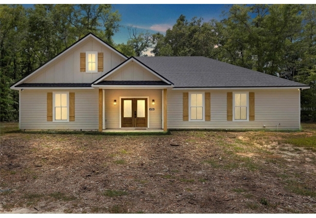 Priced to sell with motivated sellers and instant equity opportunity! This 2023 custom-built modern farmhouse offers 2,011 sq ft of luxury living on 8 peaceful, partially wooded acres in Alachua, Florida. Designed for both style and function, the home features vaulted ceilings with exposed wood beams, luxury vinyl plank flooring throughout, recessed lighting, and a spacious open-concept layout perfect for entertaining. The gourmet kitchen is a showstopper with top-of-the-line ZLine appliances with gold hardware, a 12-foot quartz island, pot filler, custom backsplash extending to the ceiling, floating shelves, and a large walk-in pantry. The primary suite offers a spa-like retreat with oversized windows, dual rainfall walk-in shower, freestanding soaking tub, and floating double vanity. Enjoy morning coffee or sunset views from the expansive covered back porch overlooking the serene landscape and abundant wildlife. Thoughtfully planned for future expansion, the home is designed for easy addition of a garage via breezeway or even a pool—ask how construction can be rolled into your loan! Outdoors, the possibilities are endless—bring your animals, equipment, or garden plans. A tractor and storage container can be negotiated with the sale, offering a turnkey setup for anyone looking to start or maintain a farm or homestead. Just minutes from Alachua and Gainesville amenities, this property combines modern elegance with rural freedom. Don’t miss your chance to own this rare and stunning retreat—schedule your showing today!