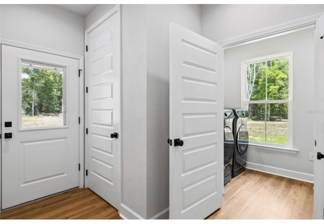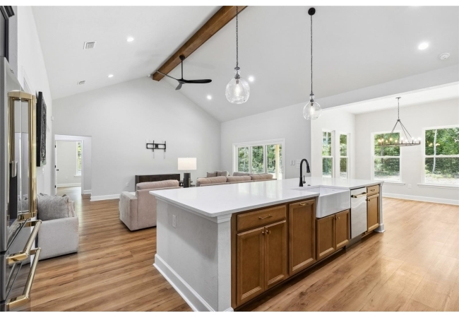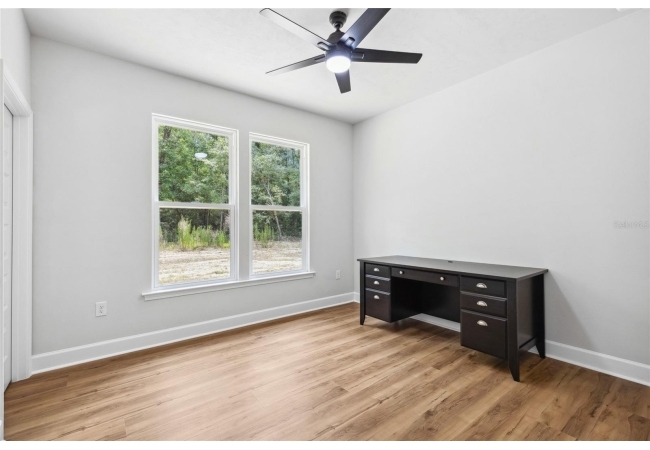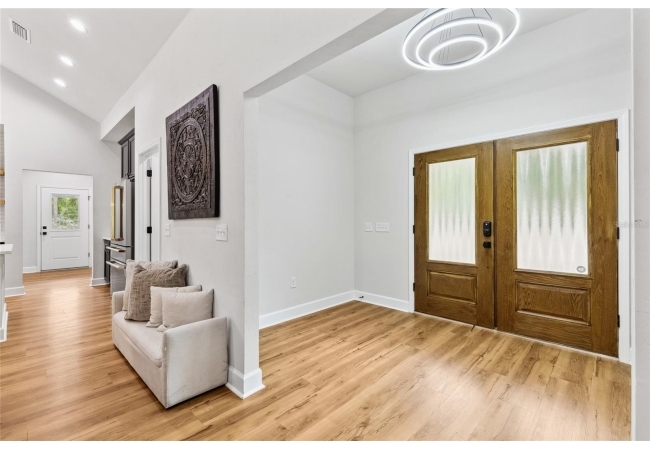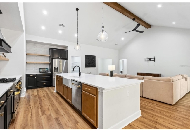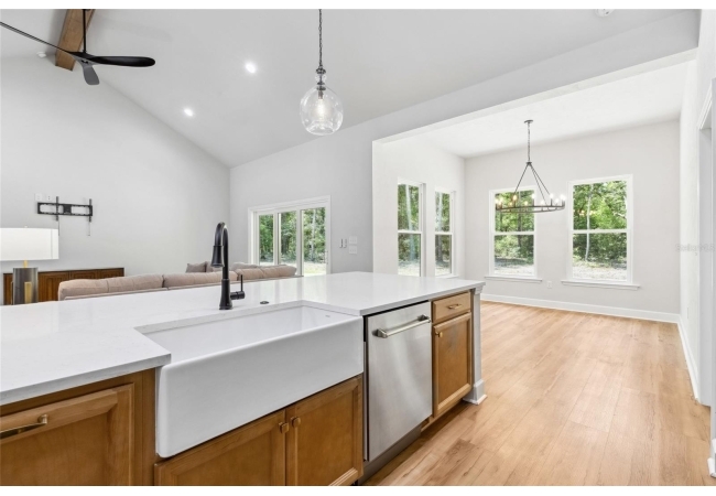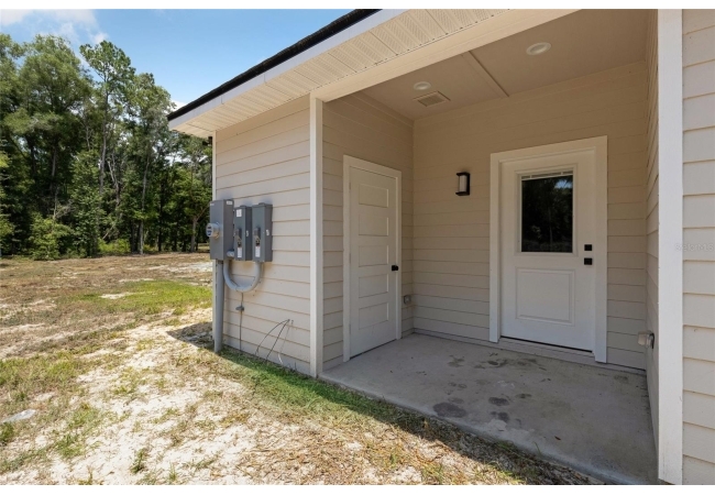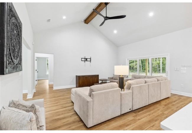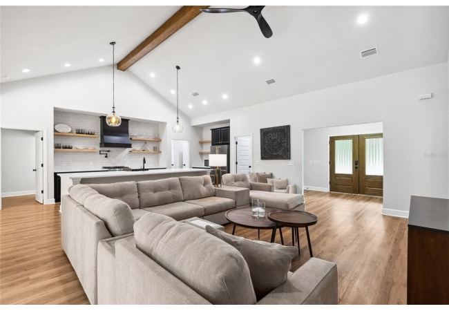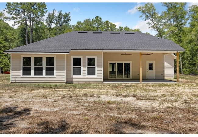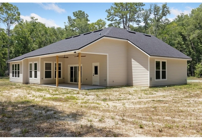 Priced to sell with motivated sellers and instant equity opportunity! This 2023 custom-built modern farmhouse offers 2,011 sq ft of luxury living on 8 peaceful, partially wooded acres in Alachua, Florida. Designed for both style and function, the home features vaulted ceilings with exposed wood beams, luxury vinyl plank flooring throughout, recessed lighting, and a spacious open-concept layout perfect for entertaining. The gourmet kitchen is a showstopper with top-of-the-line ZLine appliances with gold hardware, a 12-foot quartz island, pot filler, custom backsplash extending to the ceiling, floating shelves, and a large walk-in pantry. The primary suite offers a spa-like retreat with oversized windows, dual rainfall walk-in shower, freestanding soaking tub, and floating double vanity. Enjoy morning coffee or sunset views from the expansive covered back porch overlooking the serene landscape and abundant wildlife. Thoughtfully planned for future expansion, the home is designed for easy addition of a garage via breezeway or even a pool—ask how construction can be rolled into your loan! Outdoors, the possibilities are endless—bring your animals, equipment, or garden plans. A tractor and storage container can be negotiated with the sale, offering a turnkey setup for anyone looking to start or maintain a farm or homestead. Just minutes from Alachua and Gainesville amenities, this property combines modern elegance with rural freedom. Don’t miss your chance to own this rare and stunning retreat—schedule your showing today!