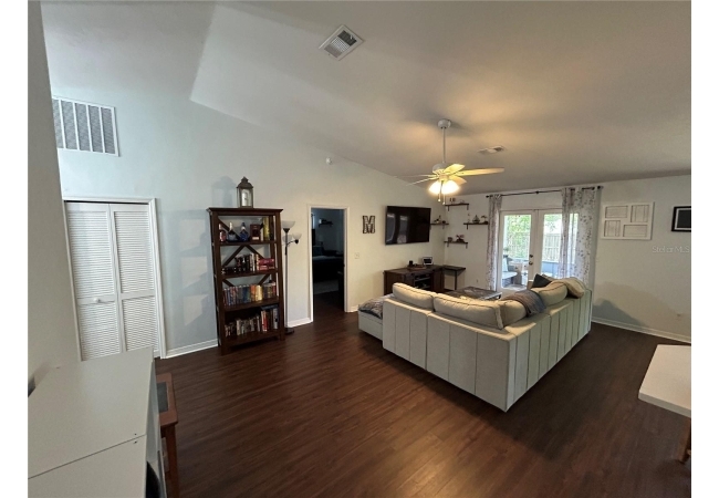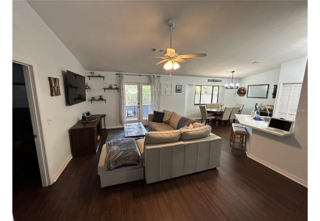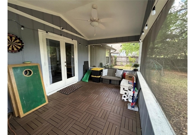 Come see this adorable, well-maintained 3 bedroom, 2 bathroom home in the highly desirable Mile Run neighborhood. Step into the spacious and open concept living area, complete with a vaulted high ceiling and French doors leading right out to the screened in porch. The kitchen is easily accessible and boasts solid countertops and stainless steel appliances. This home has a split bedroom plan with another high vaulted ceiling in the primary suite. Step through the French doors to enjoy the versatile back porch, the finished flooring allows for this space to be used for anything from a game space to a sitting room to enjoy quiet mornings. Through the back porch you'll find the private, fenced backyard ready for a children's play area or even a garden. You don't want to miss this beautiful home!