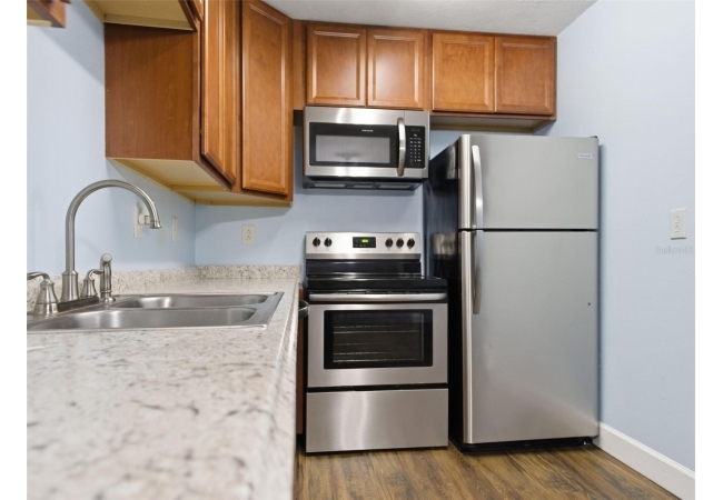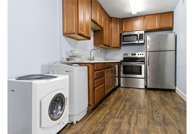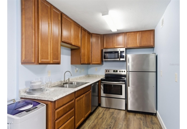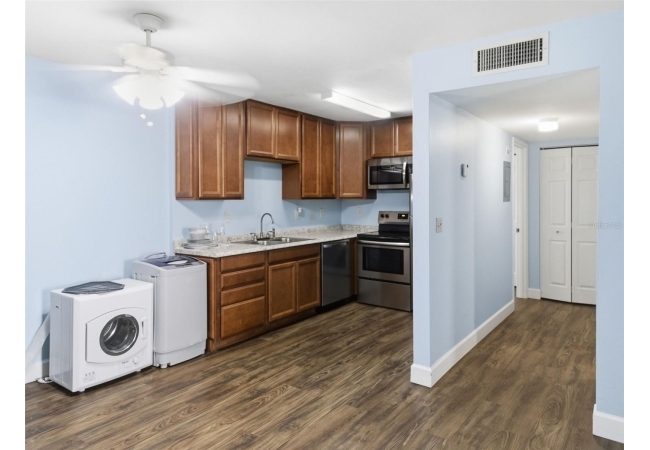 This super cute one bedroom one bath condo is move-in ready! Great ground floor unit with a screened in porch for enjoying coffee in the mornings. The bedroom is spacious and has large double closets. Extra storage in the hallway as well! Great sized, updated bathroom with tub shower combo and large linen closet. Renovated kitchen with plenty of cabinet and counter space. Stainless steel appliances. LVP wood grain flooring throughout the entire unit. In unit washer and dryer convey just for you! Perfect location, walking distance to the Oaks Mall and restaurants and just a couple hundred feet from the massive pool! Close to North Florida Regional Hospital, UF, Santa Fe College and on 3 different bus routes. Community features a pool, gym, dog walking areas, and clubhouse. This would be a great investment or perfect for a savvy student. Come see it today!