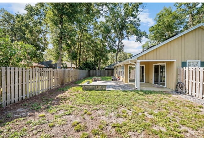 One or more photo(s) has been virtually staged. ***SELLER IS PROVIDING A $5000 CREDIT & 1 YR HOME WARRANTY AT CLOSING***. Welcome to this charming 3-bedroom, 2-bath home in the highly desirable Mentone community. Step inside to an inviting open floor plan with a split-bedroom layout, luxury vinyl flooring throughout, and no carpet anywhere. The kitchen features newer stainless steel appliances, epoxy counters for a fresh, modern touch, along with a breakfast nook in addition to the formal dining room—perfect for casual mornings or hosting friends and family. Built-in bookshelves add character, while new light fixtures give the home a bright, updated feel. The indoor laundry room makes everyday living convenient, and the home is hardwired for ethernet, making remote work or streaming a breeze. Outside, you’ll love the brand-new driveway and sidewalk, a fully fenced backyard, and multiple spaces for relaxing or entertaining—a covered lanai plus an open paver patio with seating and a fire pit. Recent updates include a 2021 roof, 2023 range and dishwasher and 2022 washer and dryer. HOA fees are just $208/quarter, giving you access to neighborhood amenities like a heated pool, kiddie pool, pavilion, pickleball on the tennis courts, basketball court, playground, and walking trails. All of this is just minutes from UF, Shands, Celebration Pointe, Butler Plaza, and more—and the home is on Clay Electric for lower utility costs.