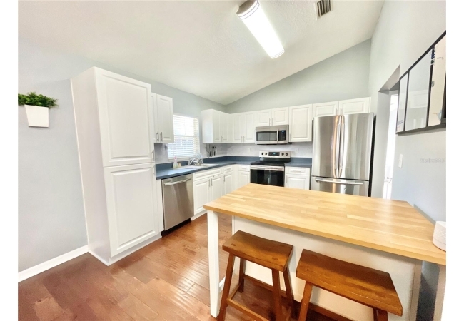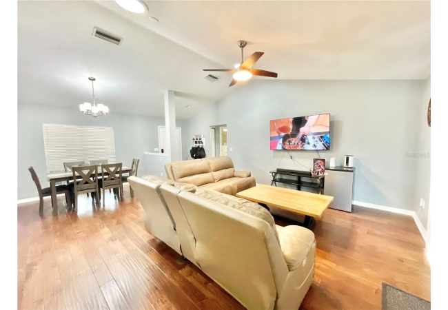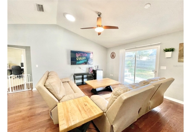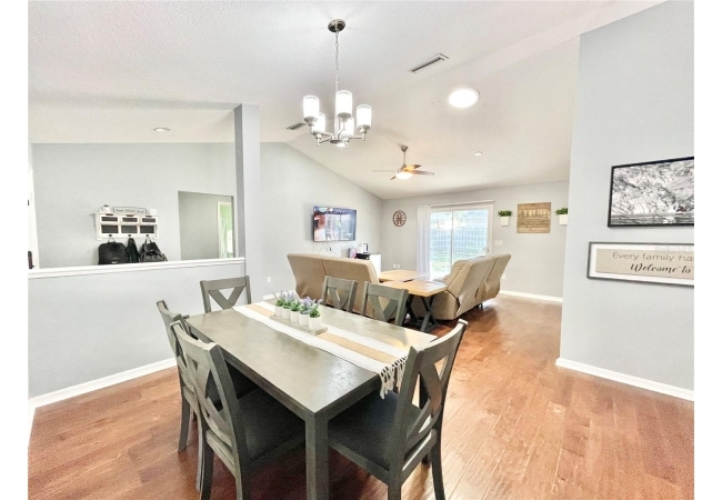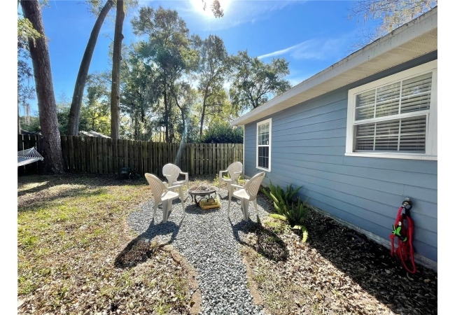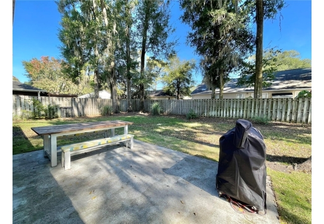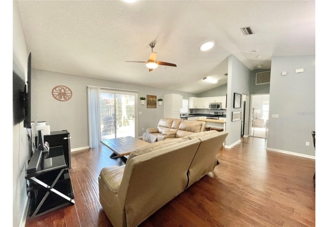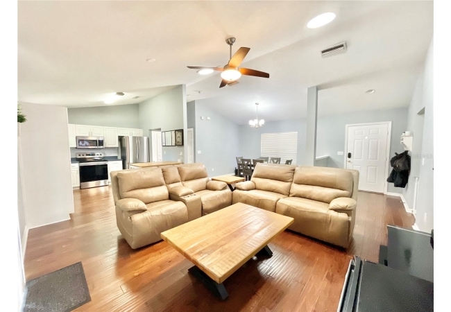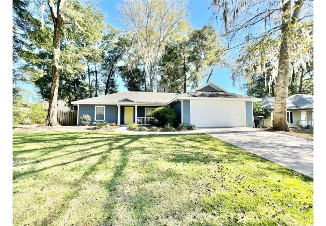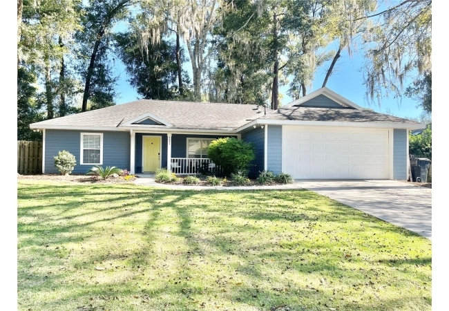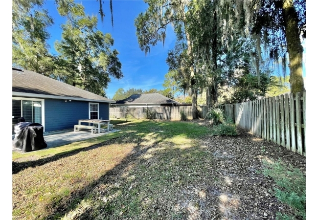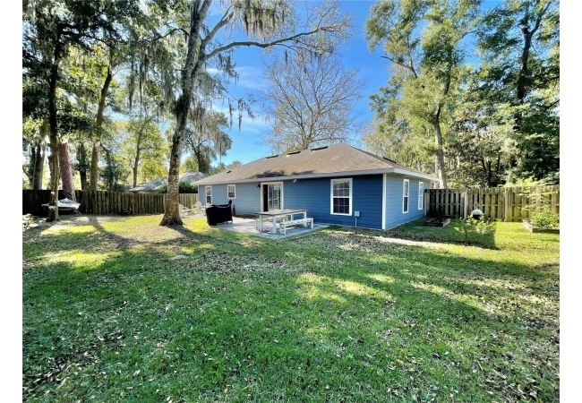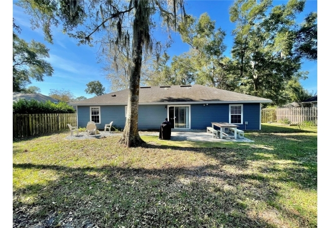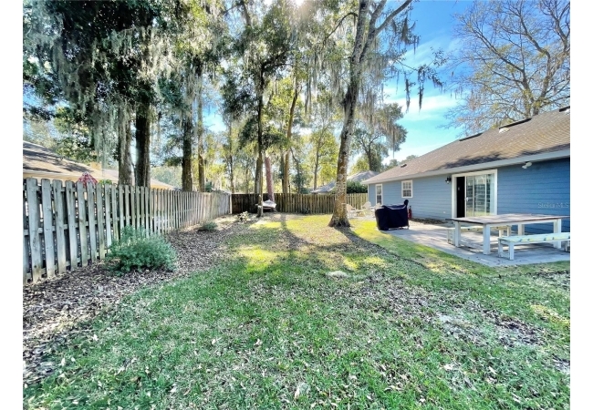 This 3-bedroom, 2-bath home in Mentone is a fantastic find, with an open layout that just works. Vaulted ceilings, tons of natural light, and engineered hardwood floors create a bright, warm, and inviting feel. The kitchen is open and practical, featuring crisp white cabinets, stainless steel appliances, and plenty of counter space. It connects seamlessly to the living room and a separate dining area, giving you space to cook, relax, or entertain. The split floor plan offers privacy, with the primary suite on one side and two additional bedrooms plus a full bath on the other. The primary suite includes a walk-in closet and a roomy bathroom with dual sinks, a garden tub, and a separate shower. Out back, there’s an open patio and fully fenced yard—perfect outdoor living, pets and gardening. Roomy 2-car garage for extra storage, with a roof replaced in 2019 and HVAC updated in 2023. Community amenities include an open-air pavilion, heated pool, kiddie pool, tennis, pickleball, volleyball and basketball courts, a soccer field, playground, and nature trails. Plus, it’s in a prime spot near the University of Florida, UF Health, I-75, Celebration Pointe & Butler Plaza town centers and all the shopping, dining and entertainment Archer road ha to offer.