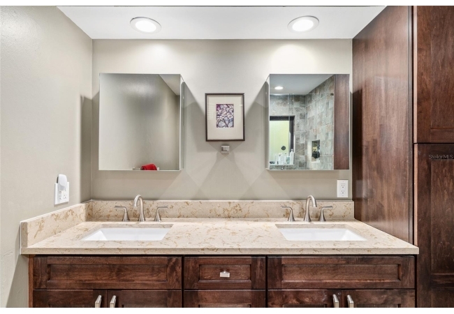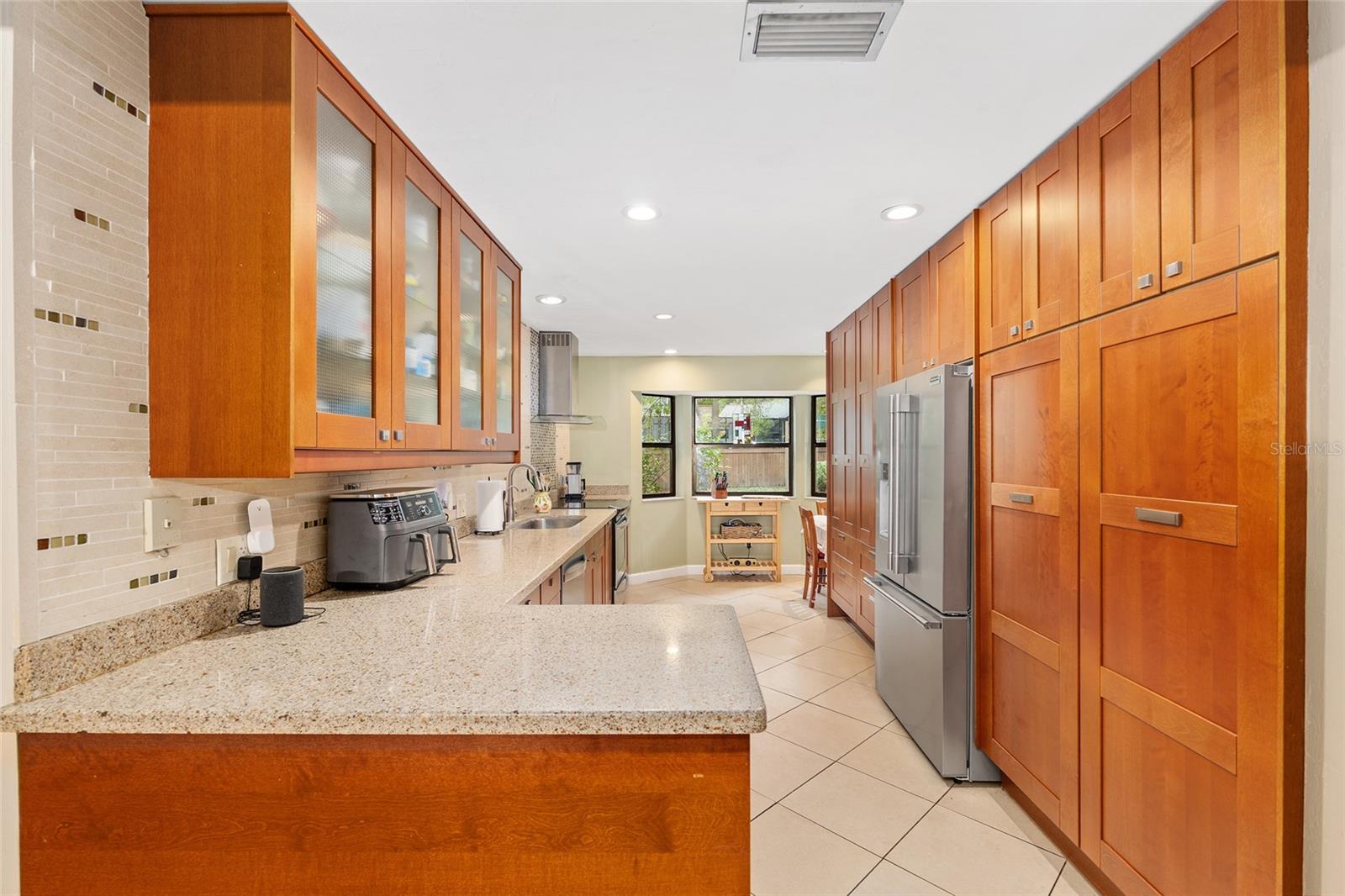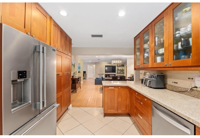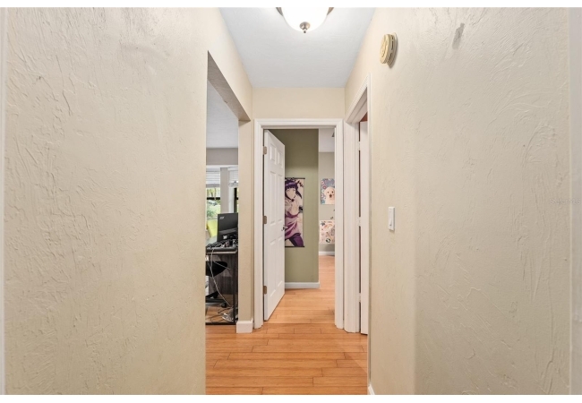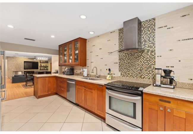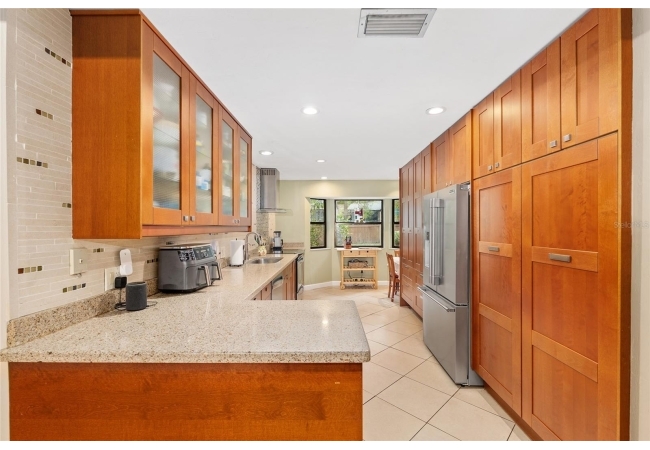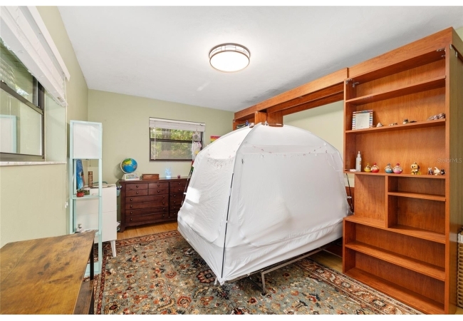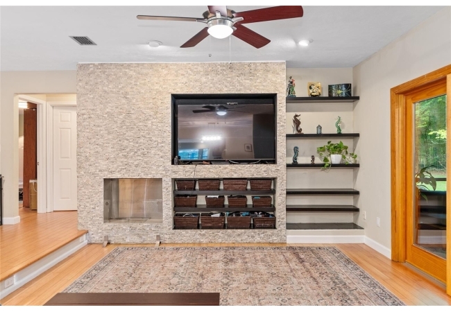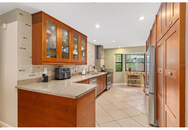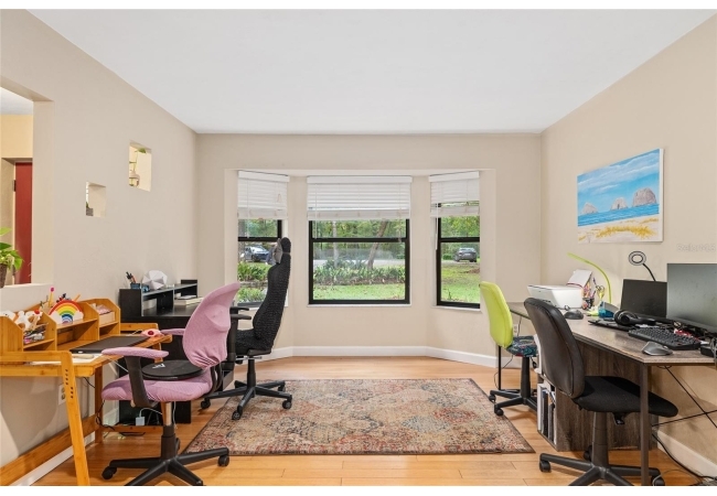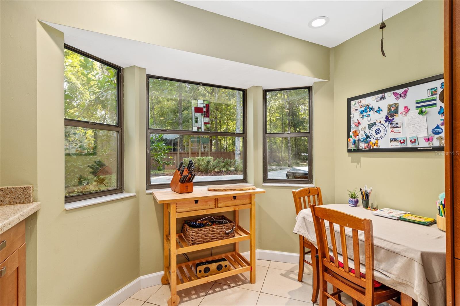 Discover the perfect blend of tranquility and convenience in this beautiful home nestled on nearly an acre in Marmaduke West off scenic Millhopper Road. Surrounded by nature, this property offers unmatched privacy, a serene backdrop of mature trees and natural beauty. Approaching the property and the cul-d-sac, you will immediately notice the lovely front landscaping, extra-long driveway, exterior brick accents, and newer metal roof on this 4-bedroom, 3 bath home. Inside, you’ll find light-filled living spaces designed for comfort and a connection with the outdoors. Entering the foyer, you are greeted by gleaming wood floors which flow throughout the entire home, no carpeting. The large great room features a stacked travertine stone wall encompassing shelving, built-in TV, and a unique ethanol Eco Smart fireplace, a clean burning alternative to wood burning or gas. To the right of the foyer is a spacious office area, large enough for several desks. The open floor plan highlights an amazing contemporary kitchen featuring stunning floor to ceiling wood cabinets, quartz counters, SS appliances, and unique designer tile backsplash that sets off the entire area. A cozy breakfast area completes the kitchen and a more formal dining area bridges the kitchen with the great room. The split bedroom plan features a large owner’s suite with two sets of french doors to the patio area and 2 amazing barn doors leading to the walk-in closet and the owner’s bath. The bath is newly renovated and resembles a luxury spa with double wood vanity with quartz counter and a striking glass enclosed shower with floor to ceiling stone like tile. At the opposite side of the house are two large guest rooms and hall tub bath with two pedestal sinks. A unique feature of this special home is a 420 sq. ft. in-law suite with full kitchen, plenty of space for a seating area, and comes complete with a murphy bed. An adjacent full bath features a jetted tub. The in-law suite can be accessed either thru the home or thru a private entrance. Enjoy your morning coffee or unwind in the evening on the expansive screen porch which overlooks an over-sized open patio. Majestic trees grace the private fully fenced yard with the added bonus of two storage sheds, plenty of room for all your gardening tools and extras. Whether you’re seeking a peaceful retreat or a convenient home base close to University of Florida, shopping, and restaurants, this property and Marmaduke West, with no HOA, delivers both. Experience the best of both worlds—quiet, scenic living with easy access to everything you need. Move-in ready with a 2022 metal roof and 2025 HVAC.