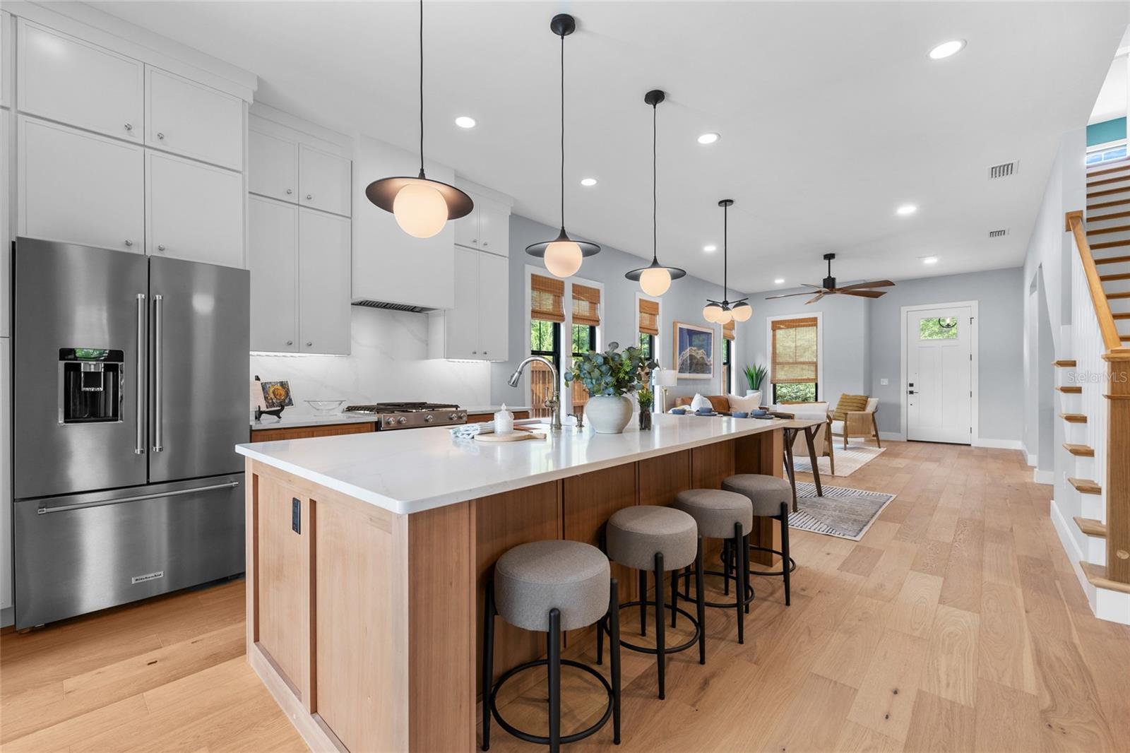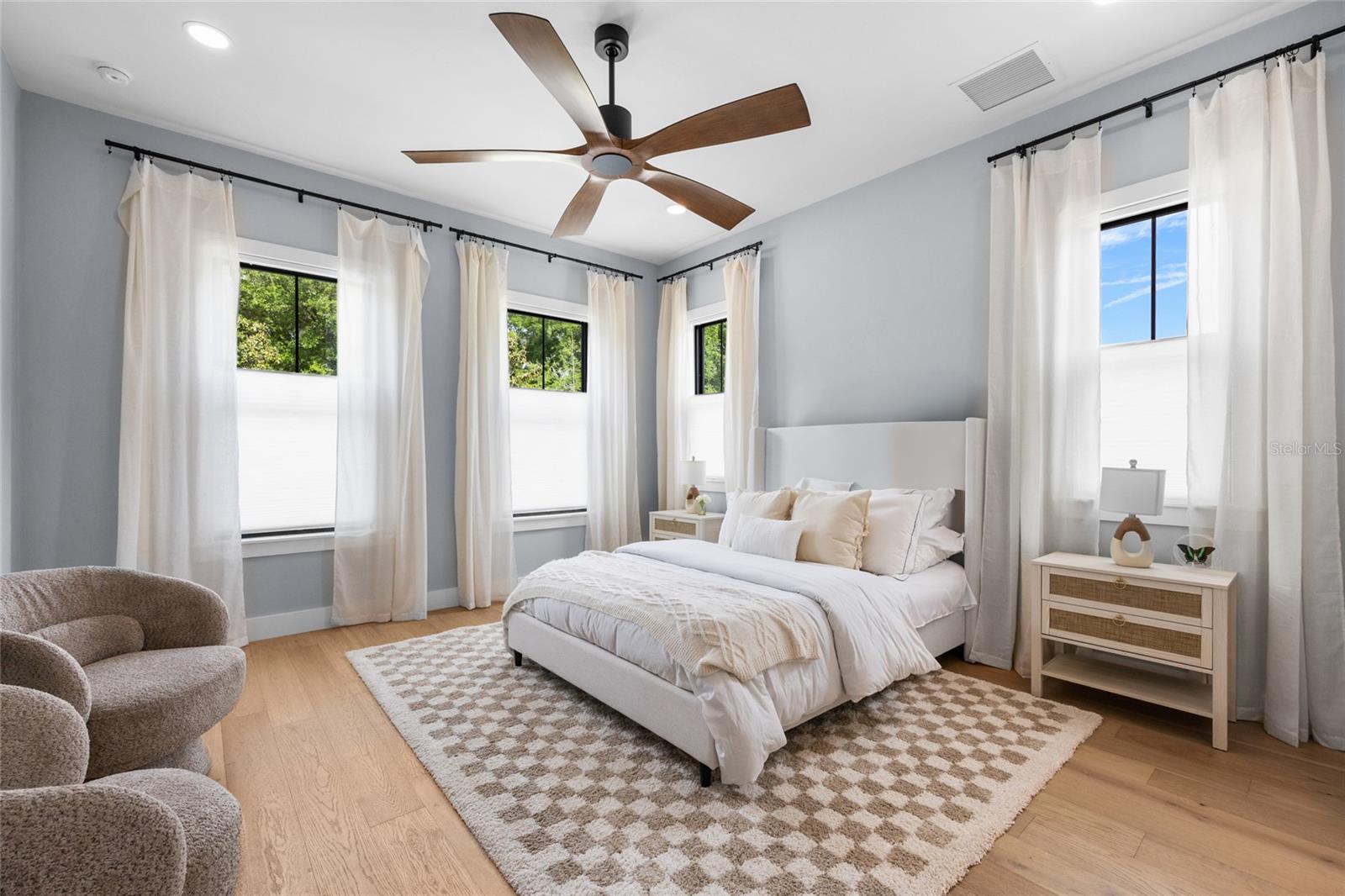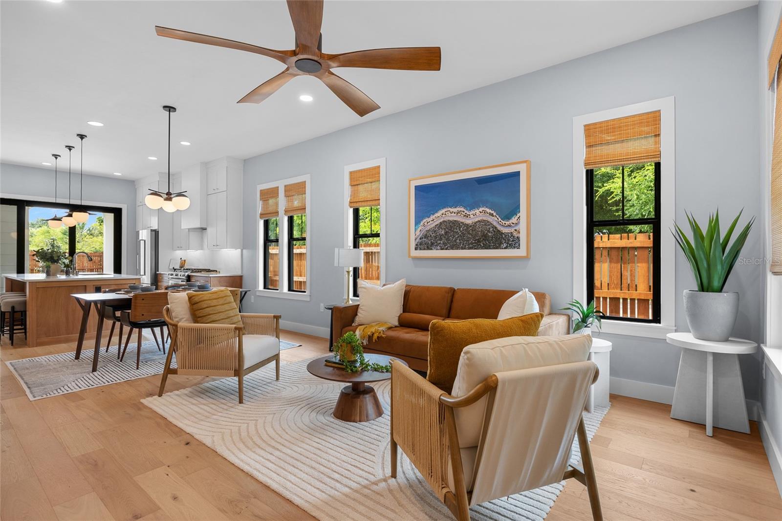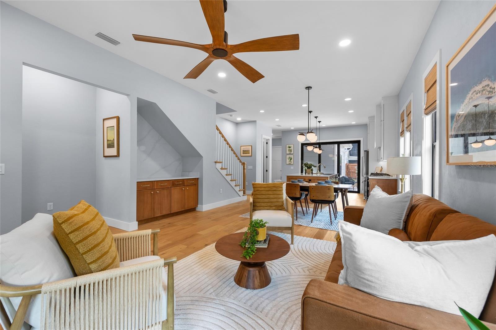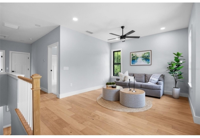 Stunning multi-generational 4-bedroom, 3.5-bathroom home in the desirable Town of Tioga. This two-story, 2,710 sq ft home offers a unique layout with a primary suite on the main level featuring a walk-through closet connected to the laundry room, and a second primary suite upstairs with an additional laundry room and flex space. Designed for modern living, the great room includes a dry bar perfect for entertaining, while the back porch is prepped for a summer kitchen, creating a seamless indoor-outdoor experience. A convenient drop zone and half bath near the garage entrance cater to busy lifestyles, making this home perfect for families seeking luxury and functionality in a vibrant community. Tioga itself is a golf cart-friendly town, providing a unique and enjoyable way to explore the area. The community also offers a range of amenities, including parks, trails, and recreational facilities. Conveniently located near shops, restaurants, and entertainment options, this home combines tranquility with easy access to modern conveniences. Neighborhood amenities – pickleball court, clubhouse, community pool, playground, tennis courts, sand volleyball, basketball courts, walking trails, and adjacent to Tioga Town Center with fine dining, shopping, and Gainesville Health and Fitness. Approximately 4 miles to I-75, 4.5 miles to North Florida Regional, 8 miles to the University of Florida, and 11 miles to Shands.