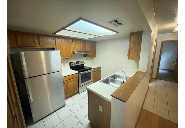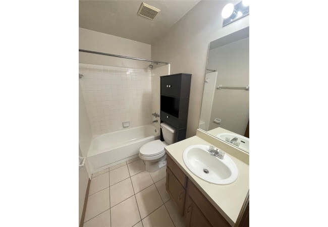 The kitchen shines with stainless steel appliances, delivering both style and functionality. The first-floor bedroom is paired with a full bath featuring tile flooring and a tub/shower combination.