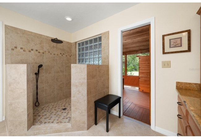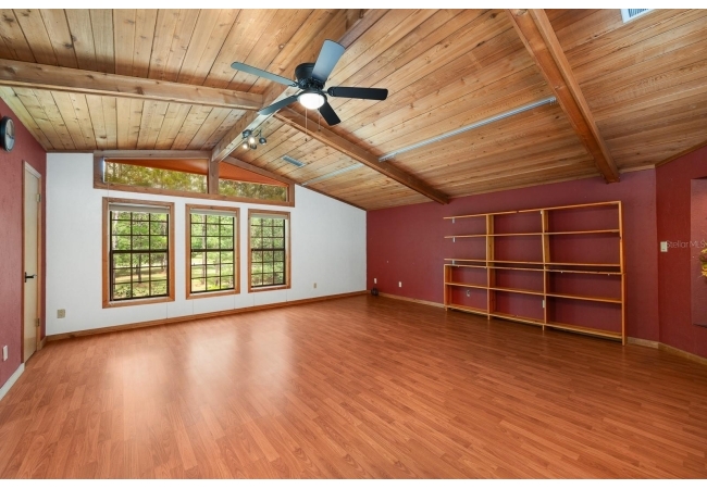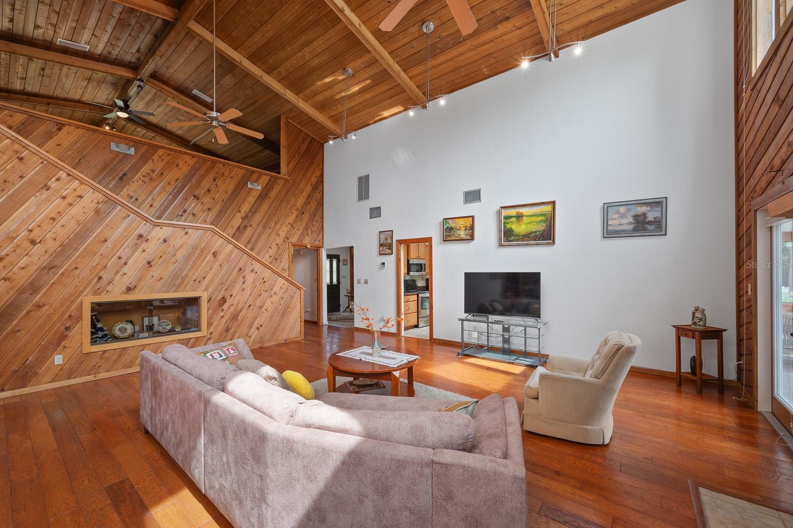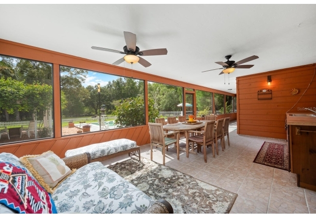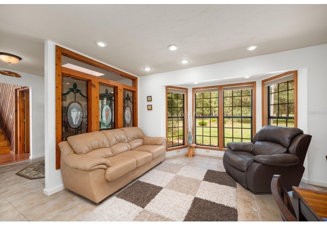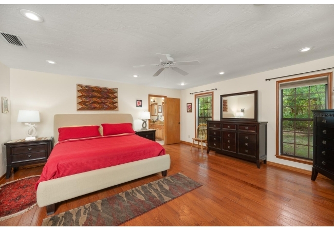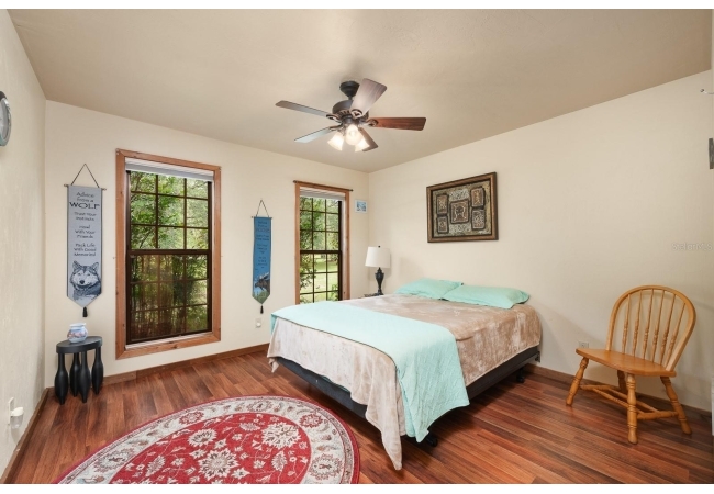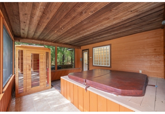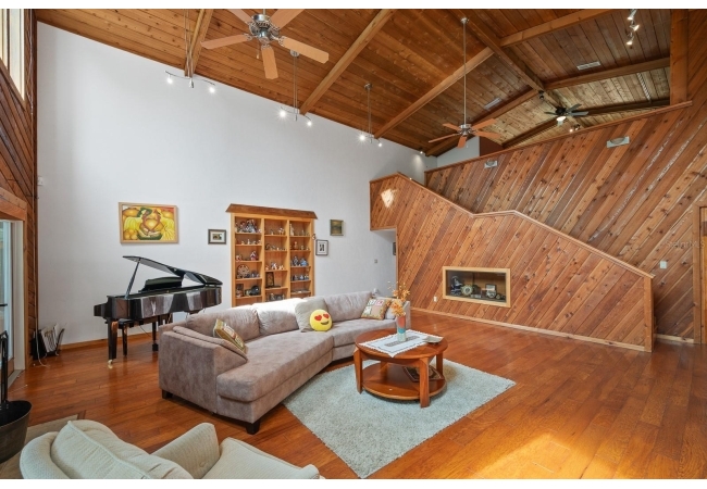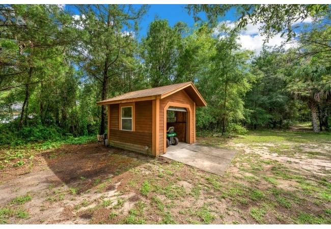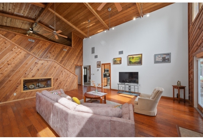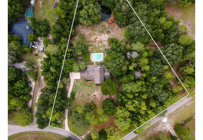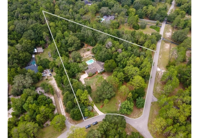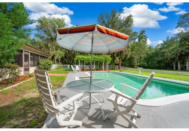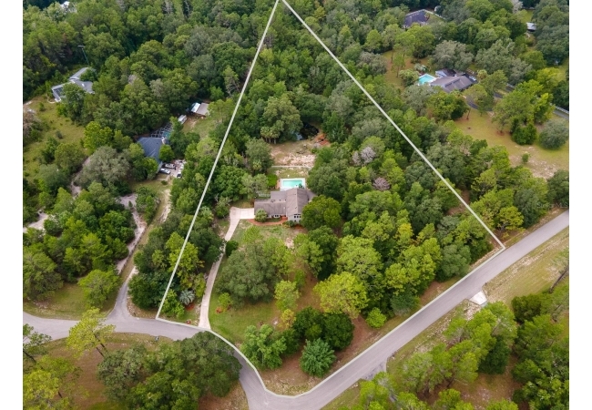 Seller will replace the roof prior to sale! Located just outside the Gainesville city limits, this beautifully crafted solid cedar wood home—built in 1984—offers a rare blend of privacy, natural beauty, and convenience on 4.42 acres in a community of custom-built homes with oversized lots and access to scenic neighborhood trails, perfect for peaceful walks and horseback riding—this community loves horses, so bring them! The home provides 2,840 square feet of living space with 3 bedrooms, 3 full bathrooms (including a Jack-and-Jill), and a spacious upstairs loft with its own bath and walk-in closet. The main living area boasts dramatic vaulted ceilings, while the kitchen and primary bath are equipped with sleek granite countertops. Hardwood floors in the living room and primary bedroom add warmth and charm, and French doors create an inviting entrance into the home. Outdoor living is just as impressive, featuring a large screened-in porch with a hot tub, a private pool surrounded by mature landscaping, and a peaceful artificial pond with a custom rock waterfall that often attracts local deer. A detached shed provides convenient storage, and all of this is just 15 minutes from UF, Shands, the VA, and close to shopping and dining. This well-maintained home offers a rare opportunity to enjoy timeless craftsmanship, open space, and modern comfort, all within easy reach of Gainesville’s amenities.