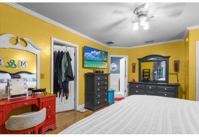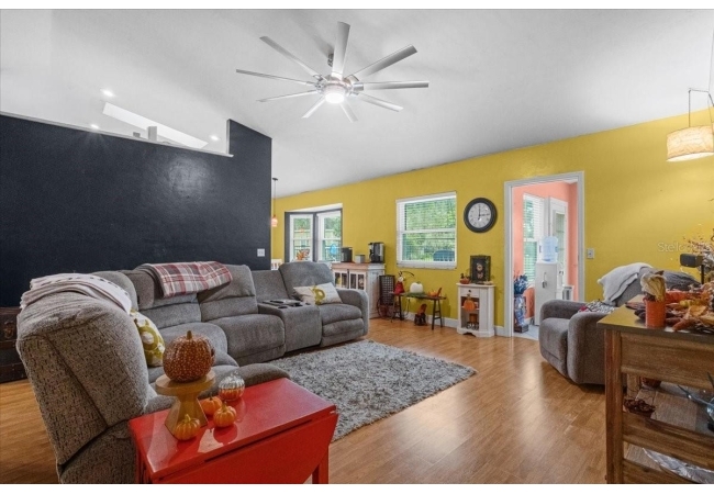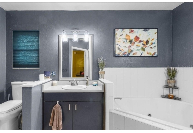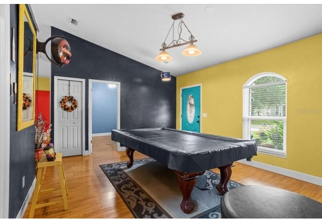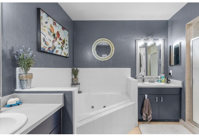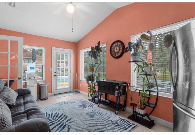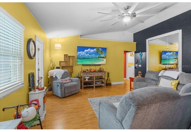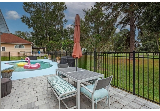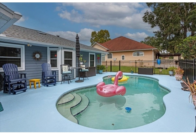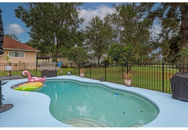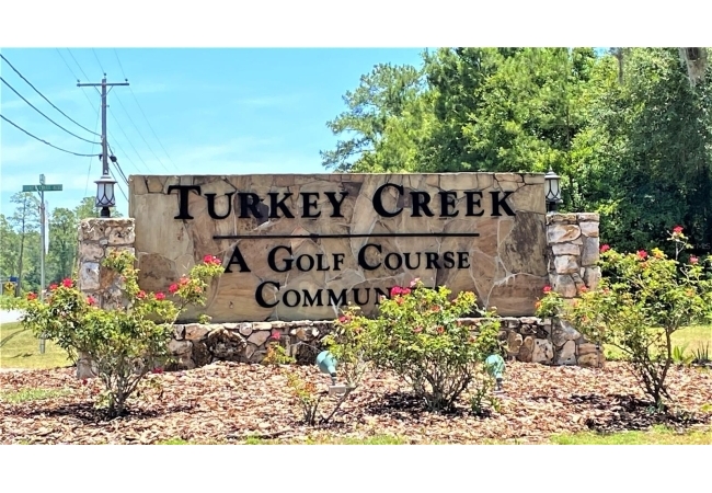 Welcome home to this 4-bedroom, 2-bathroom pool home located on the 15th tee box of Turkey Creek Golf Course. With over 1,800 sq. ft. of living space, a 2-car garage, and a bonus flex room ideal for a home office or additional bedroom, this home offers both comfort and versatility. The exterior has been newly painted and features recent updates including a new roof, HVAC system, hot water heater, and pool pump. Inside, you’ll find new upgraded windows, ceiling fans, featuring a vaulted ceiling, and a split floor plan that provides privacy and space for family gatherings. The kitchen and dining area offer abundant cabinetry, newer appliances, and a skylight that fills the space with natural light. The spacious primary suite opens directly to the back patio and features a walk-in closet, dual vanities, a walk-in shower, a garden tub and linen closets.