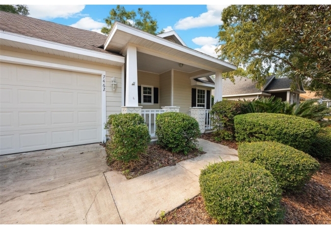 Well maintained 3 bedroom 2 bath home with Laurel floor plan located in the highly desirable Longleaf community, This lovely home offers a split plan with the master off the dining area. The two guest rooms are located off the great room and share a full hallway bath. Great room with gas fireplace and ceramic tile surround with French door opening onto the tiled, two sided screened lanai. Association maintains the front yard ,community clubhouse, 24 hour fitness center, beach entry pool with waterfall, tennis courts, basketball courts and playground.Close to shopping, great restaurants, Shands and UF.