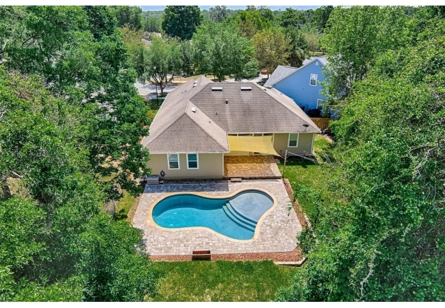 Beautiful home and property in Willow Oak Plantation. This larger than most lots in Willow Oak backs to a wooded area. As you enter you will admire the hardwood floors throughout the living areas. The open floorplan from the kitchen to the living room will join everyone together for food and fellowship. Kitchen features granite counter tops, stainless appliances with plenty of cabinets to store everything you need. Built in pantry style cabinets with roll out drawers is a great addition making finding things easy. Heading into the adjacent dining room you will love the additional built in cabinets and counter space along with a large area for your dining room table. The family room connects to the dining room for additional space for either room. The owners suite with lighted trey ceiling and two ceiling fans is sure to please with its space overlooking the back yard and beautiful pool. Owners updated bath has dual sinks with new faucets and granite counter tops, walk in shower and and walk in closet gives you everything you need. The three additional bedrooms in this split floor plan home will serve friends and family or maybe an office. The hall bathroom is updated and has granite tops and new faucet that serves the pool and bedrooms. Heading outside you will love the Florida Room first to relax in as well as great eating area with views of pool and back yard. From the Florida Room, you enter maybe the best part of this home with the sail type sun shade enjoying the paver pool deck and the privacy this yard gives you. The pool is spectacular with oversized sun shelf with steps leading down into pool that was installed in 2020!. Wood privacy fence for the pets with wooded area behind you finishes this home out tremendously!