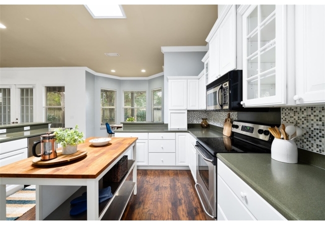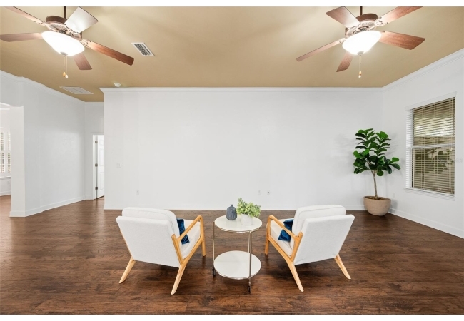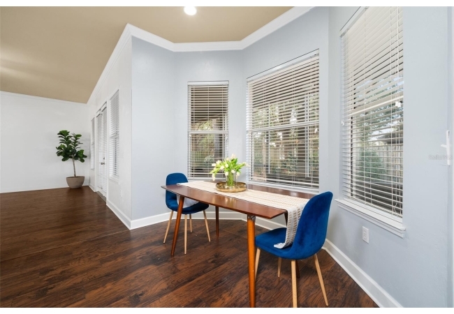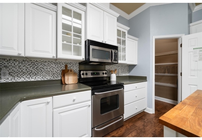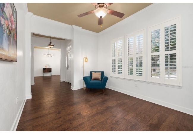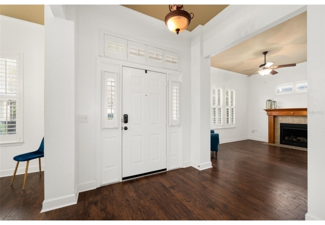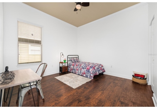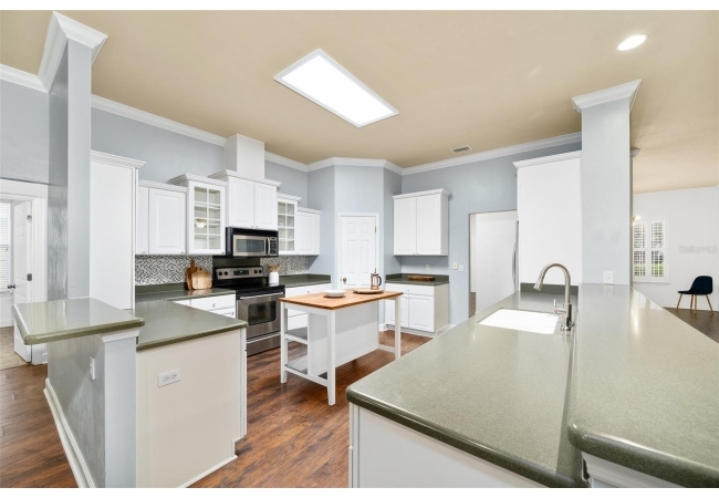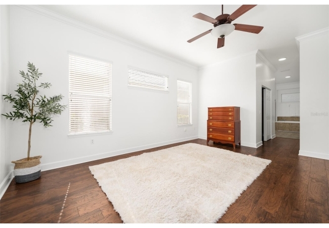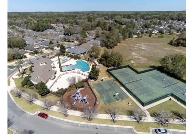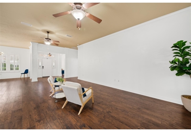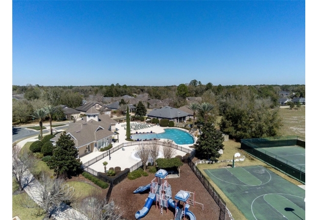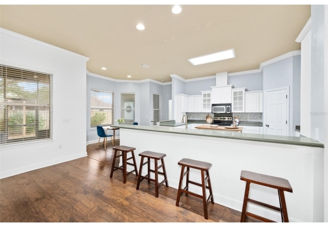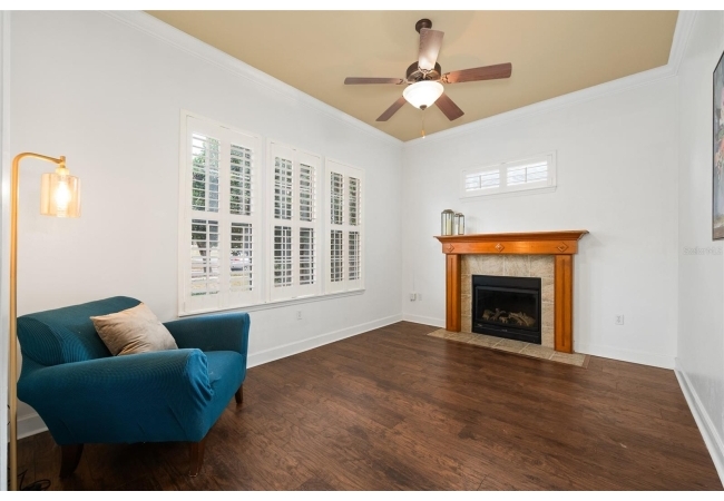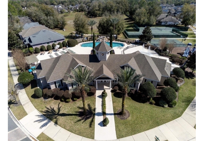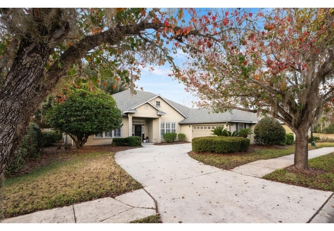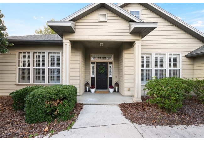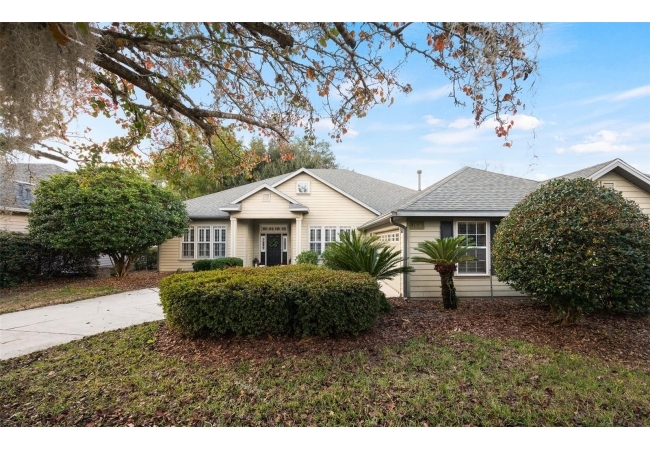 Welcome home to this stunning and spacious former Parade Home, situated on a manor lot in the highly desirable Longleaf community. Thoughtfully designed, this open-concept home offers over 2,900 square feet of beautifully appointed living space, featuring 10-foot ceilings, crown molding, plantation shutters, and vinyl plank flooring throughout the main living areas and bedrooms. At the heart of the home, the expansive eat-in kitchen is designed for both everyday living and effortless entertaining. It boasts abundant cabinetry and generous countertop space, stainless steel appliances, a tile backsplash, pantry storage, a prep island, and two breakfast bar areas that provide ample seating. The kitchen flows seamlessly into the main living spaces, enhancing the home’s open and welcoming feel. The well-designed 4-bedroom, 3-bath, three-way split floor plan offers exceptional flexibility and privacy. The primary suite serves as a true retreat with two walk-in closets and a spacious ensuite bath featuring dual vanities and a large garden tub. On the opposite side of the home, two guest bedrooms share a full bathroom, while the fourth bedroom and third bath provide the perfect setup for guests, an office suite, or additional flex space. The home’s layout also includes a formal dining area and a versatile bonus room with a gas fireplace—ideal for a home office, library, or flex room. Off the main living area, French doors lead to a large screened, covered back porch, creating an ideal space for relaxing or entertaining while enjoying the outdoor setting. Additional highlights include an oversized laundry room with built-in cabinetry and dedicated hanging and folding areas, pull-down attic storage in the garage, and the roof replaced in 2021. The HOA provides front lawn service, and enjoy the resort style community amenities including a clubhouse, 24 hour fitness center, beach entry pool, playground, tennis courts, and a basketball court. Conveniently located near I-75, UF, UF Health, VA, Celebration Point and Butler Plaza. Schedule your private tour today!