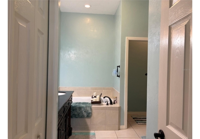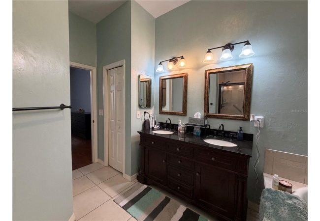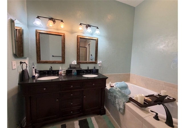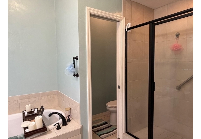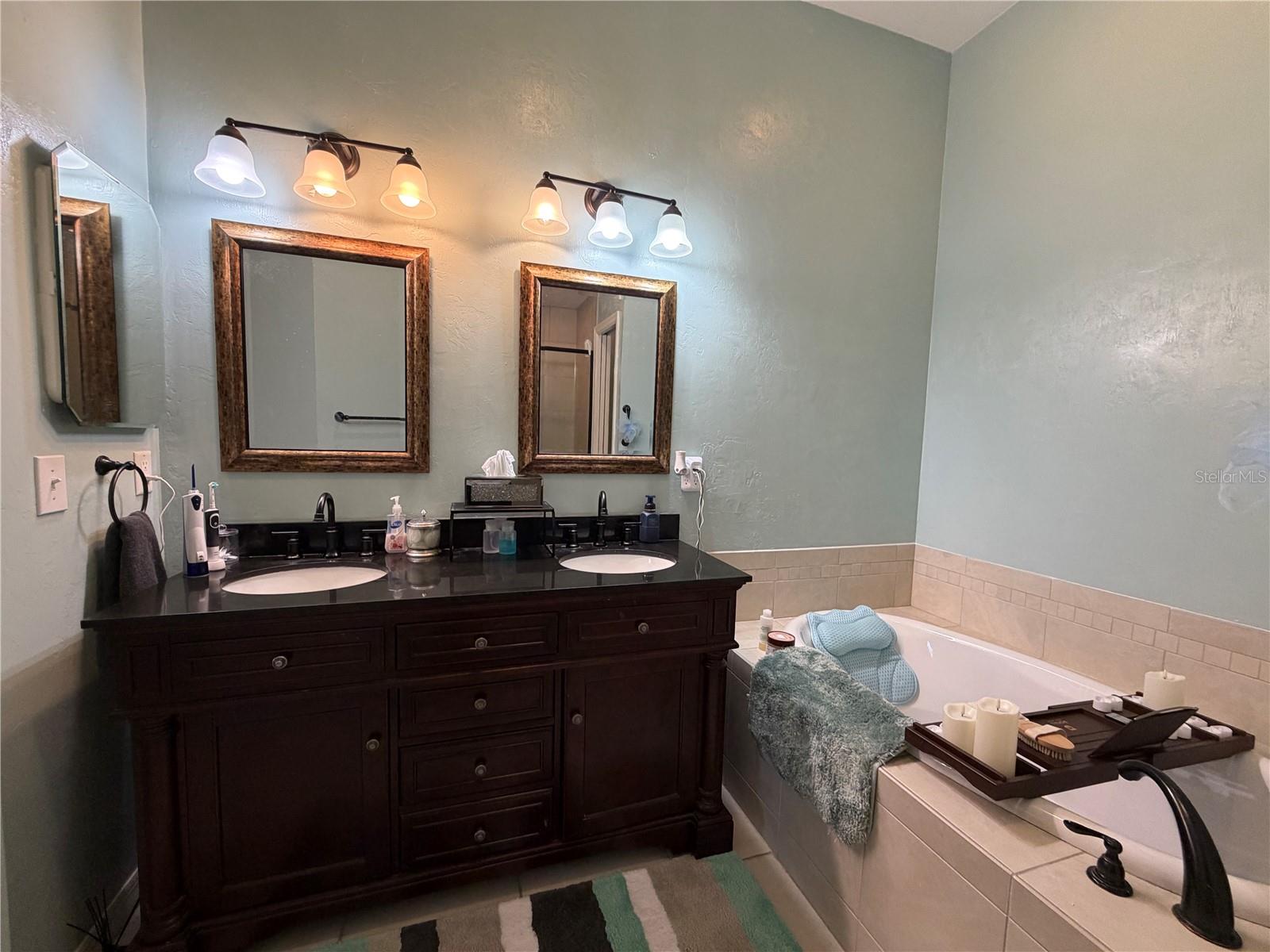 has a soaking tub, double sinks and separate shower. The 2 car garage with automatic opener is detached