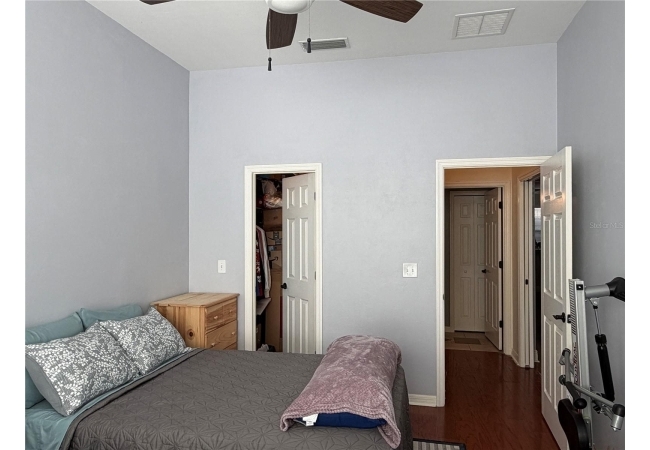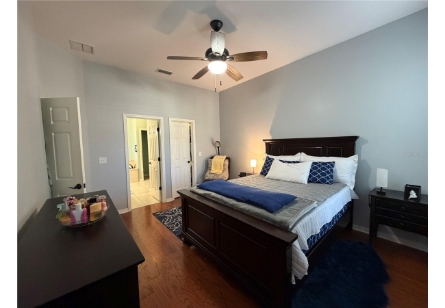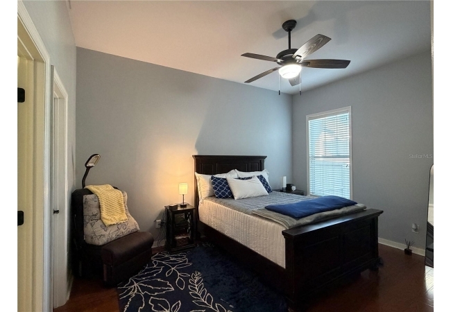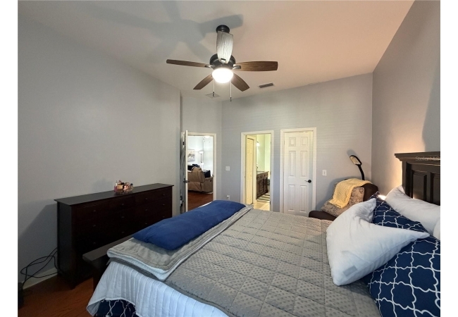 primary bedroom has a walk-in closet, and en suite bathroom is near the rear of the home. The laundry