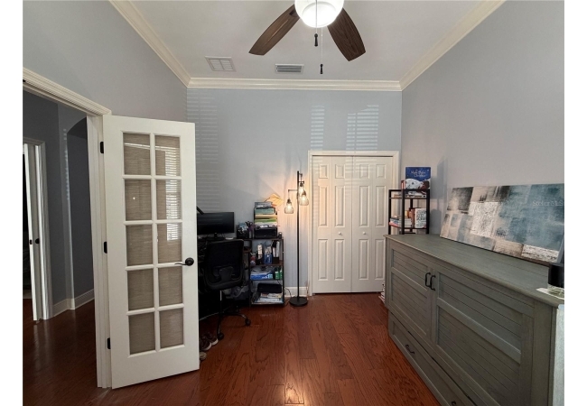 touch. 10'' ceilings with crown molding are throughout the home. French doors enclose the 3rd bedroom or