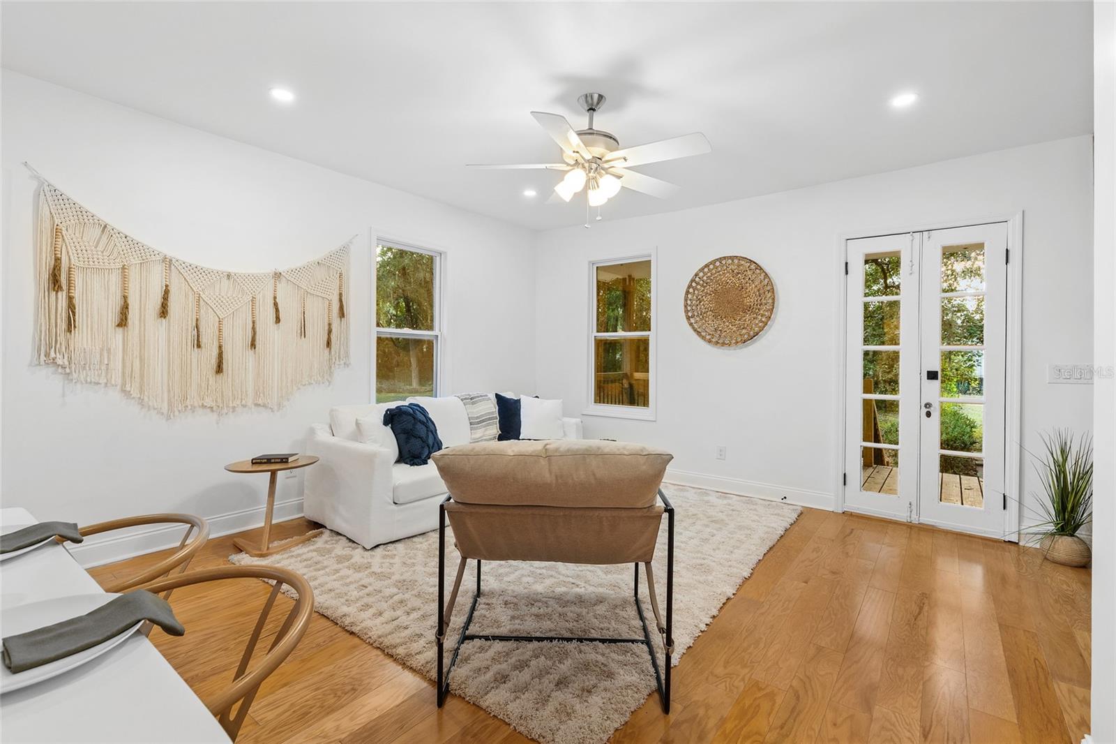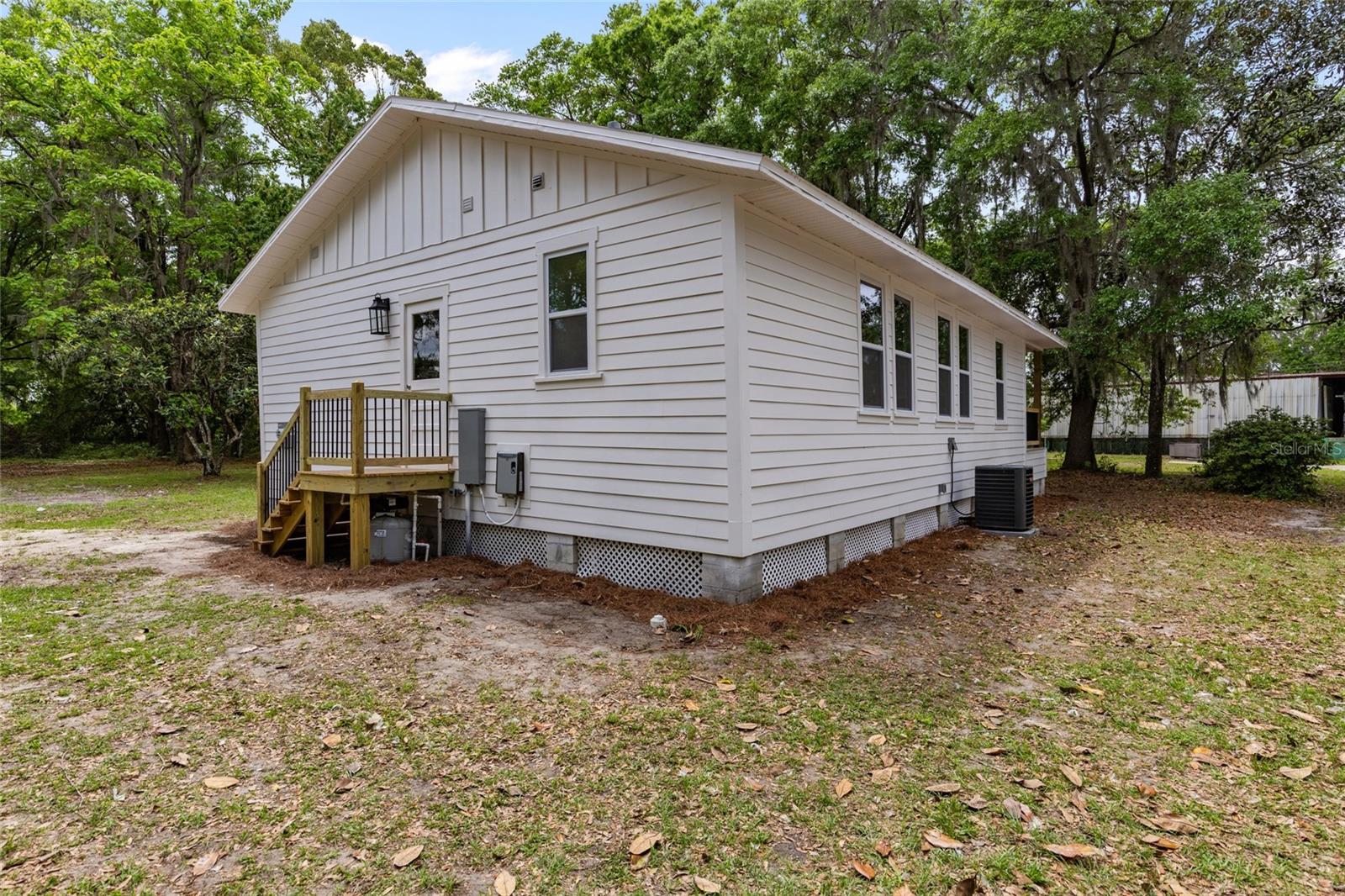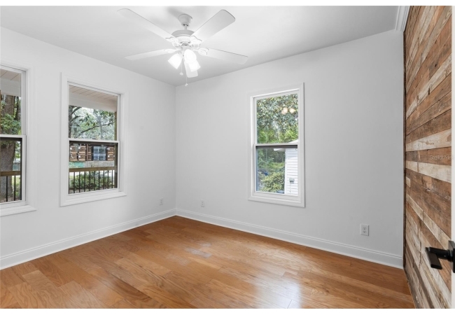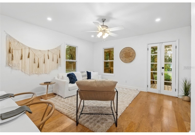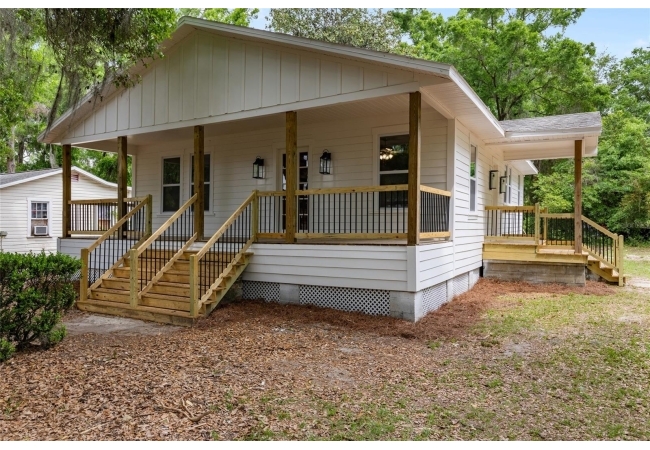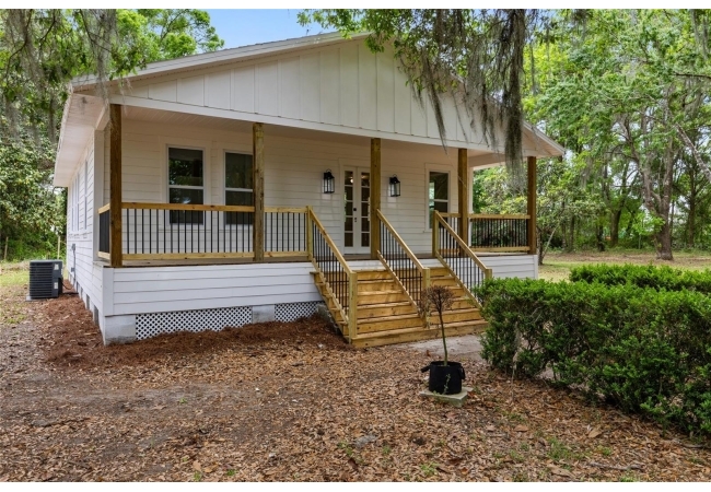 A spacious back porch offers beautiful views of the granddaddy oak trees and offers plenty of shade from the Florida Sun.