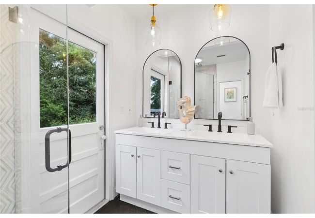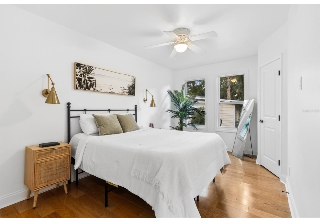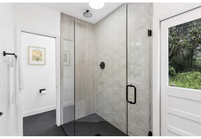 On one end of the home you’ll find a guest bathroom, laundry room, and the primary suite, complete with walk in closet, gut renovated bathroom. On the other side of the home you’ll find two spacious bedrooms and extra storage.