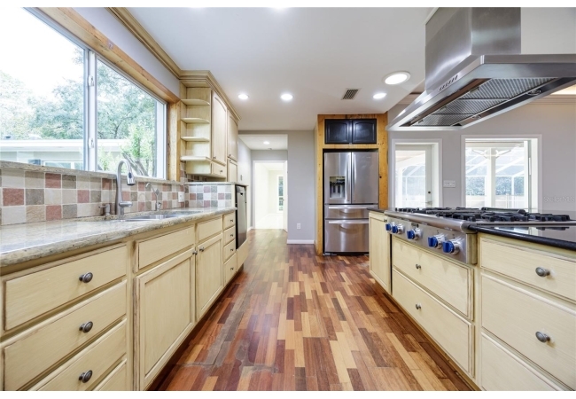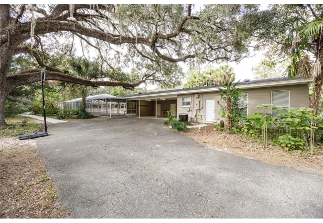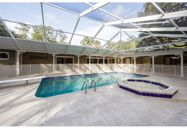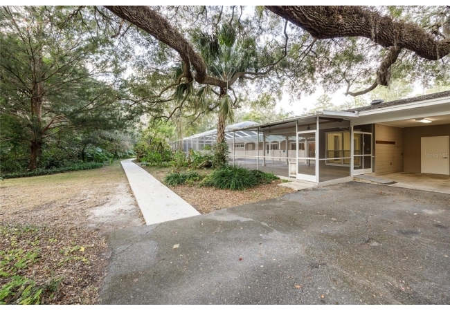 Lifetime Home Located in Beautiful 2 Acre Park-like Setting with Attached Fully Equipped Apartment! The main home offers 4,327 sq ft 4 full bedrooms and 3.5 bathrooms with additional hidden study off owner's suite and additional bonus/play room adjacent to the pool half bath and kitchen all on one level and fully open to the enormous screened in pool & spa area. The spacious kitchen with wood cabinetry and granite countertops features a Thermador gas range & wine fridge and is open to the massive family room with double sided gas fireplace. This custom designed all block home built by M.M. Parrish Construction for E.T. York features an impressive circular drive entry with long side driveway and rear entry 3 car covered carport. One bedroom 750 sq ft apartment offers full kitchen, living area, updated bathroom with shower, and bedroom. Concrete sidewalk wraps around the entire oak-laden property along with chain link fencing allowing separate space for pets. Kenwood is located in desirable SW Gainesville and is a convenient location to schools, shopping, & bus routes to UF and hospitals. Per Alachua County records: Roof 2017, whole house repipe 2017, 2018 tankless gas water heater, 2020 HVAC, septic tanks replaced/new drainfield in 2023.