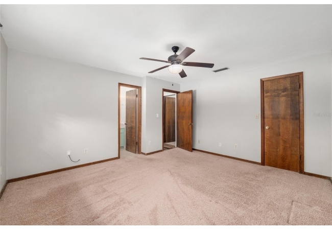 The oversized primary suite provides a peaceful retreat, featuring a walk-in closet and a private view of the expansive backyard. One of the additional bedrooms also includes a walk-in closet, adding to the home’s thoughtful storage options. Step outside to enjoy a truly inviting outdoor space, where mature palm trees and blooming camellias create a serene, backyard oasis—ideal for morning coffee or evenings gathered around a fire pit. A fully fenced, oversized yard offers both privacy and plenty of room to play or garden.