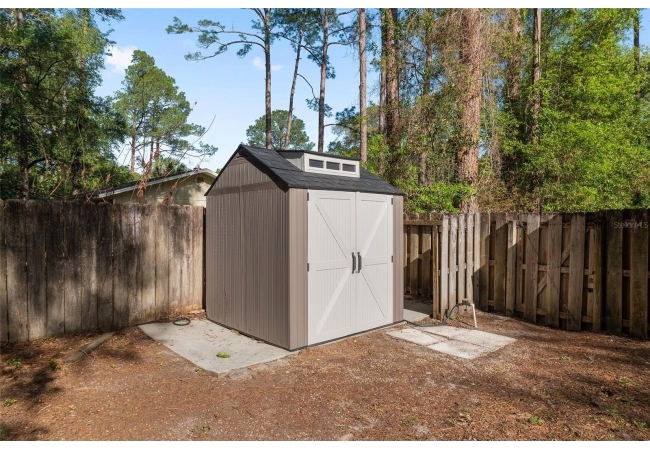 Additional highlights include a one-car garage with built-in shelving and a dedicated laundry area for added convenience. With a newer roof and a prime location just minutes from Publix, Celebration Pointe’s shopping and dining, Archer and Newberry Roads, as well as the scenic trails and farmers market at Haile Plantation, this home combines modern updates with unbeatable accessibility.