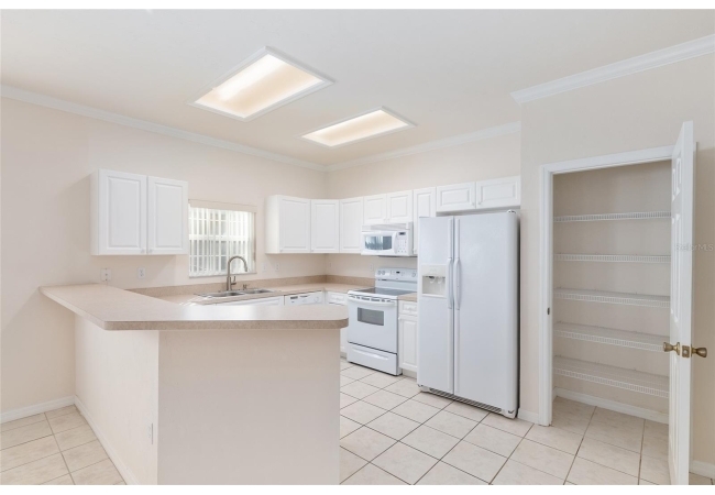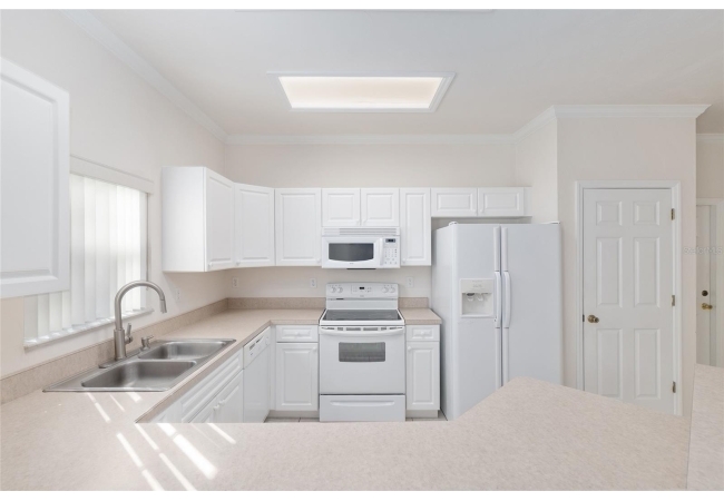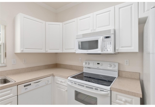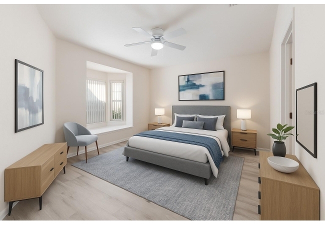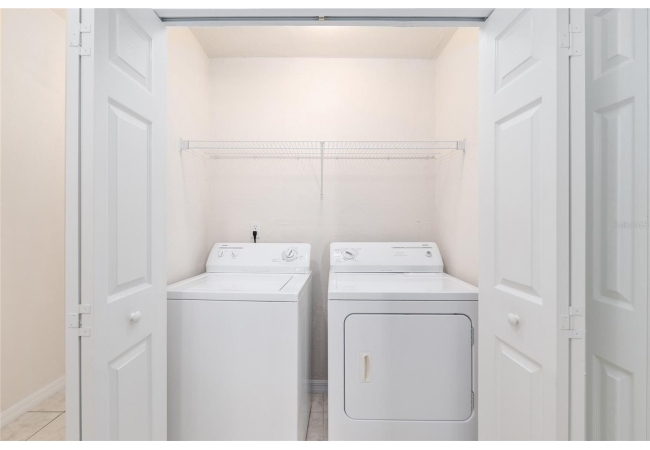 Enjoy an open concept, easy-flowing living area, kitchen and dining area. The primary suite is highlighted by a classic bay window with a cozy window seat, a large walk-in closet with shelving, and an ensuite with double sinks and tub/shower combo. Generously sized second bedroom and second bathroom with tub/shower combo. This side of the home is separated from the primary suite by a hallway for extra privacy. Inside laundry closet with washer and dryer. Enclosed, screened back porch with a quiet backyard.
