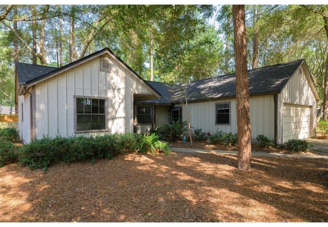 Roof replaced in 2024! New Hot Water Tank! New AC Compressor! Welcome to this cozy, 3-bedroom, 2-bath single-family home, located on a tree-filled, corner lot in the desirable Haile Plantation neighborhood of Planters Grove. Built in 1989 and offering approximately 1,340 sq ft of living space, this residence has a modern-day cottage look and feel.