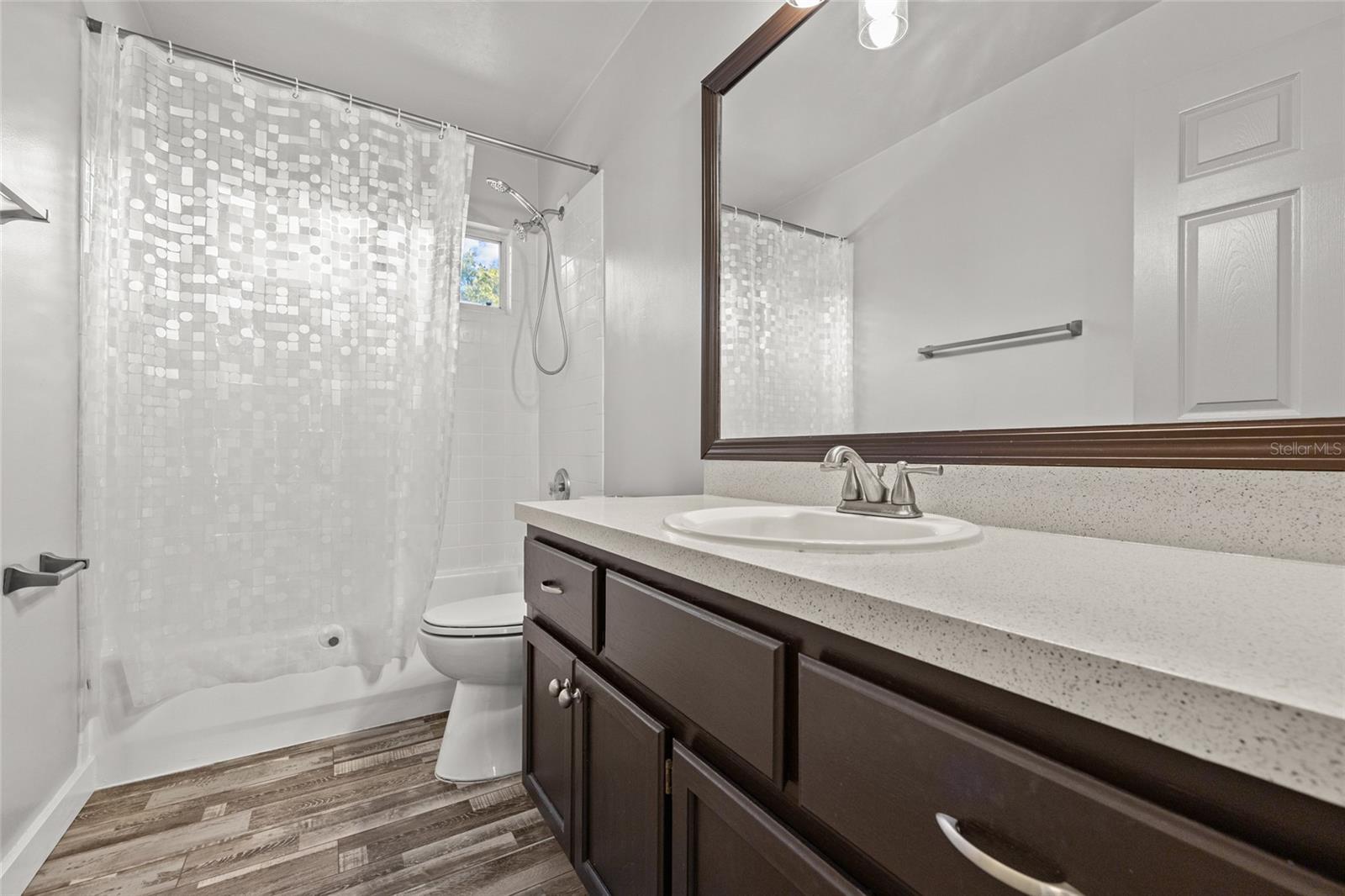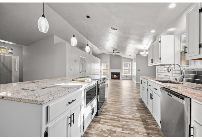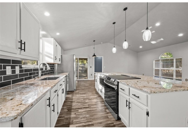 Welcome to your next chapter in the highly desirable Hickory Forest neighborhood of Gainesville, where comfort and style meet intentional living. As you pull up, you’ll notice the effortless curb appeal and two-car garage, then step inside to an open, airy great room with vaulted ceilings that invite both relaxation and connection. The updated kitchen is the true heart of the home, featuring a spacious island with seating, granite countertops, and plenty of room for cooking and entertaining A breakfast nook and separate dining area give flexibility for gatherings. Luxury vinyl plank flooring runs throughout the main living areas and into the primary suite, making it as practical as it is stylish. The primary bedroom feels like a retreat with its renovated en-suite bath and generous space to unwind, while the three additional bedrooms provide flexibility for family, guests, a home office, or other needs and share a well-appointed guest bath. Step through the sliding doors to a screened and covered lanai, perfect for morning coffee or quiet evenings. The fenced backyard provides privacy and room to play on a spacious corner lot. Major systems have been thoughtfully updated with a 2016 roof, 2025 water heater, and 2015 HVAC, offering peace of mind for years to come. Community amenities include a clubhouse, pool, and tennis courts, adding to the lifestyle appeal of this SW Gainesville location. Close to shopping, schools, and easy commuter routes, this home blends thoughtful design with everyday functionality. If you’re ready for a move that feels seamless and well-supported, this one checks all the boxes.