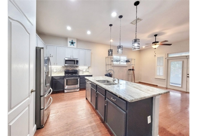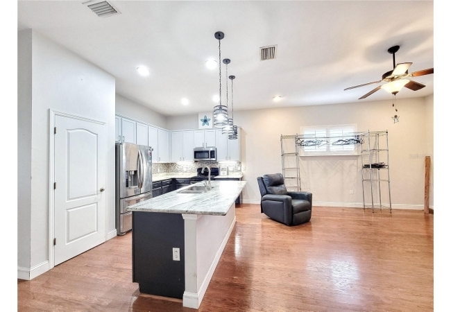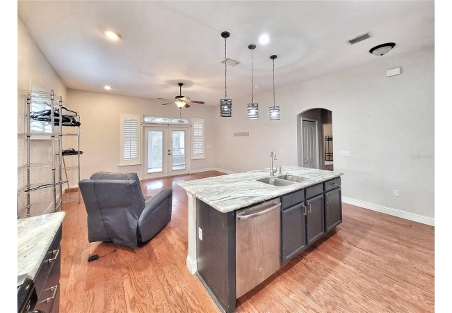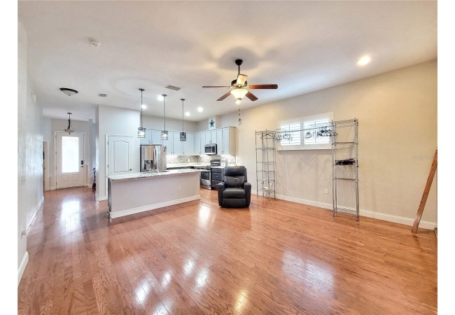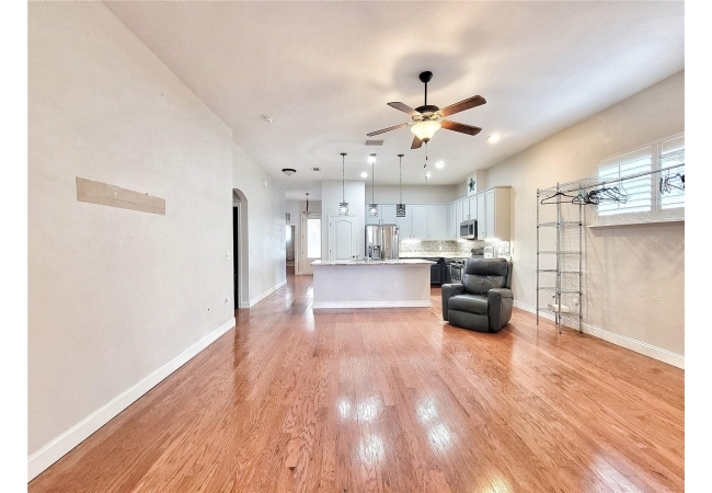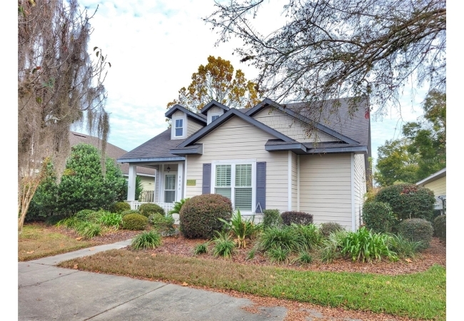 Incredible opportunity in Longleaf! One of Gainesville’s most desirable communities, this spacious 3-bedroom, 2-bath, just over 1,600 sq. ft. home offers numerous upgrades and a flexible canvas for your final personal touches. The open-concept kitchen, dining, and living area features a renovated kitchen (2021) with granite countertops, stainless steel appliances, plantation-style shutters, updated lighting and ceiling fans, and engineered hardwood flooring throughout. The generous primary suite includes an opulent bathroom with a jetted soaking tub, walk-in shower, double vanity with solid-surface countertops, and extra cabinet space. French doors open to a large covered and screened patio with ceramic wood-look tile, overlooking a low-maintenance astroturf backyard. The home features durable, low-maintenance HardieBoard siding, a rear-entry two-car garage, and the association maintains the front yard for easy upkeep. Community amenities include a playground, pool, and master-planned features perfect for families. The location offers amazing schools, easy access to UF, Shands, I-75, and proximity to the budding city of Alachua. With the home on Clay Electric, not Gainesville Regional Utilities, energy costs are kept low. A fantastic opportunity to own a well-upgraded home in a highly sought-after neighborhood!