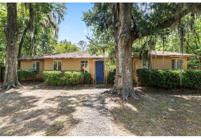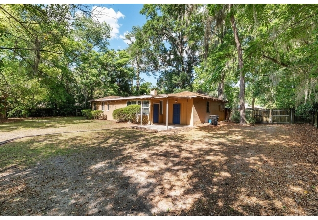 This spacious 4-bedroom, 3-bathroom property combines comfort, character, and style—all on a generous lot with a huge backyard perfect for entertaining, gardening, or play. Perfect house for your next home or an investment close to the University of Florida. Step inside to find gorgeous wood floors, a cozy fireplace, and stunning exposed wood accent beams that add warmth and charm to the living space. The home’s layout offers both functionality and flow, with multiple living and dining areas to suit your lifestyle. The newly renovated bathroom features modern finishes and a fresh, clean look—just one of several updates that make this home move-in ready. With four well-sized bedrooms and three full baths, there’s room for everyone to spread out and enjoy. Out back, you’ll find a massive backyard ready for anything—BBQs, pets, a pool, or your future outdoor oasis. Whether you're looking to relax or entertain, this home checks all the boxes. Walk to West Side Park and Loblolly Nature Park! Don’t miss your chance to own this unique property with timeless touches and modern upgrades—schedule your tour today!