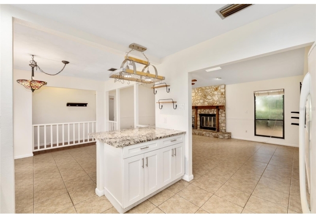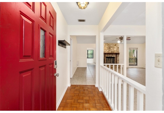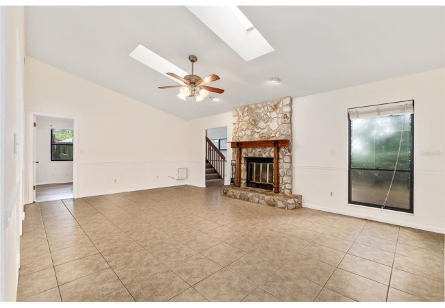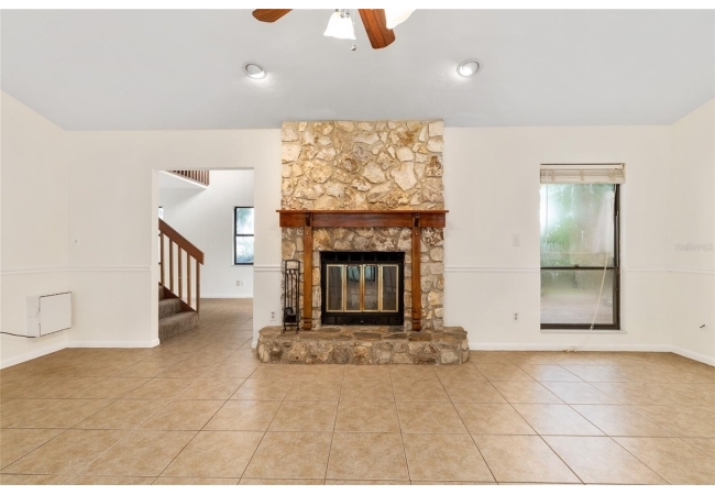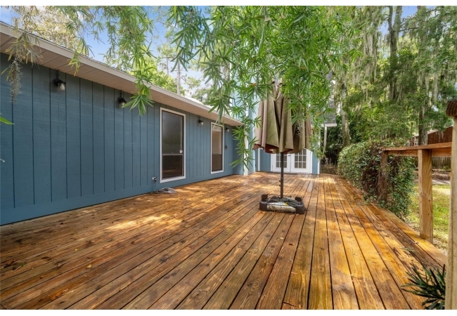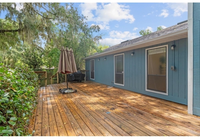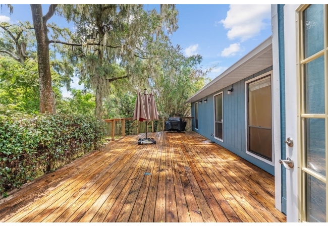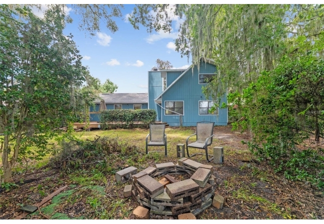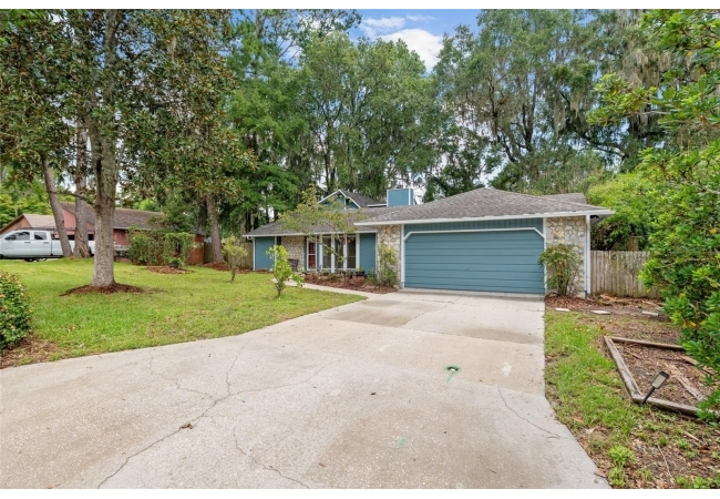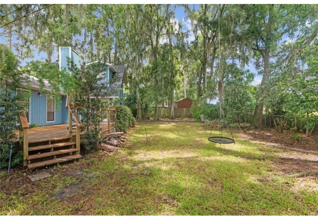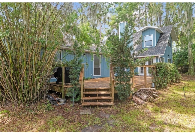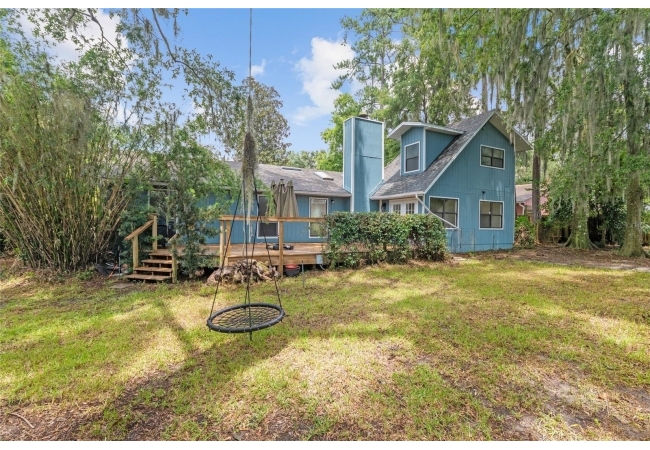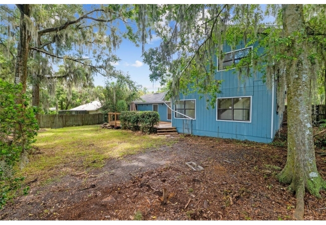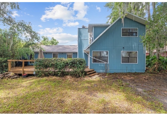 Inside, you’ll find a functional layout with tile and laminate flooring throughout, a large living room with a cozy fireplace, and a dedicated office or flex space upstairs. The updated kitchen with granite countertops and dining areas flow seamlessly to the rear deck and patio, perfect for entertaining or relaxing outdoors. The home features ample storage including attic space and walk-in closets, as well as ceiling fans and central gas HVAC for year-round comfort. The home backs up to a green space and a large undeveloped parcel providing backyard privacy. Conveniently located just minutes from the University of Florida, Butler Plaza, shopping, dining, and top-rated schools, this home combines space, comfort, and location.