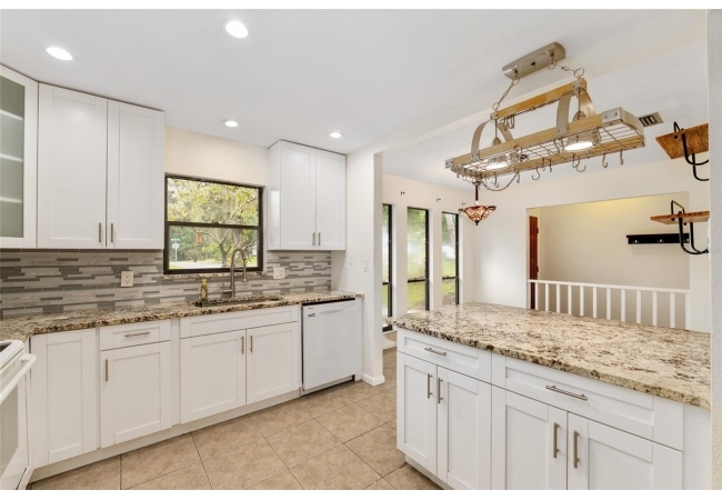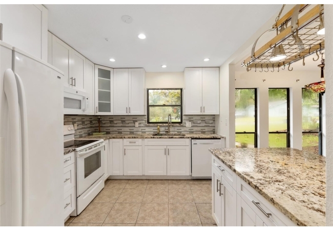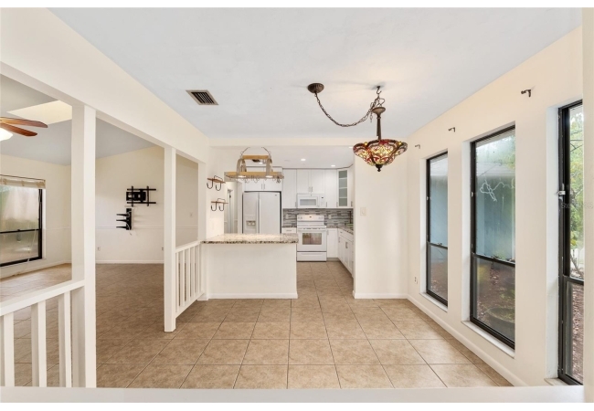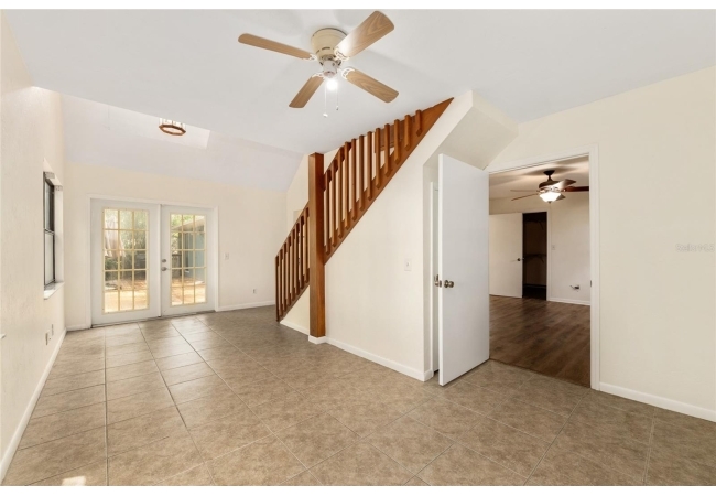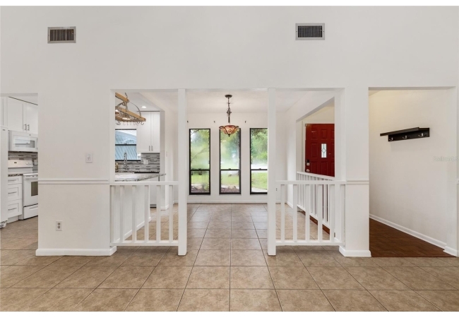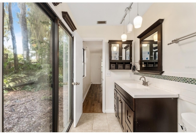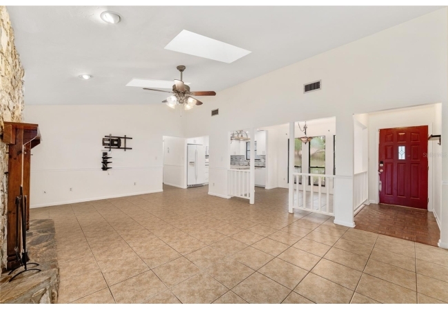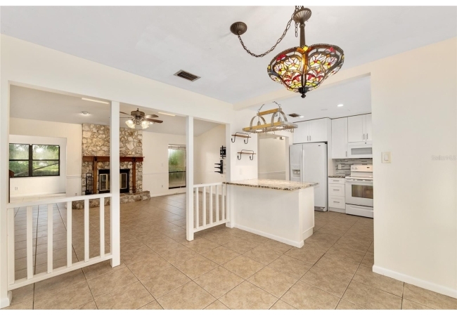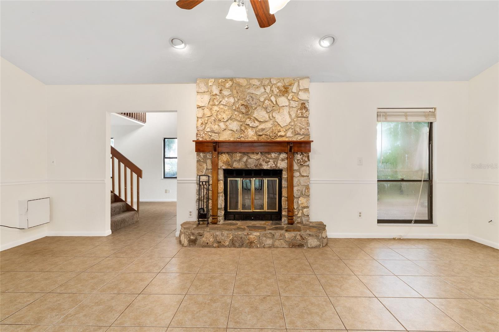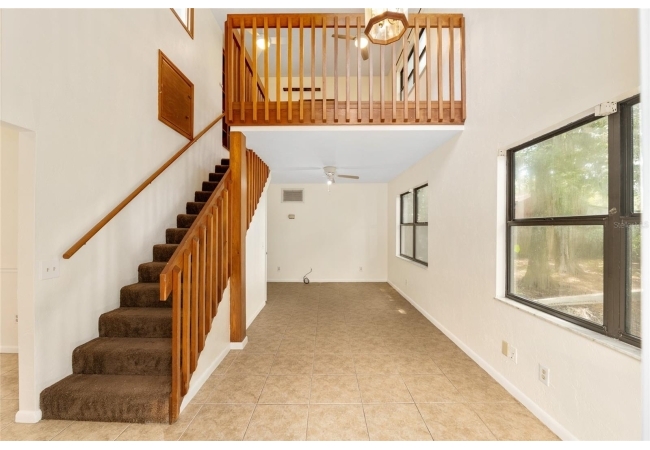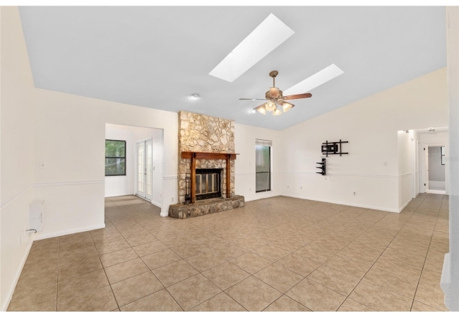 Inside, you’ll find a functional layout with tile and laminate flooring throughout, a large living room with a cozy fireplace, and a dedicated office or flex space upstairs. The updated kitchen with granite countertops and dining areas flow seamlessly to the rear deck and patio, perfect for entertaining or relaxing outdoors. The home features ample storage including attic space and walk-in closets, as well as ceiling fans and central gas HVAC for year-round comfort. The home backs up to a green space and a large undeveloped parcel providing backyard privacy. Conveniently located just minutes from the University of Florida, Butler Plaza, shopping, dining, and top-rated schools, this home combines space, comfort, and location.