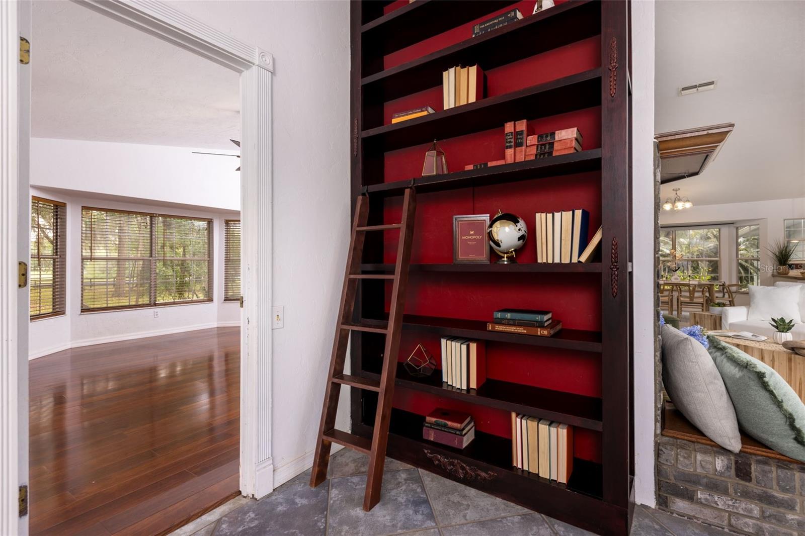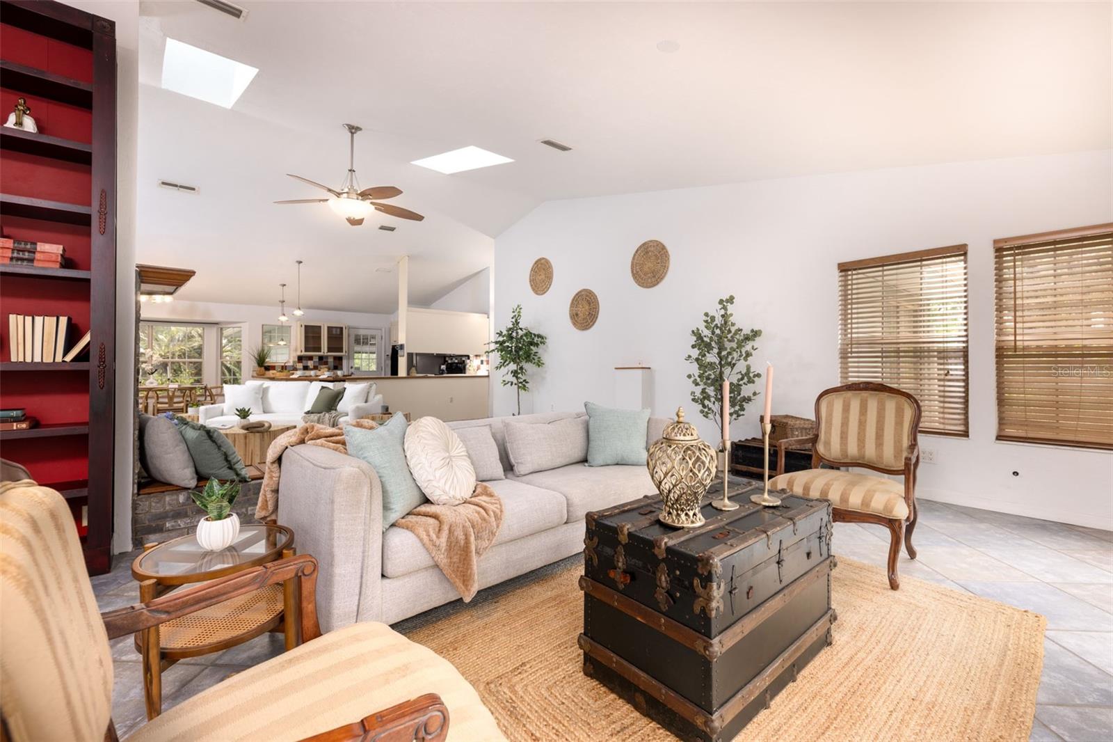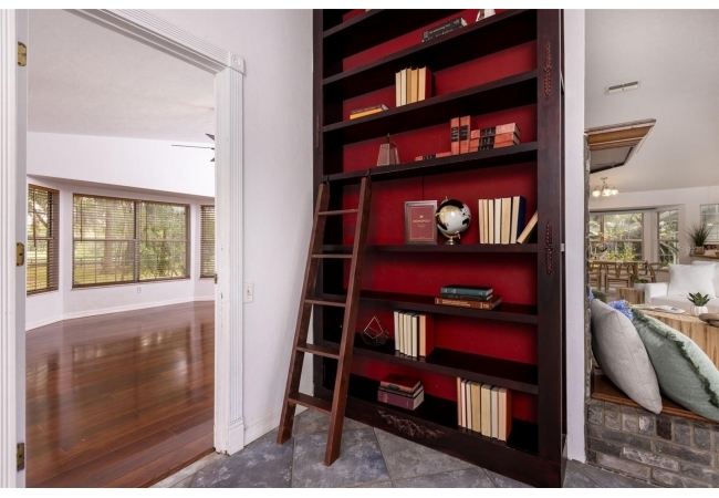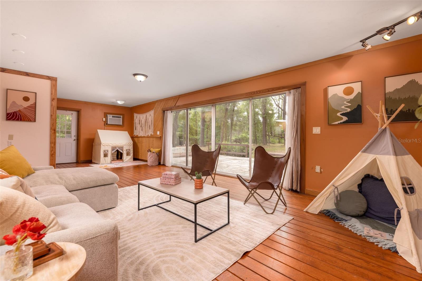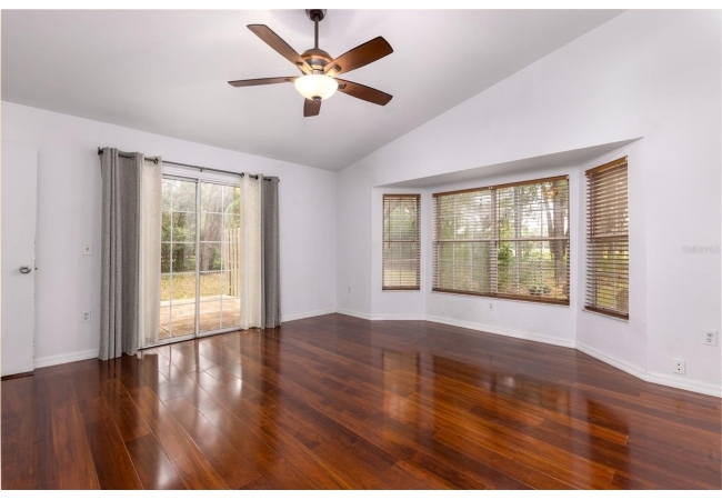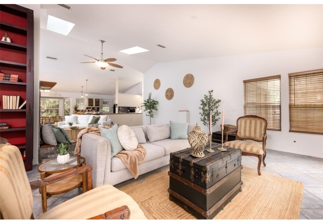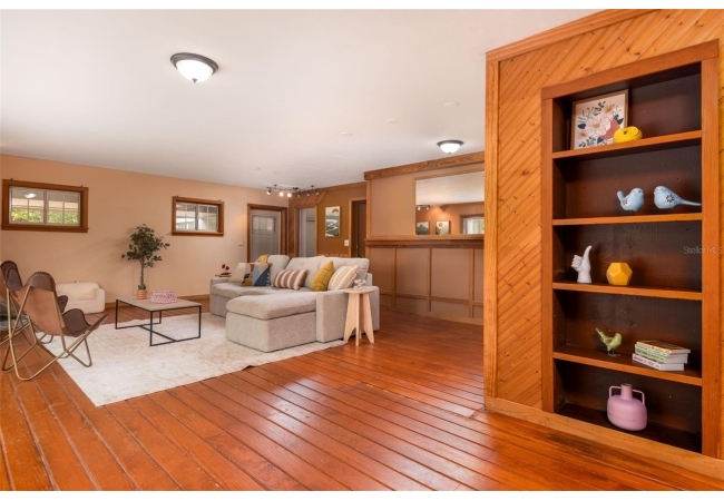 Tucked away on over 2 private acres this unique property offers the perfect blend of space, character and versatility. The beautifully maintained grounds feature mature trees, a tranquil water feature, and an expansive cleared area ideal for outdoor hobbies, animals or recreation-all secured by a private gated entrance. Inside the home showcases a spacious and inviting layout with soaring ceilings, an impressive stone fireplace as the focal point and abundant light streaming through multiple sets of French and sliding glass doors that frame picturesque views of the surrounding beauty. The split bedroom plan features a generous primary suite with dual closets and a spa-inspired bath with a soaking tub. A stand-out feature is the oversized bonus room with a full bath that could easily be converted into a guest suite. With no carpet throughout and a large attached garage providing ample storage, this home combines comfort flexibility and peaceful living waiting for its next owner to enjoy!