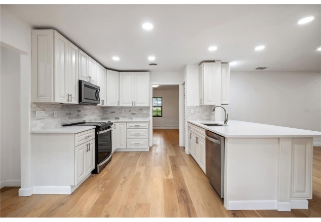 Welcome to this beautiful Pine Hill Estates home, boasting 4 bedrooms, a large flex room, 3 bathrooms, formal living and dining room, large family room contiguous with the spacious kitchen, a separate Laundry room, separate large utility room a covered back porch, open front porch, enjoy your morning coffee while admiring nature on the deck overseeing the back part of the sparingly wooded 1 acre lot. The updated home shows pride of ownership throughout - new water resistant wood flooring , new kitchen cabinets, quartz countertop and appliances, all remodeled bathrooms, tiled tub/shower walls, tile flooring and new quartz top vanity in the bathrooms. The flex room will adapt to almost any need- a large In-law suite with a walking closet, a play room with storage for toys, a home office with a library, a study room, or any other use you need. Zoned for top-rated Hidden Oak Elementary, Ft. Clarke Middle School, and Buchholz High School. Metal roof December 2023, A/C unit June 2016, W/H 2016. Home is also available for lease