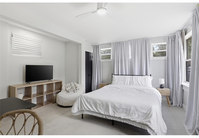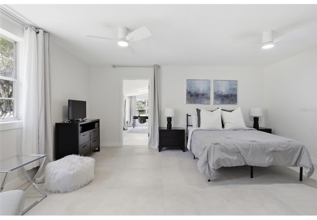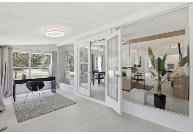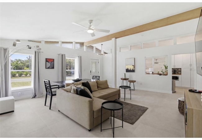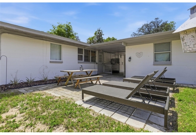 Looking for a fully remodeled mid-century modern home featuring a fully equipped 1-bedroom, 1-bath studio, all within walking distance to the University of Florida? This is the one. This property is as turn-key as they come, with extensive updates including a newer roof (2022), updated electrical panel (2025), full re-plumb (2025), fresh interior and exterior paint, new tile flooring throughout, fully renovated kitchens and bathrooms, updated lighting, and more. As you arrive, you’ll be impressed by the refreshed landscaping, spacious quarter-acre lot, and inviting front porch - perfect for enjoying your morning coffee. Step inside the main residence, offering 1,911 square feet, where you’ll find 3 bedrooms and 3 full bathrooms. The home immediately welcomes you with vaulted ceilings in the expansive living room, an abundance of natural light, and beautiful tile flooring throughout. Adjacent to the living area is a stylish galley kitchen featuring ample shaker cabinetry, butcher block countertops, and a full stainless steel appliance package. Just beyond the kitchen are two generously sized guest bedrooms, each complemented with their own beautifully renovated bathrooms. The primary suite is a true retreat, offering a spacious layout and a luxurious en-suite bathroom complete with a massive walk-in shower, dual sink vanity, and two closets. Connected to the primary suite is a gorgeous sun room - ideal for a home office, reading nook, or sitting area. Adding even more value, the property includes a fully renovated detached studio apartment, complete with its own bathroom and kitchenette. This space is perfect for guest quarters, an in-law suite, or an income-producing opportunity. Separating the main home and the studio is a covered carport with convenient access to a laundry area and additional storage, along with a spacious backyard ideal for relaxing or entertaining. Whether you’re looking for a primary residence or an income-producing opportunity, this property delivers - call us today to schedule your private showing.