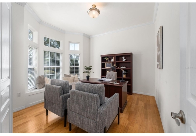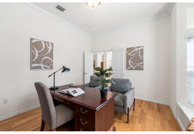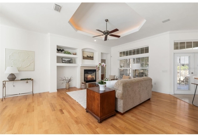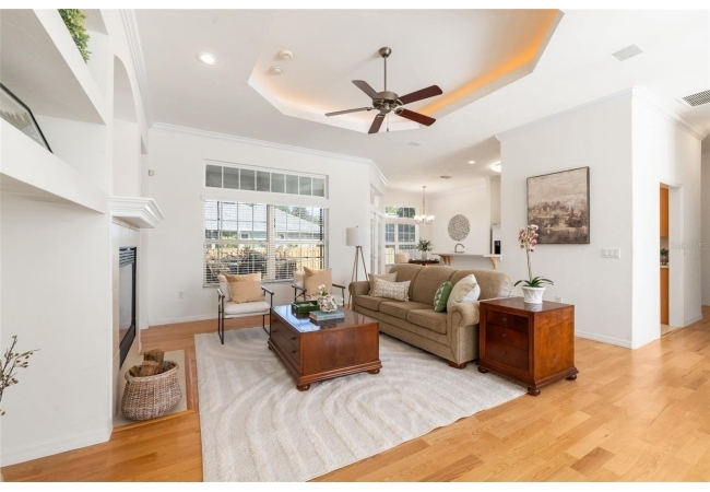 Beautifully maintained Cobblefield home in SW Gainesville! This residence offers 3 bedrooms, 2 bathrooms, and a dedicated office with double door entry and a bay window. Step inside this home into a bright and open floor plan with high ceilings, crown molding, tray ceilings and wood flooring through the main living space and office. You are greeted by the spacious living room with a cozy gas fireplace and built-in area. Adjacent is the light filled formal dining area.