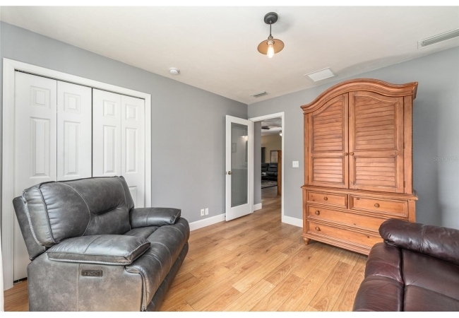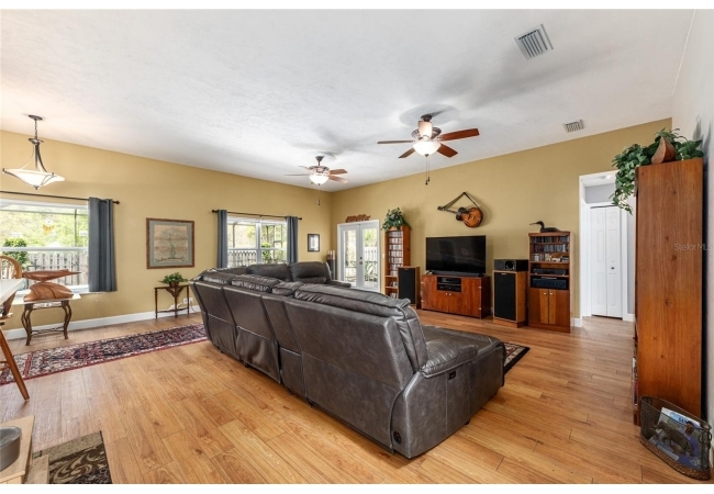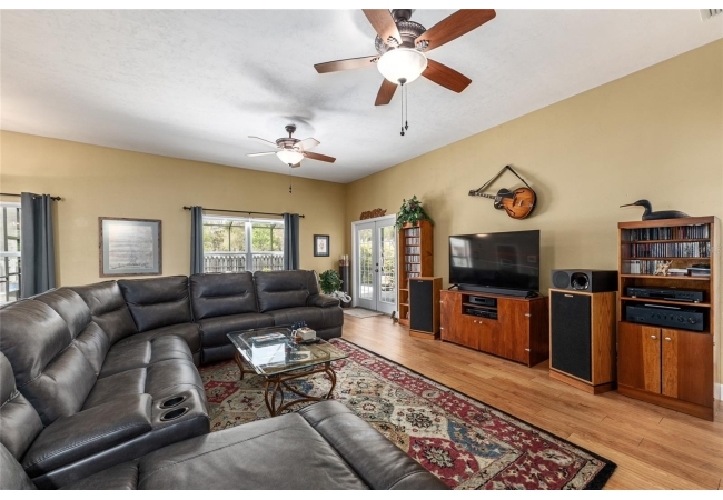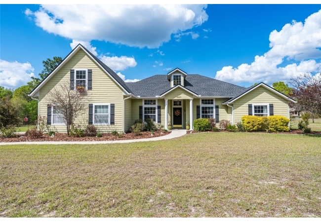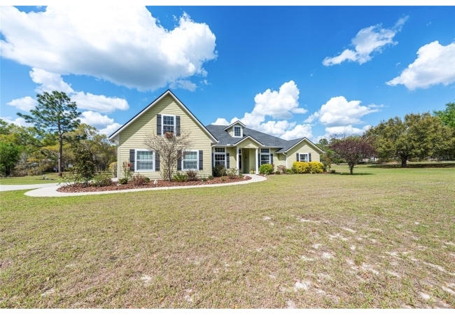 Welcome to the Meadows of Kanapaha, a peaceful community in southwest Gainesville. Nestled on a beautifully landscaped 1.38-acre corner lot, this meticulously maintained 4-bedroom, 2-bath pool home is move-in ready and designed for both comfort and functionality. Step inside to a spacious open-concept layout featuring a desirable split floor plan and an upstairs bonus space. The kitchen boasts solid cherry cabinetry, new appliances, and a convenient breakfast bar, while the dining room—complete with tray ceilings—flows seamlessly from the kitchen. French doors in the main living area open to views of the pool, creating the perfect space to relax or entertain. Just off the living area, you’ll find three guest bedrooms and a full bath. One bedroom, currently used as a study, features custom built-ins and overlooks the front yard. On the opposite side of the home, the owner’s suite offers a private retreat with direct access to the enclosed pool deck. The en-suite bath includes dual vanities, a soaking tub, a frameless glass shower, and a spacious walk-in closet. Completed in 2023, the backyard oasis features a heated pool with a specialized jet system—ideal for swimming laps—along with a generous lounge area. Beyond the pool enclosure, a fenced space provides room for pets and includes a large shed for storage. Additional highlights include an indoor laundry room, ample storage throughout including an upstairs flex room, an attached two-car garage, a new roof (2023), and a new A/C system (2024). This home also enjoys added privacy with an HOA buffer lot to the west. Conveniently located just minutes from I-75, the University of Florida, Butler Plaza, Celebration Pointe, and Shands Hospital, this home offers both tranquility and accessibility.