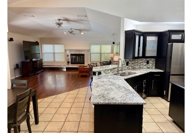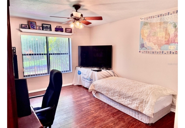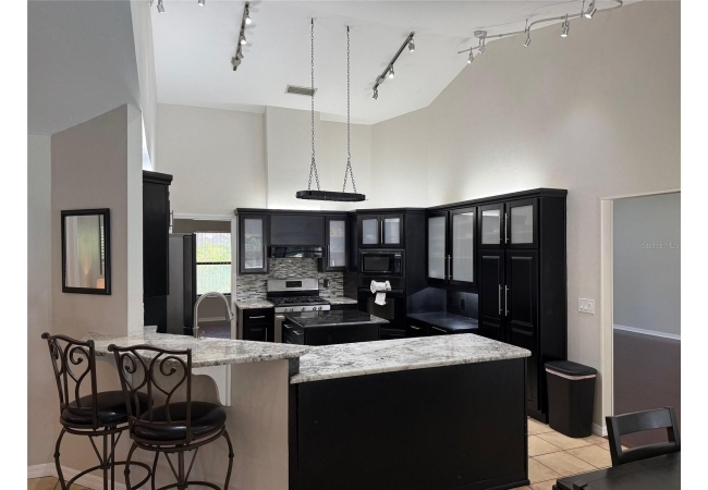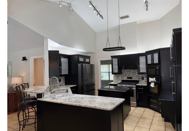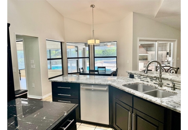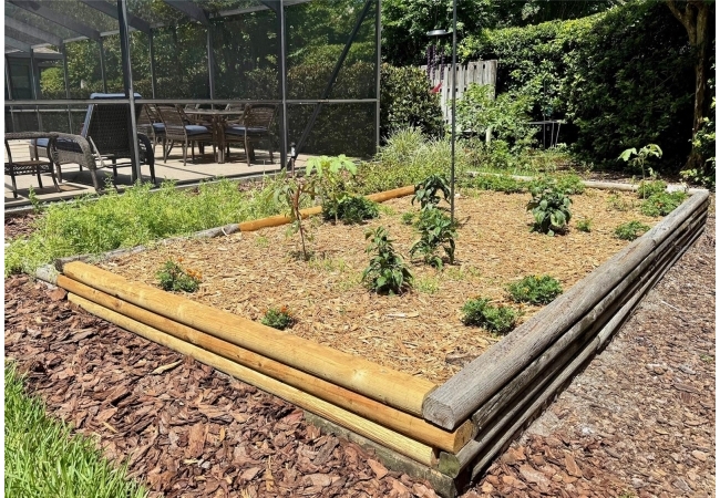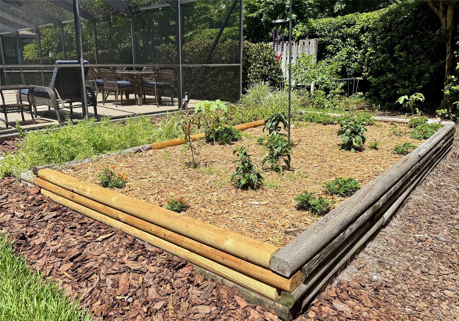 Outside, the professionally manicured front and backyards delightfully balance form and function. In the backyard, a neatly maintained vegetable garden along with fruit bushes ( blueberry, blackberry, grapes) and fruit trees (mulberry, loquat, fig) supply fresh fruits and vegetables throughout the year. Mature trees, landscaping, lighting, and irrigation provide a tranquil ambiance and privacy. The covered and screened lanai overlooks the pool and garden—a perfect setting for parties, summer barbecues, or sunset relaxation.