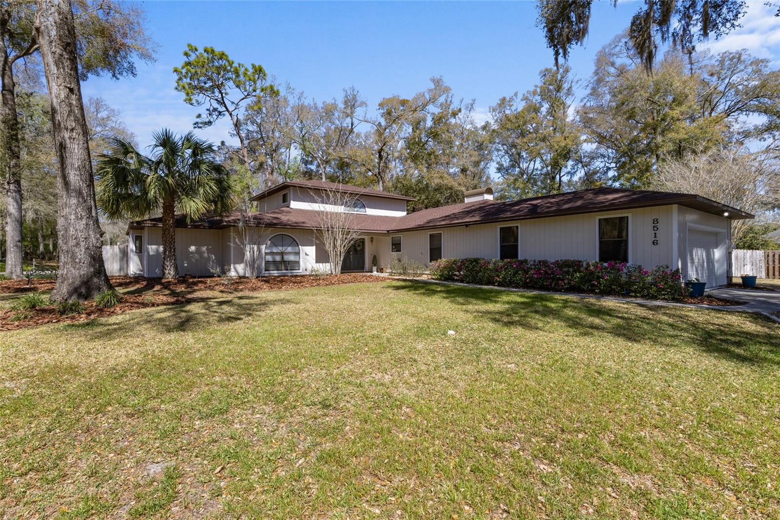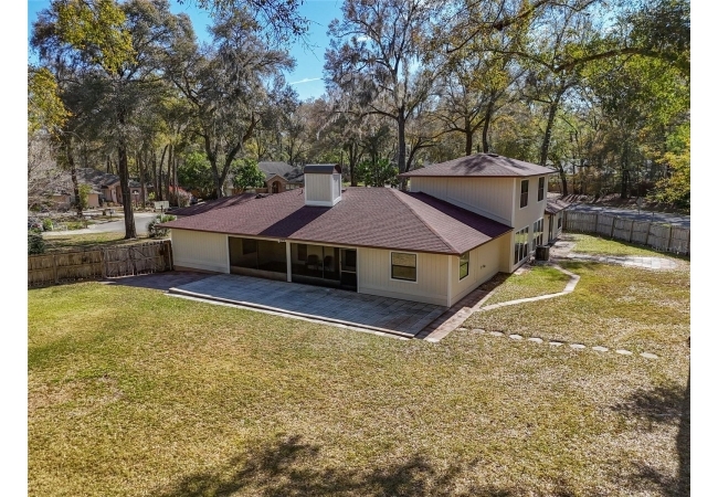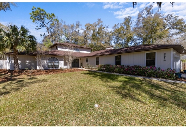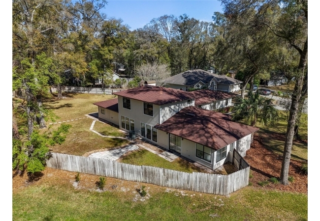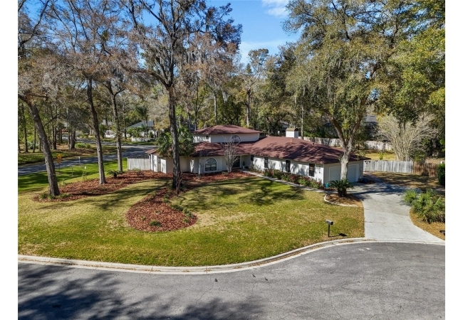 Tastefully upgraded and well cared for 5-Bedroom home on a prime corner lot! This stunning 5-bedroom, 3.5-bathroom home is turn key and move-in ready! Nestled on a .67-acre corner lot in a peaceful cul-de-sac, this home offers the perfect blend of modern luxury and functional design. With over 3,200 sqft of beautifully updated living space, there’s plenty of room for everyone. Step inside to find a luxury kitchen outfitted with quartz countertops, sleek cabinetry, and high-end finishes—a dream for any home chef. The renovated bathrooms add a spa-like touch, including the massive primary suite featuring three closets and a beautifully updated en-suite bath. The spacious layout includes an attached in-law suite, perfect for guests or multi-generational living. Recent systems upgrades include upstairs HVAC (2023), downstairs HVAC (2022), updated commercial gas hot water heater (2021) and roof (2020) for worry-free living. Outside, enjoy Florida living at its finest with a huge front yard, a fully fenced backyard, a large screened-in porch, and a custom paver patio —ideal for entertaining or relaxing in privacy. Located just minutes from Haile Village, Haile Publix Market and shops, and Oaks Mall, this home offers both convenience and tranquility. Don’t miss this rare opportunity—schedule your showing today!