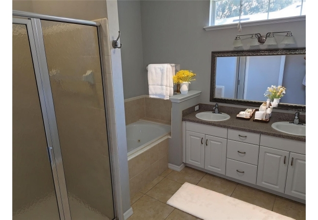 Both suite has a private entry; The spacious master suite, accented with en-suite bath with dual sinks, jetted tub, and large walk-in closet. The second-bedroom offering a large bathroom, and built -in closet.