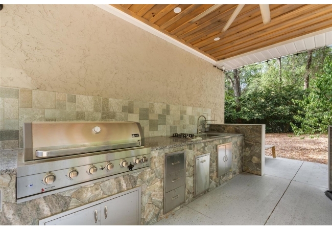 Set inside The Preserve at Haile Plantation, this fully renovated luxury estate delivers the kind of space and privacy that rarely surfaces in one of Gainesville's most sought-after neighborhoods. The main residence offers 3,368 square feet of sleek, modern living. Featuring high ceilings, 4 bedrooms, 4 full baths, and a floor plan that moves with ease from quiet mornings to full-house entertaining.?Step outside and the property shifts into something else entirely. A gas-heated pool and spa anchor a backyard built for real gatherings, including a summer kitchen, fire pit, and room to exhale. The detached 800 square foot, fully enclosed cabana takes it even further: boasting a full kitchen, gas range, bamboo flooring, and a walk-in sauna hand-crafted from the finest selection of knot-free clear cedar wood. It's a truly inviting space guests won’t want to leave.?The 750 square foot in-law suite has its own private entrance, bedroom, full bathroom, and kitchenette, giving guests or extended family a place that feels like theirs, not an afterthought.When you do venture out, the Haile Village Center sits just a short walk away, with local restaurants, boutiques, and a weekly farmers market, along with miles of walking trails and the fairways of Hawkstone Golf & Country Club at your doorstep. This home holds space for both connection and quiet, right where you want to be.