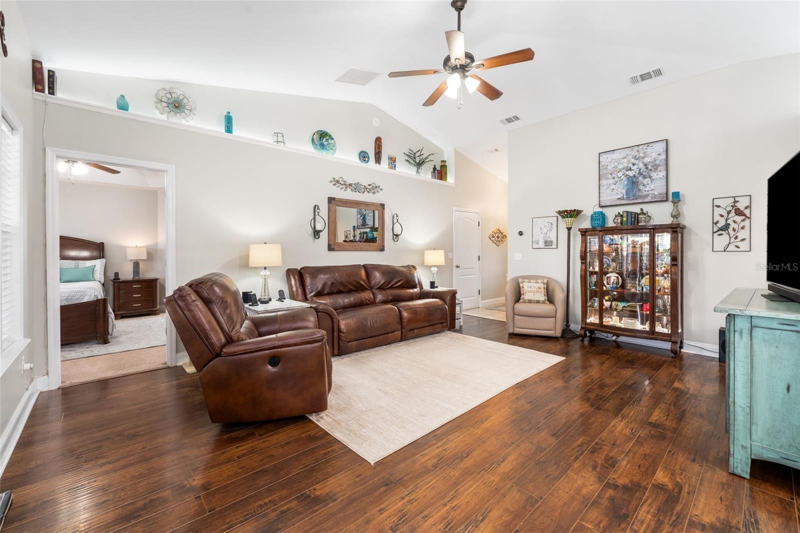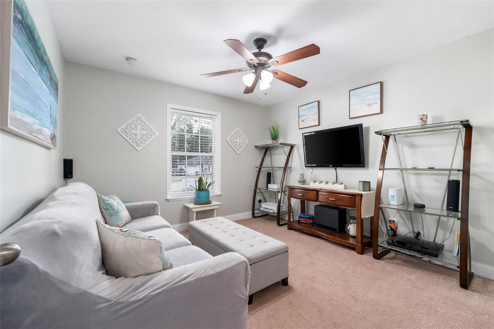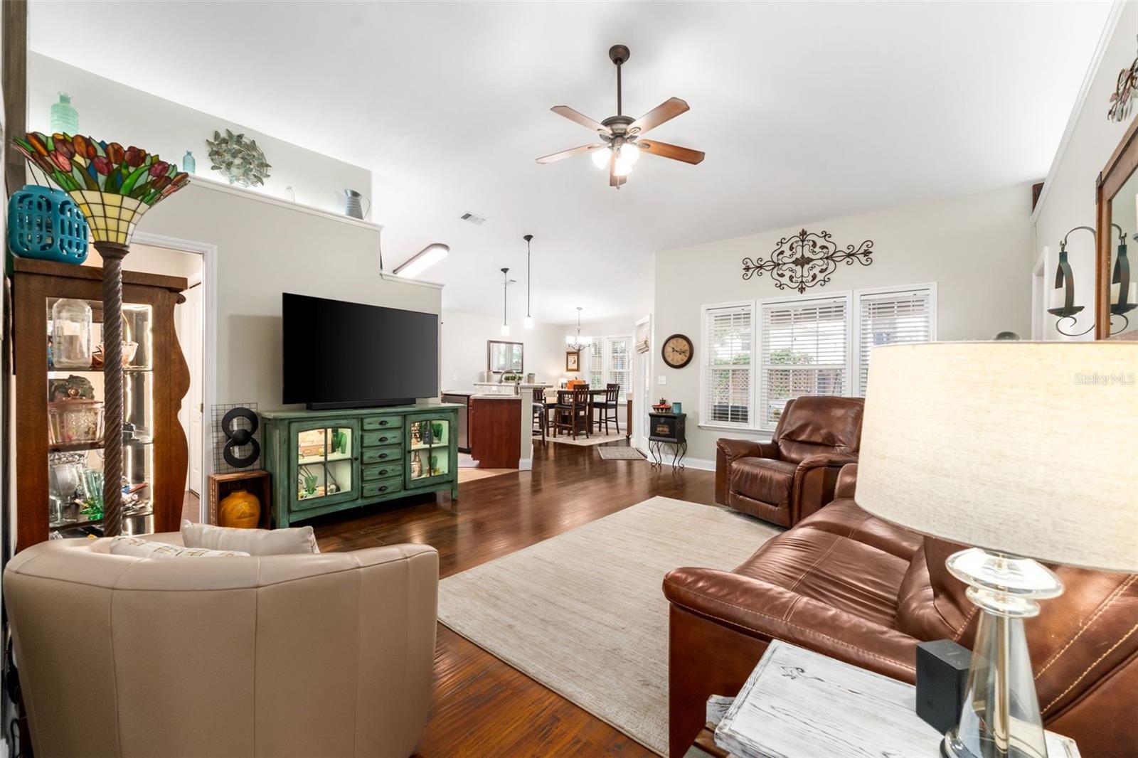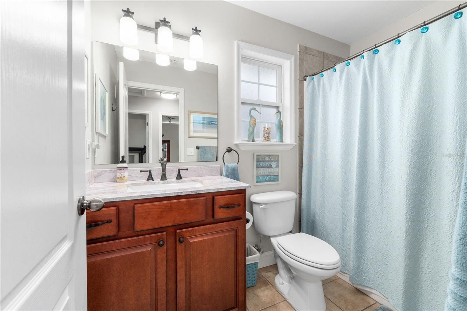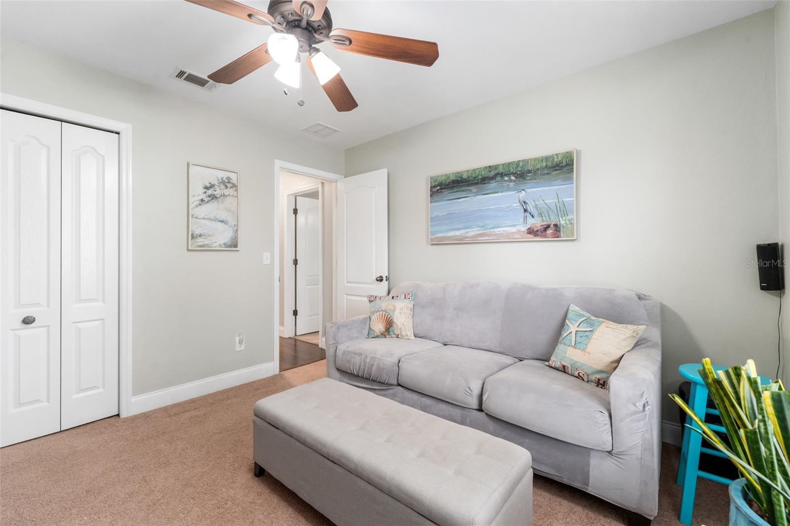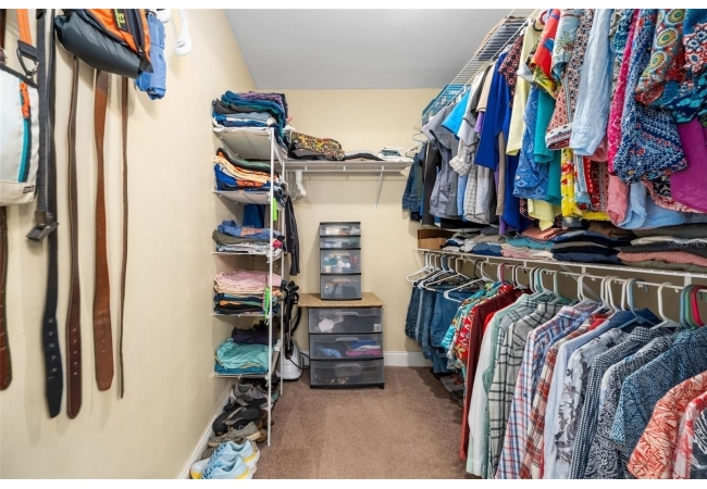The split floor plan offers privacy, with the primary suite tucked away on one side of the home. Faturing a tray ceiling, a wlarge alk-in closet, and a spa-like ensuite with a jacuzzi tub, seperated vanities. On the opposite side, of the house you’ll find two generously sized guest bedrooms and a shared hall bathroom, connected by a pocket door from the living room for added convenience.