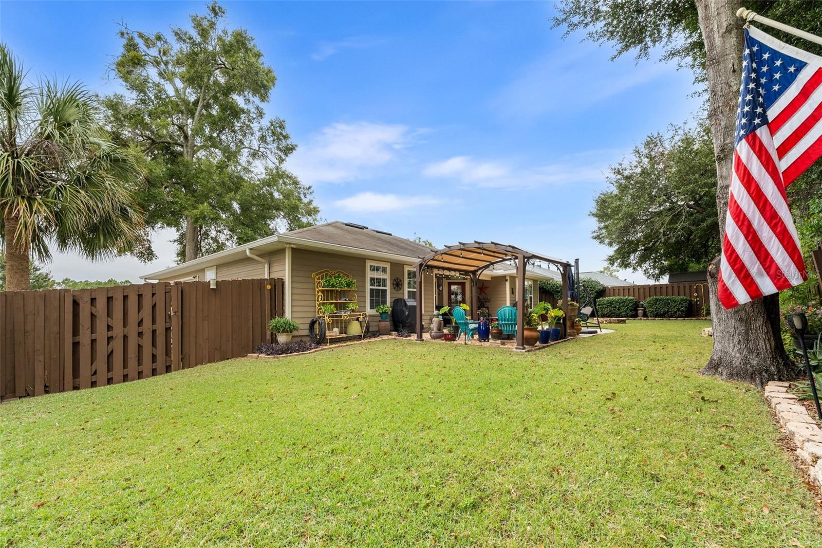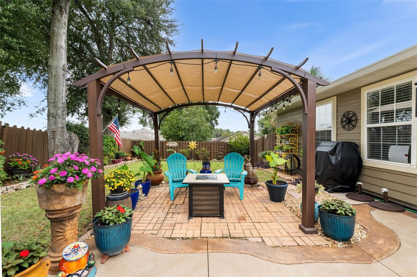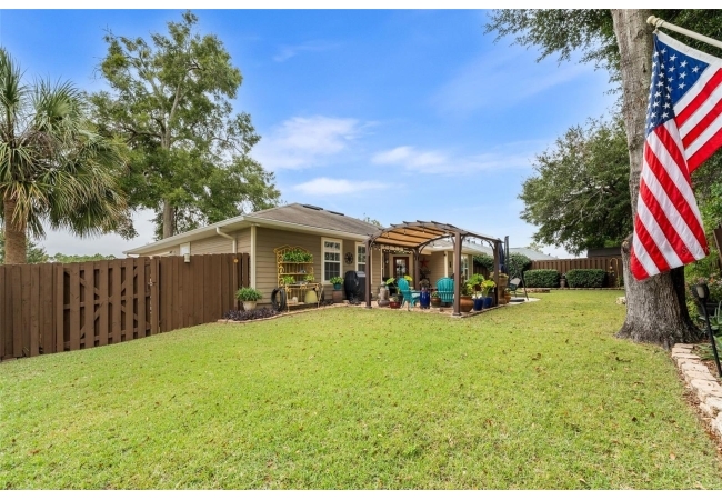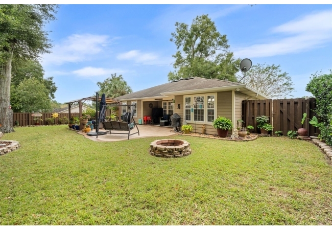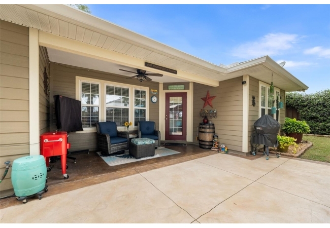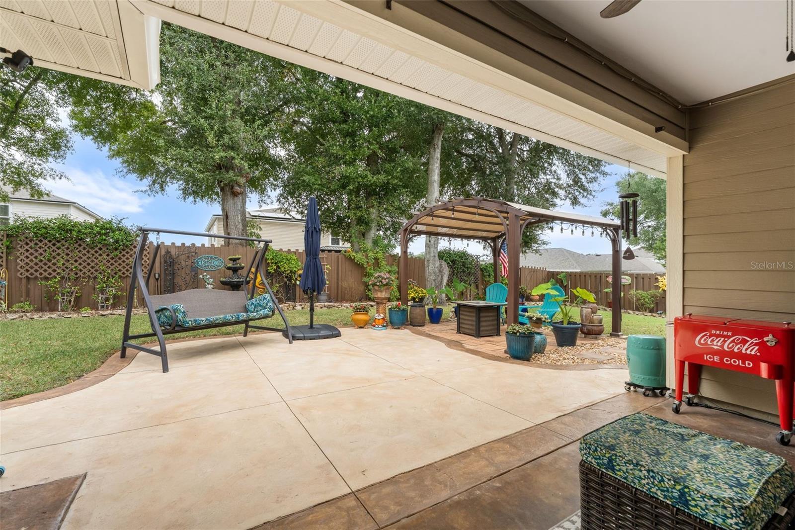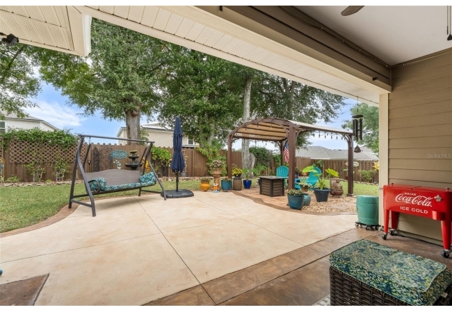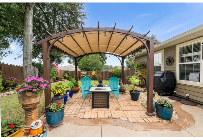 The upgrades arent just on the inside their outside too! Step outside and unwind in your tranquil fully fenced in backyard retreat. The outdoor space boasts extended stamped concrete, a pergola, gutters, lush zoysia grass, and beautiful landscaping—perfect for entertaining or relaxing.