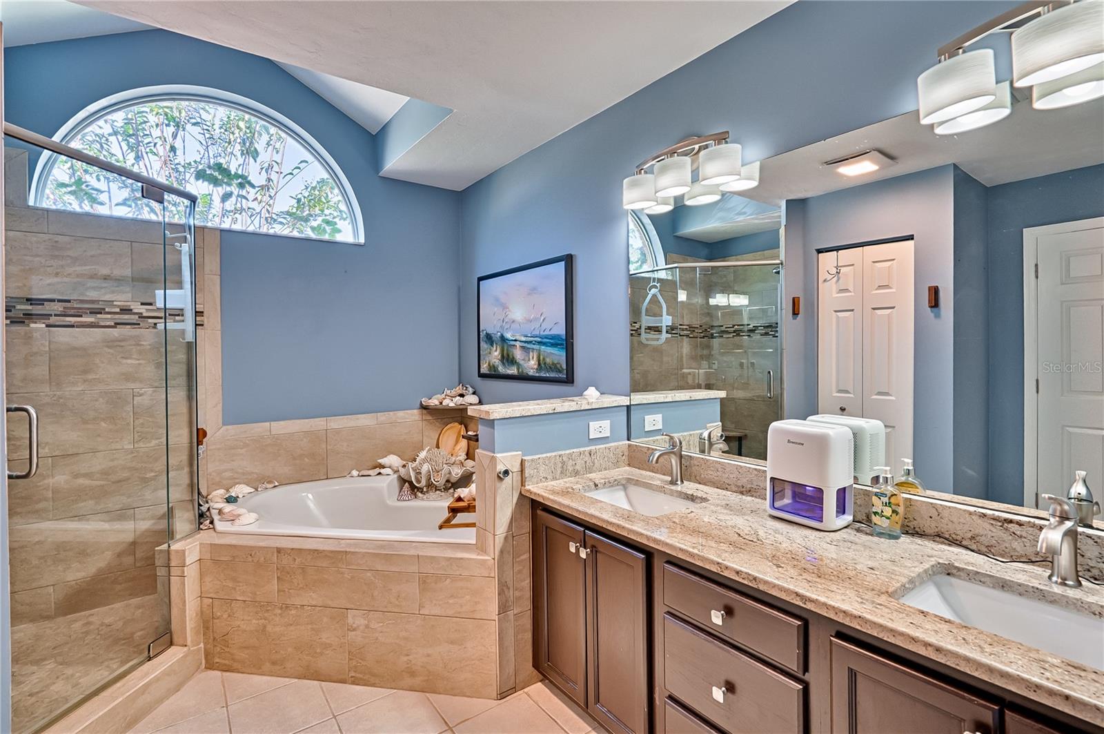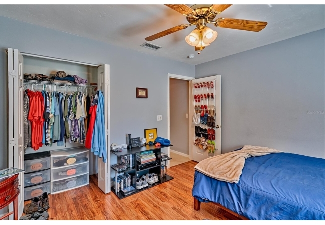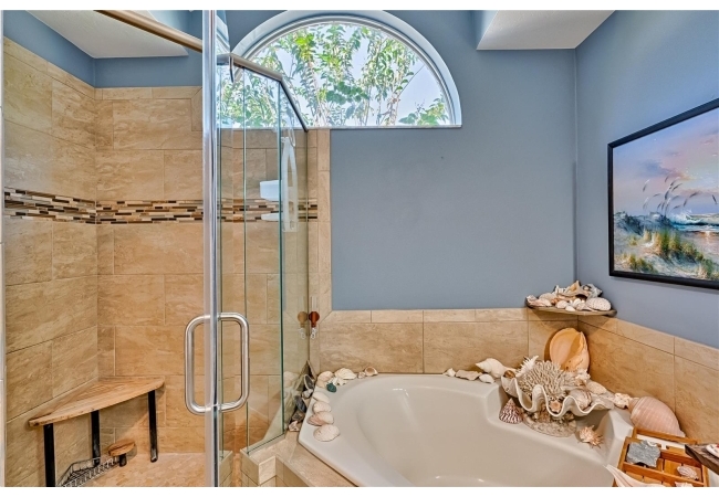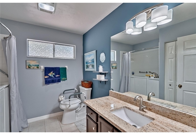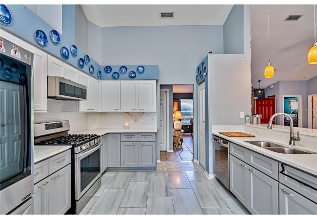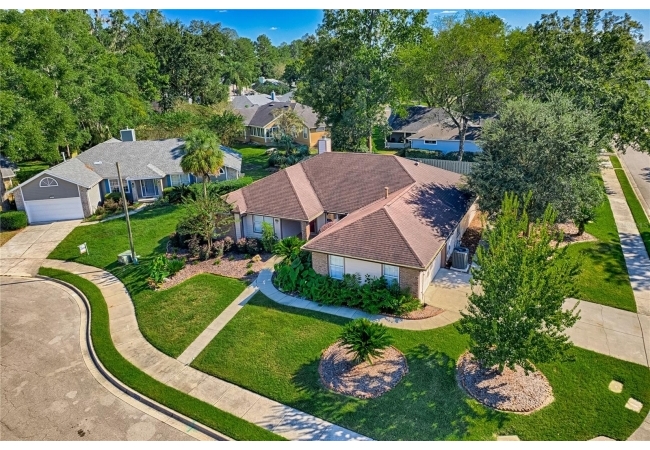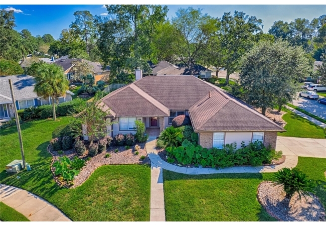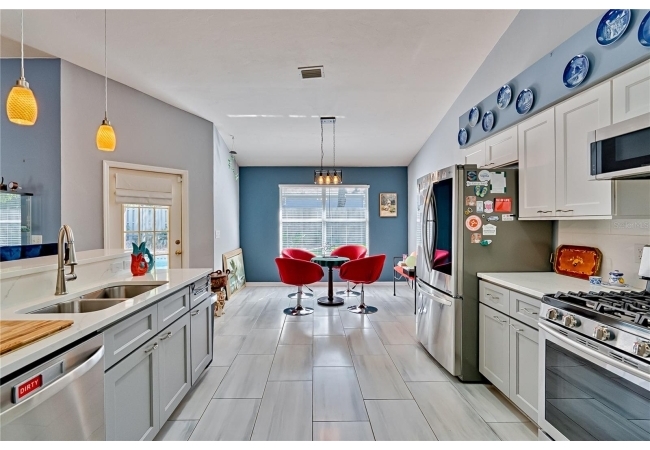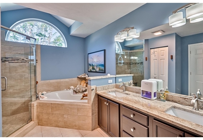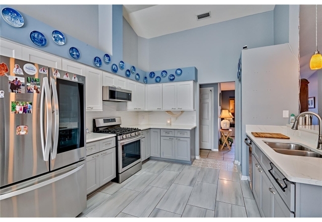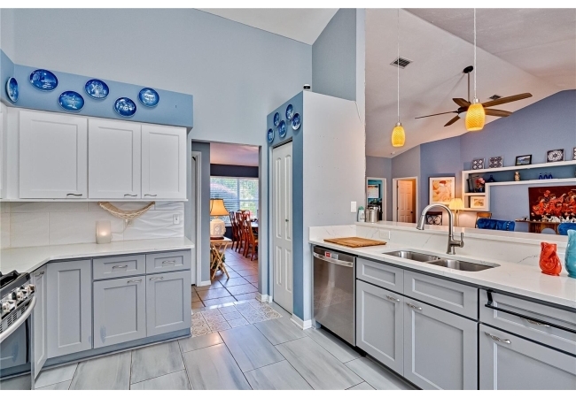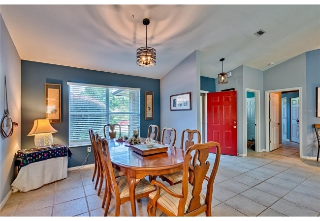 This 3-bedroom, 2-bathroom pool home with an office is located in the sought after Eagle Point Neighborhood! This corner-lot home with 1958 sq feet of space has an open layout. Enter the home to the living room with gas fireplace, views of your back yard and in-ground, screened pool. To the right is an eat in kitchen with breakfast bar and quartz countertops, contemporary cabinetry, tile flooring, pendant lighting and stylish backsplash. The dining area is to your right. The owner's suite has direct pool access, a large walk-in closet with a spa-like bathroom with double vanity, soaking tub and separate walk-in shower. The office continues from the suite and has a direct entrance off the foyer. On the other side of the home are 2 additional bedrooms that share a hall bathroom complete with a step in Kohler Jacuzzi tub. Walk through the laundry area to the two-car garage. The backyard is fully fenced, landscaped. A side garden is ready for planting. The roof is 8 years old. Recent upgrades include new HVAC with a transferable 10-year warranty, new water tank, new clothes dryer, updated lighting fixtures, an enlarged owner's suite bathroom with a barn door dividing bath and bedroom, Sherwin Williams interior paint, freshly painted fence with new fiberglass gates, pool converted to salt, lanai re-screened by Screen Doctors. Centrally located near Ft. Clarke Middle School and Hidden Oak Elementary. Eagle Point offers convenience and community— just minutes from shopping, parks, and restaurants. Easy access to I-75.