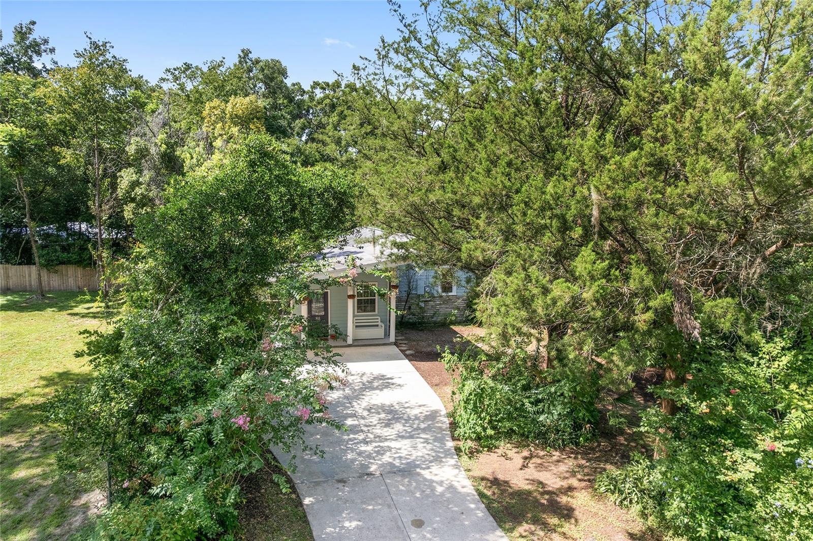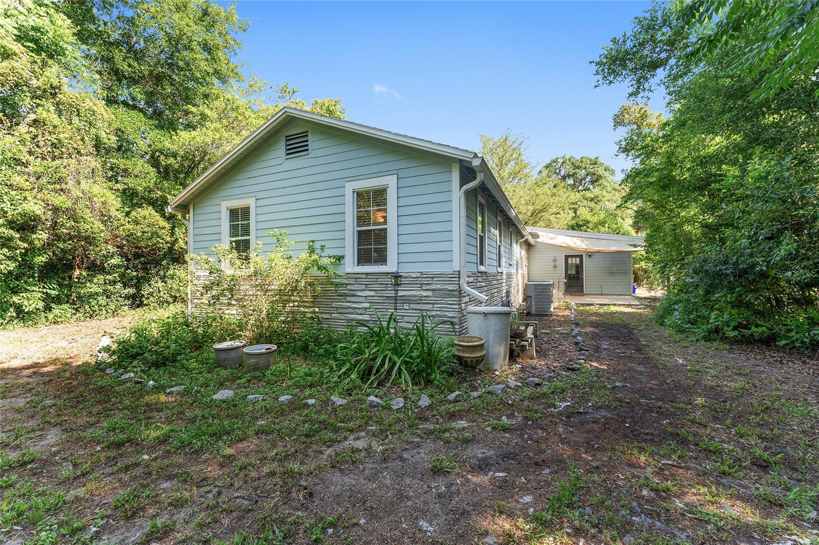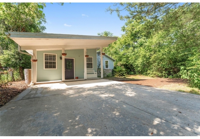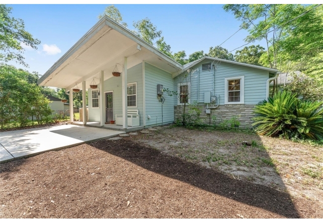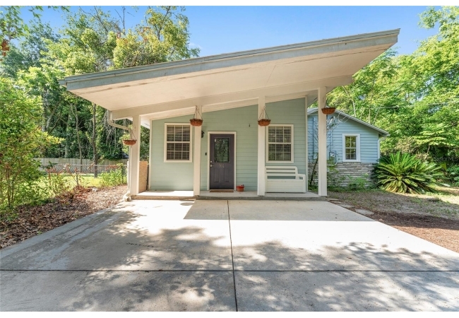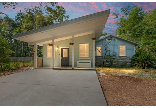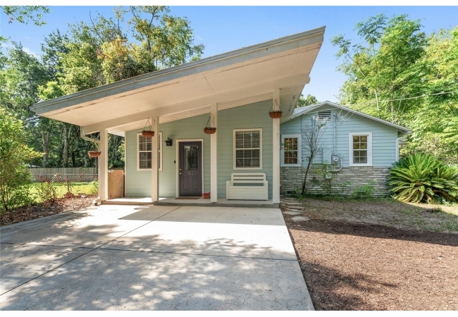 Here is a charming in-town cottage ready for you today! Nestled between 13th Street and the lively 6th Street corridor, this move-in-ready gem keeps you a bicycle ride from UF, downtown dining, and shopping, not to mention easy access to SFC and the airport. Inside, original hardwood floors gleam, paired with a chef-friendly gas range and oversized pantry. Double-pane insulated windows, updated PVC plumbing, 200-amp electric, a 2015 architectural-shingle roof, and a tankless water heater deliver peace of mind (and insurance savings). The flexible layout offers three true bedrooms, a dedicated office, a sun-filled Florida room, and a private-entry bonus room with its own A/C—perfect for a studio, guest suite, or rental. An indoor laundry room (washer & dryer stay) adds everyday convenience. Step outside to your personal half-acre park: a fully fenced 0.52-acre backyard with a cafe-style patio, evening firepit, and garden beds ready for planting. No HOA, a circular driveway with plenty of parking, and endless possibilities—schedule your tour and fall in love!