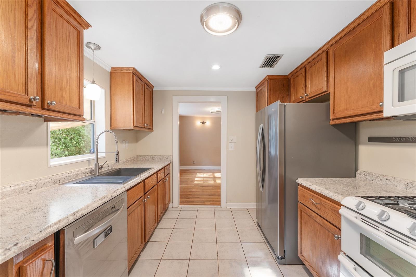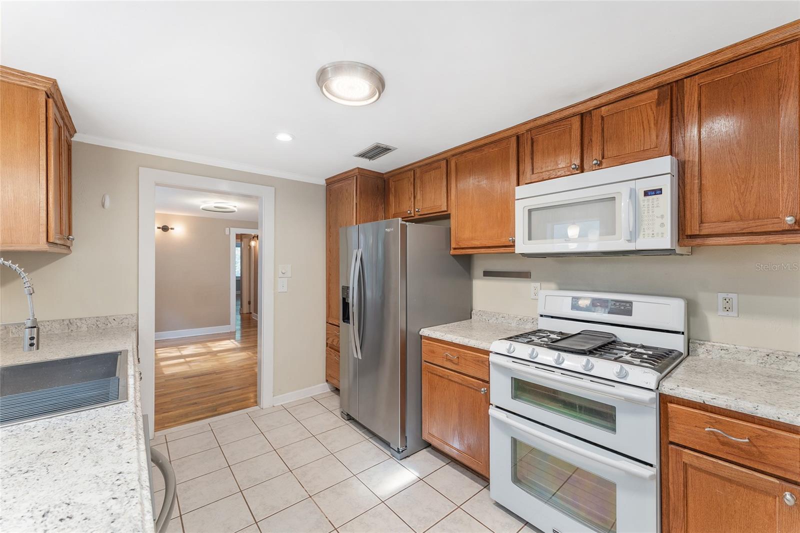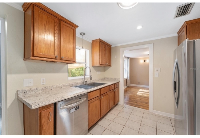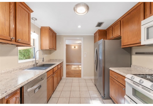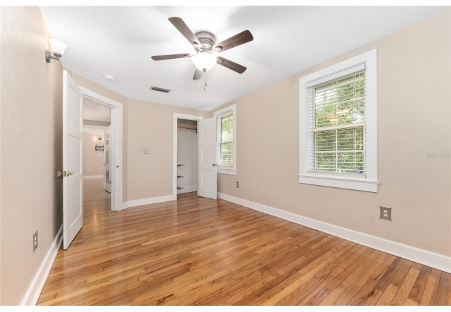 Here is a charming in-town cottage ready for you today! Nestled between 13th Street and the lively 6th Street corridor, this move-in-ready gem keeps you a bicycle ride from UF, downtown dining, and shopping, not to mention easy access to SFC and the airport. Inside, original hardwood floors gleam, paired with a chef-friendly gas range and oversized pantry. Double-pane insulated windows, updated PVC plumbing, 200-amp electric, a 2015 architectural-shingle roof, and a tankless water heater deliver peace of mind (and insurance savings). The flexible layout offers three true bedrooms, a dedicated office, a sun-filled Florida room, and a private-entry bonus room with its own A/C—perfect for a studio, guest suite, or rental. An indoor laundry room (washer & dryer stay) adds everyday convenience. Step outside to your personal half-acre park: a fully fenced 0.52-acre backyard with a cafe-style patio, evening firepit, and garden beds ready for planting. No HOA, a circular driveway with plenty of parking, and endless possibilities—schedule your tour and fall in love!