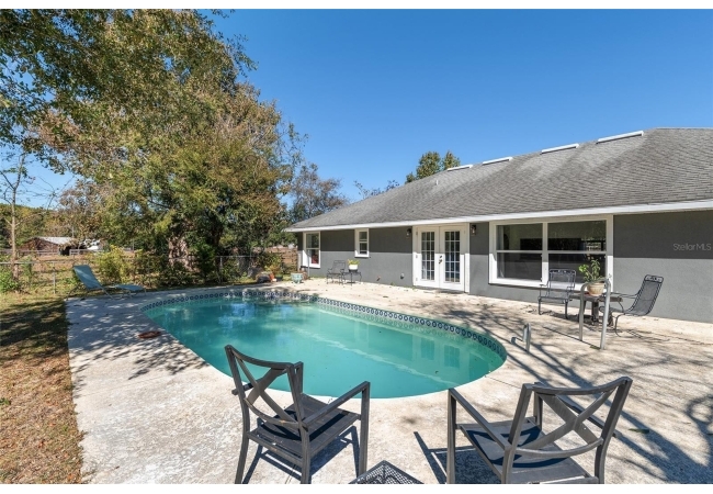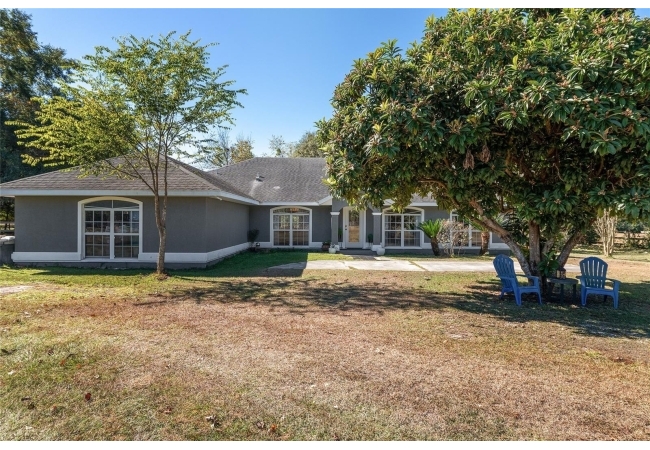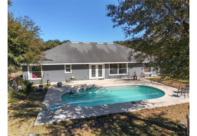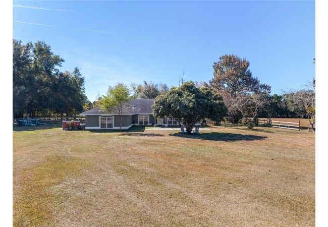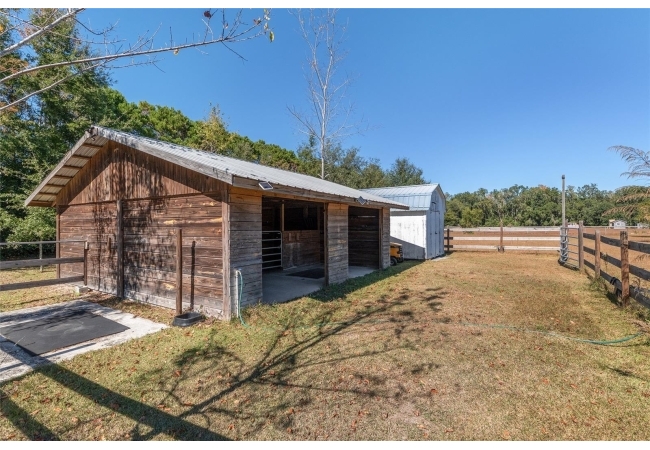 Experience the perfect blend of comfort and country living in this 3 bedroom, 2-bath pool home set on 5 picturesque acres. Ideal for horse lovers, the property features a shed-row barn with 2 stalls (14x12 stalls with mats) run-outs in each stall, fenced paddocks all with water, a storage shed for feed and tack, and a round pen for training or exercise. Beautiful Oak Trees offer shade in all paddocks.