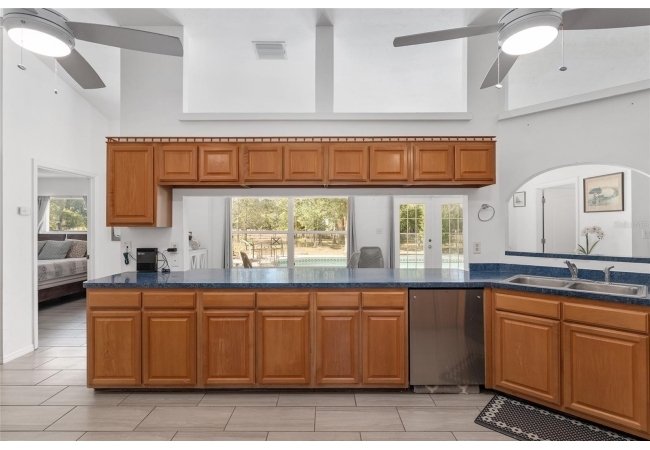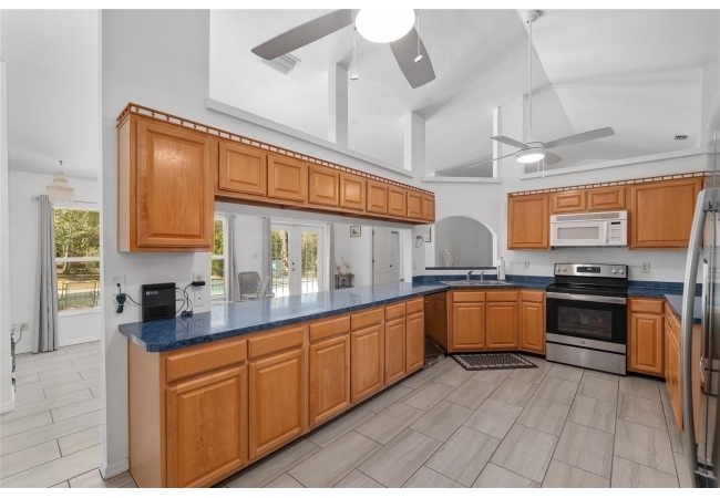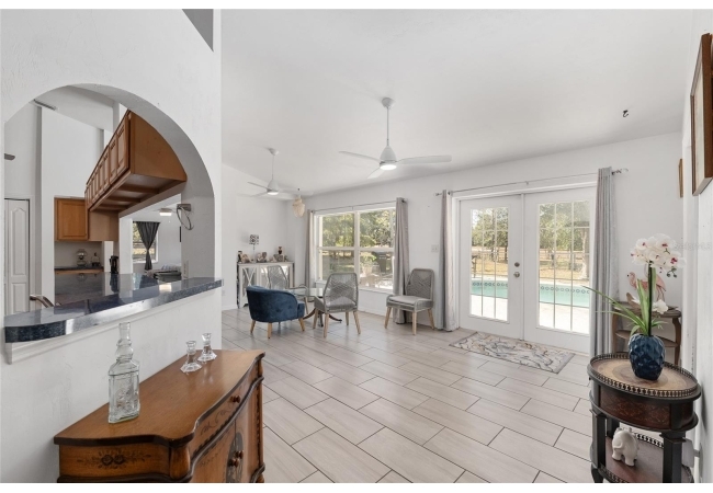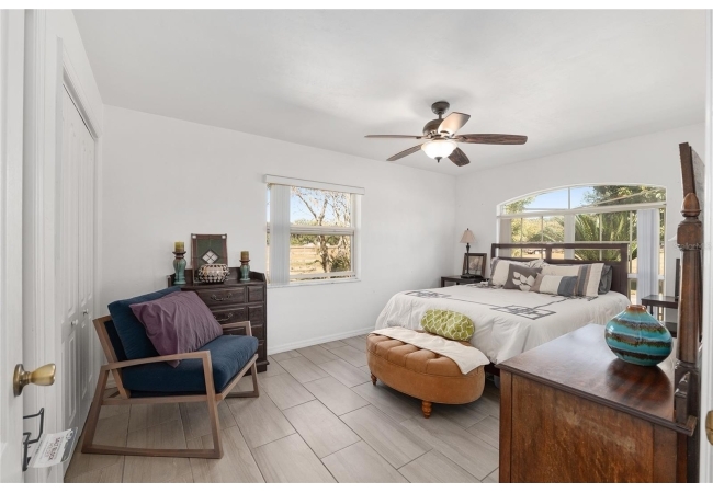 Inside you will find three nicely sized bedrooms, a large kitchen that opens into the family room, a separate dining room, a dedicated office, and a spacious utility room. The home also offers new appliances, new fans and lighting, and new flooring throughout. No carpet. Large windows in every room provide beautiful views of the surrounding property, filling the home with natural light.