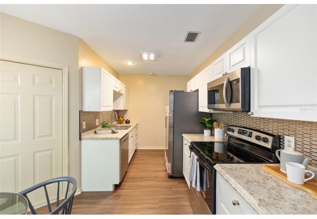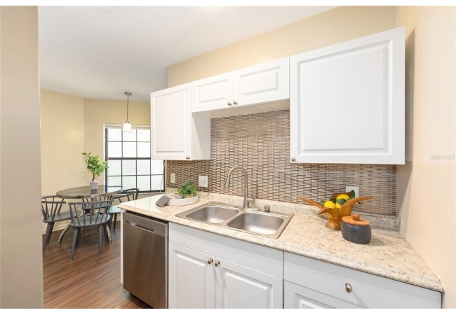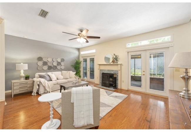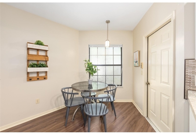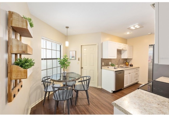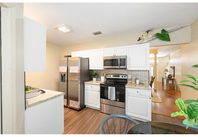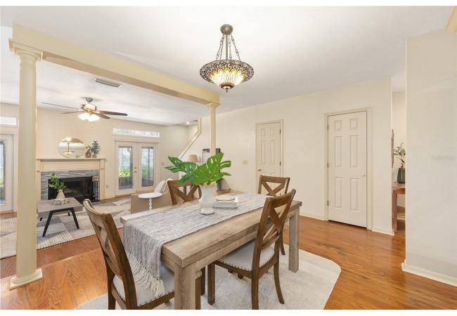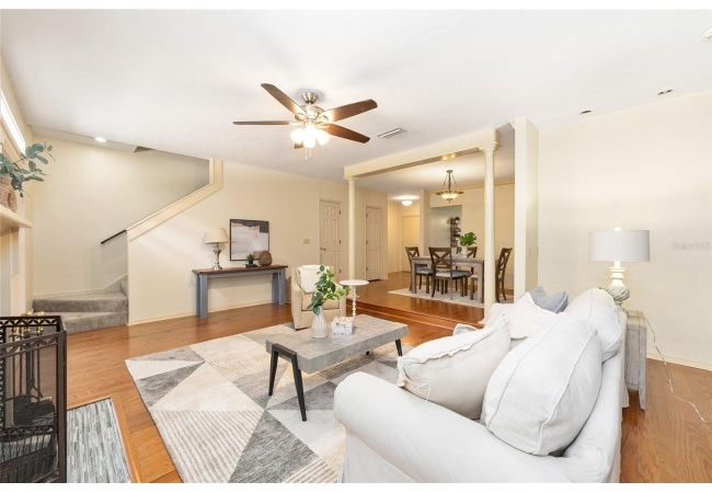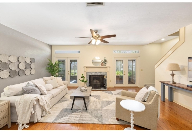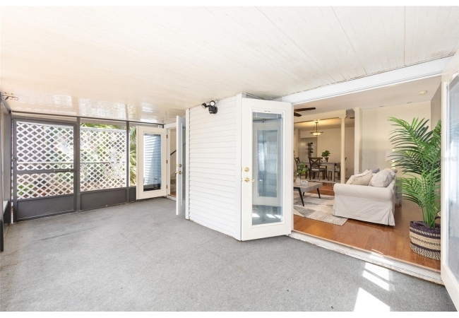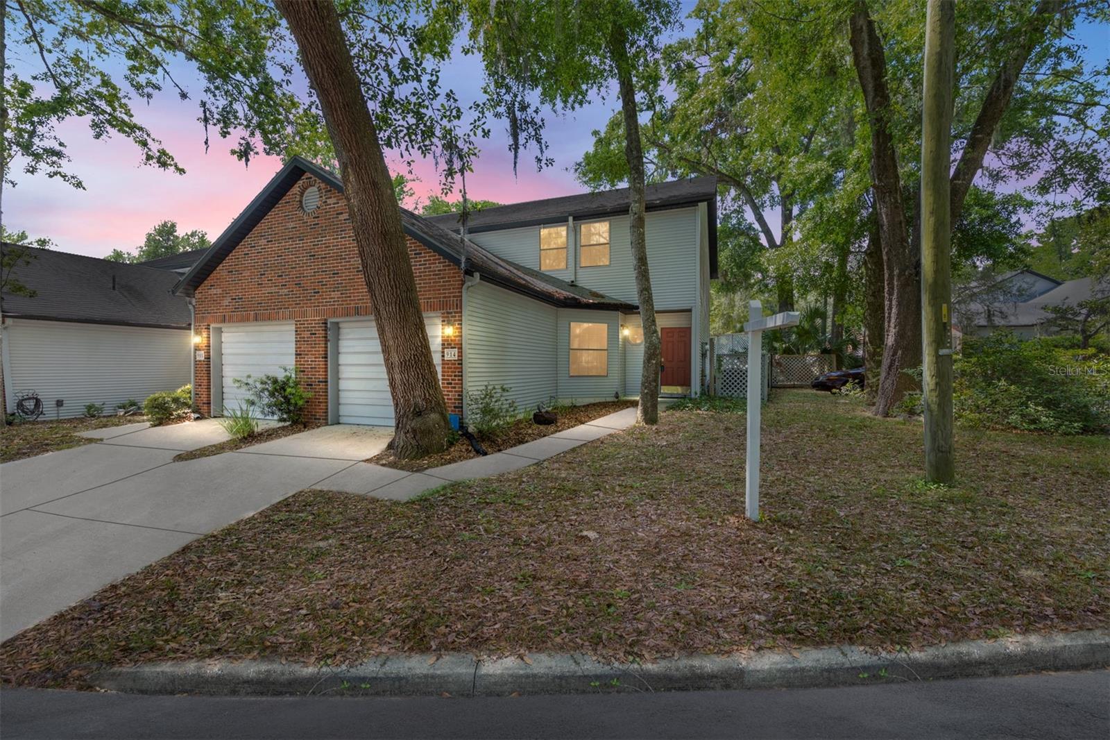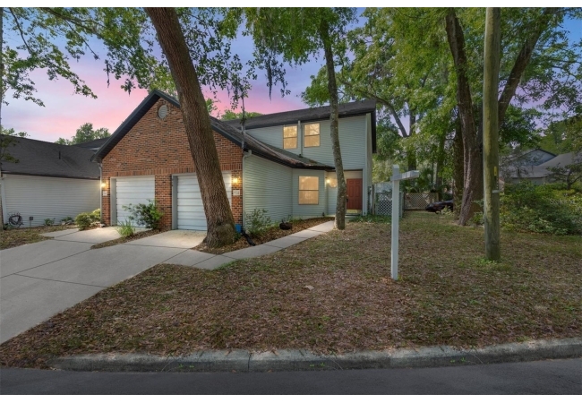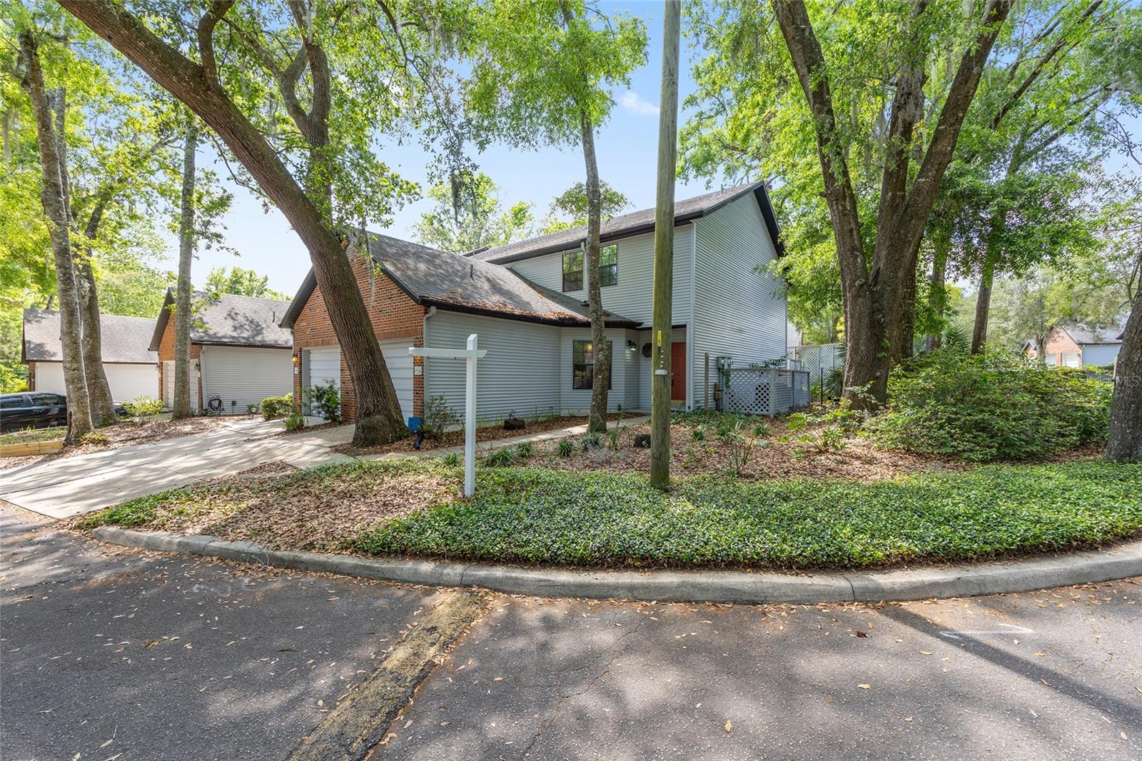 A lush corner lot frames this residence with classic curb appeal, a testament to timeless design and ?i?ntentional care. Tall ceilings and beautiful hardwood floors establish a sense of grandeur upon entry, seamlessly blending sophistication with warmth. The open floor plan fosters an effortless flow throughout, inviting exploration from one thoughtfully curated space to the next. An elegant dining room merges gracefully with the expansive living area where a striking fireplace serves as both centerpiece and visual anchor. Dual French doors flank the hearth, providing passage to a charming enclosed sunroom—a haven for year-round enjoyment that celebrates the interplay of indoor and outdoor living. The bijou kitchen, artfully proportioned for style and function, presents a refined composition of timeless white cabinetry, sleek stainless steel appliances, and a chic modern backsplash. All? the kitchen appliances are newly installed, ?offering a pristine, untouched experience? with these brand new fixtures. An adjoining breakfast nook extends an invitation to linger over morning coffee or evening conversations, its intimacy enhancing the kitchen’s allure. Ascending the staircase reveals a primary suite that epitomizes comfort and style, with wide plank flooring lending contemporary flair. A spacious walk-in closet and private ensuite offer both luxury and practicality. The secondary bedroom delivers a serene retreat, while a third bedroom provides versatility as a guest sanctuary or refined home office. Practicality meets refinement with an in-unit laundry room, private garage, and verdant greenspace that completes the offering. Situated in a coveted locale near Archer Road and Newberry Road, this townhome offers effortless access to premier shopping, dining, and everyday conveniences - where classic charm meets modern accessibility.